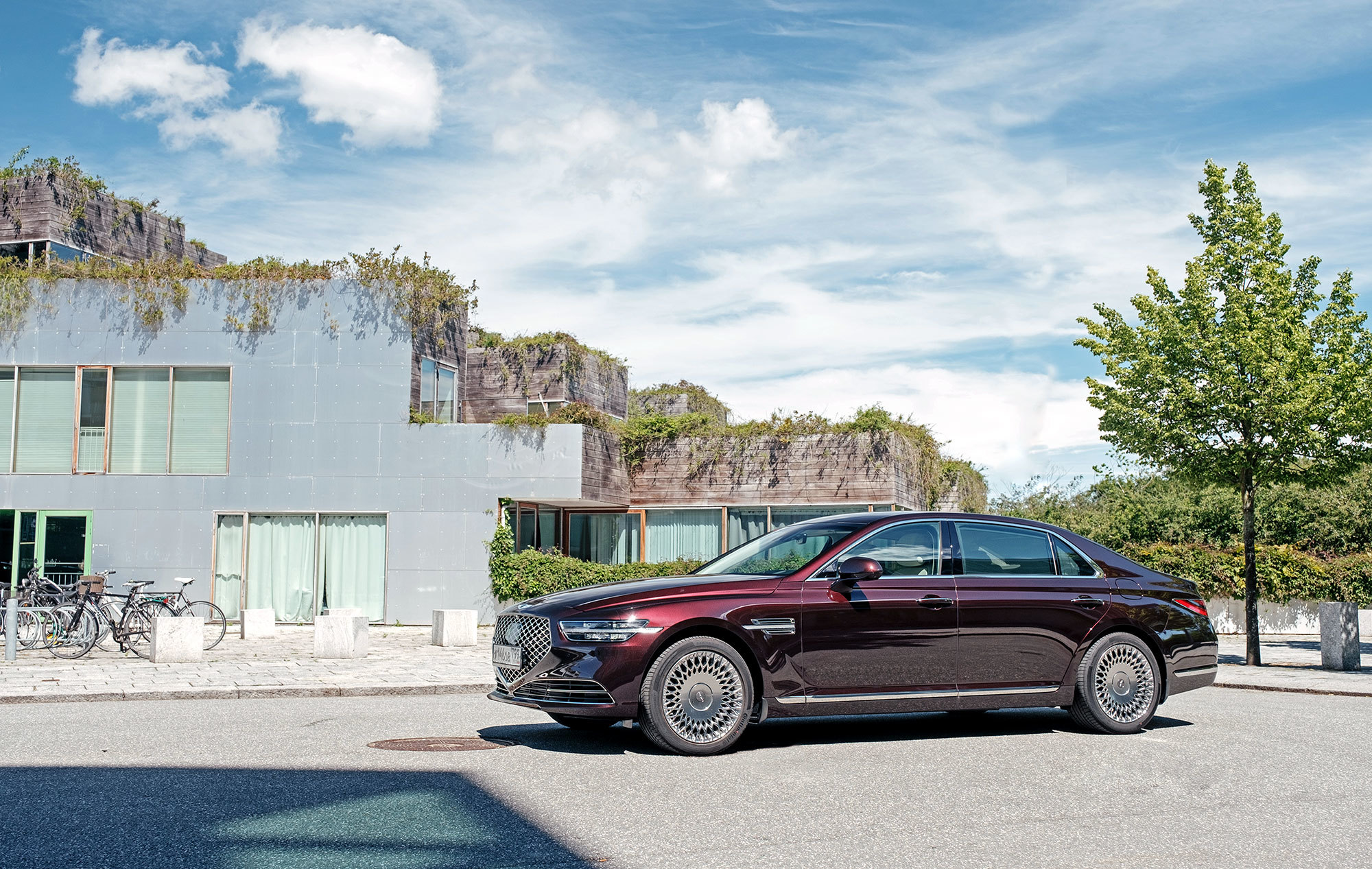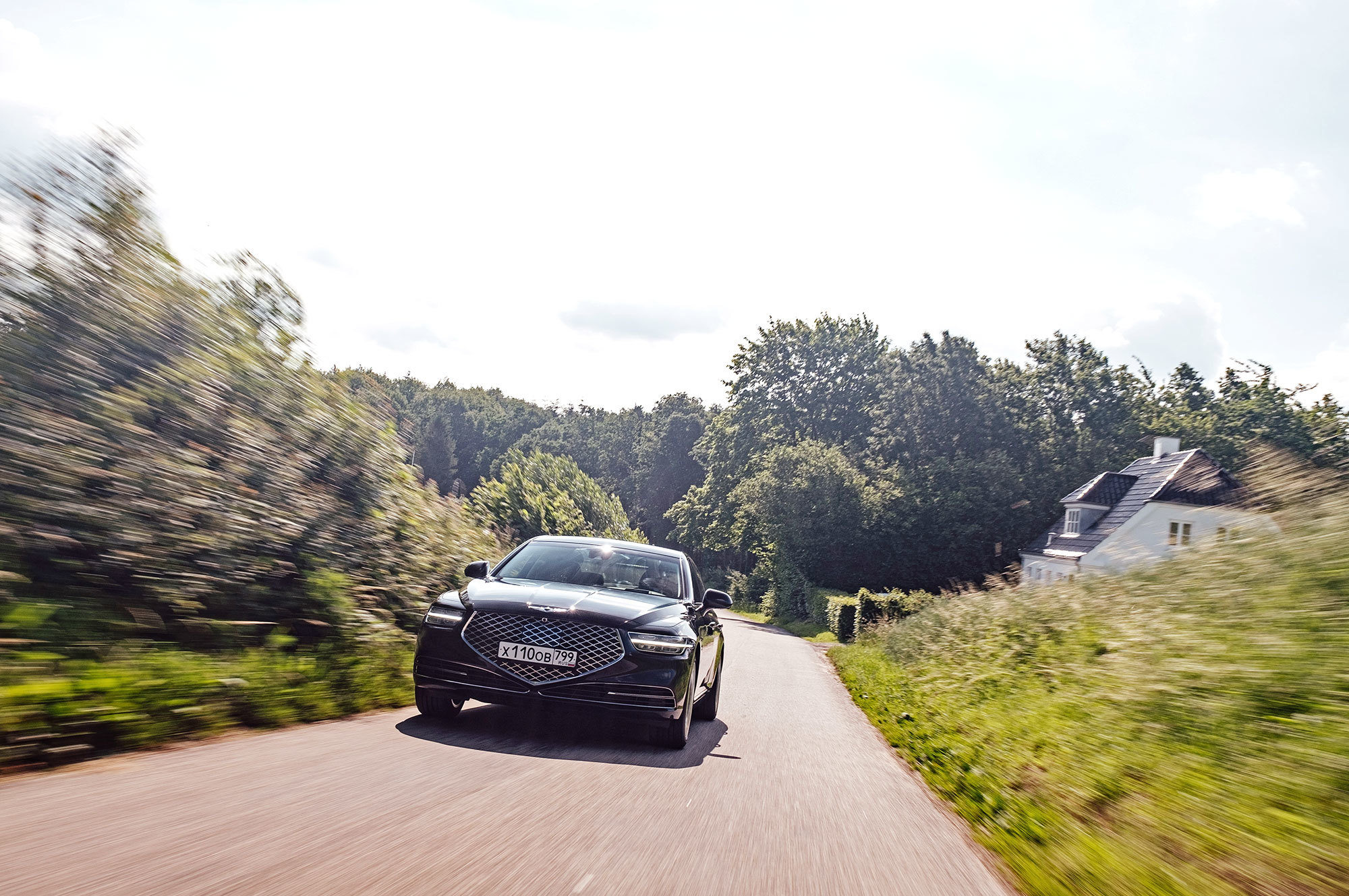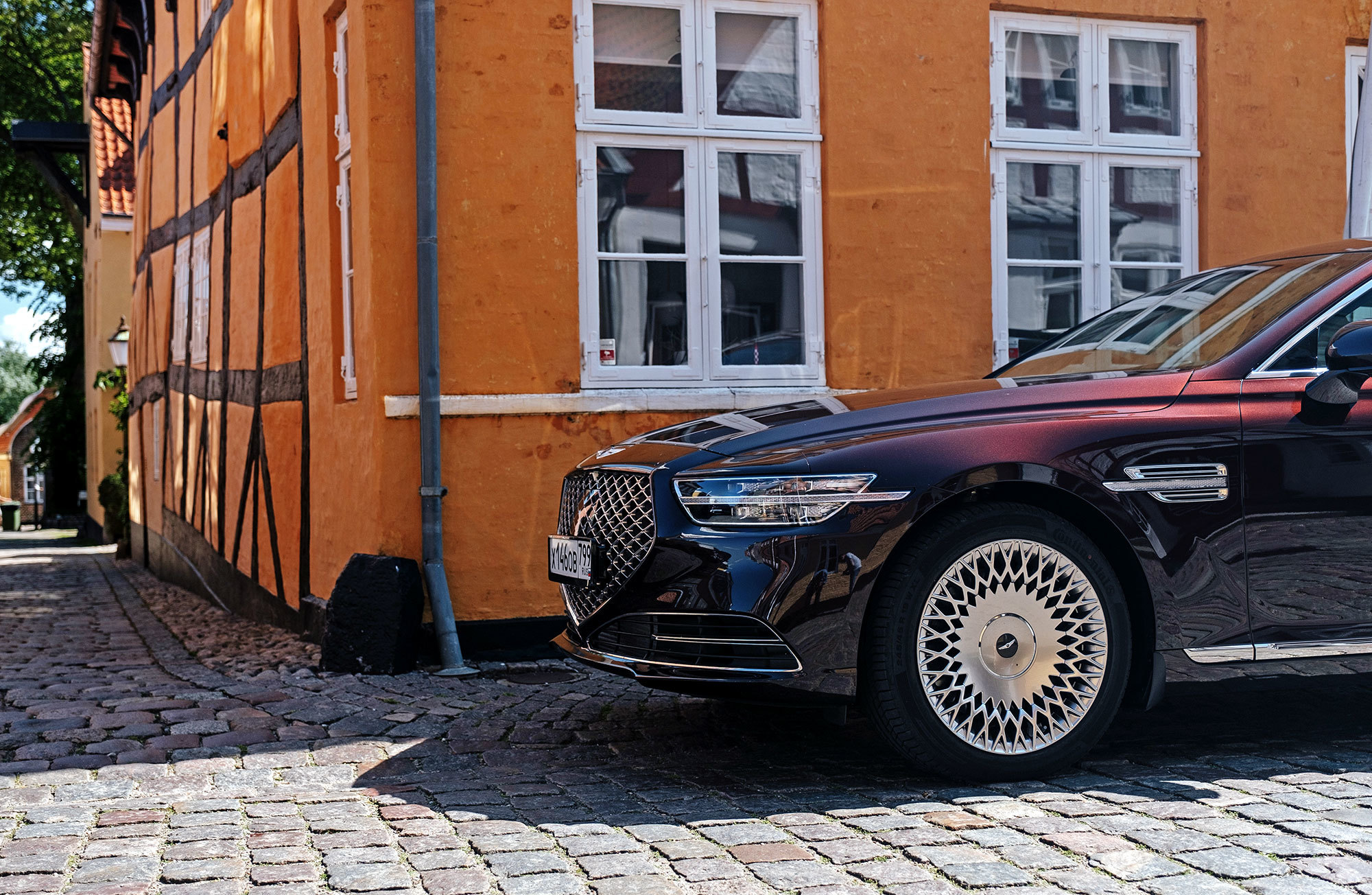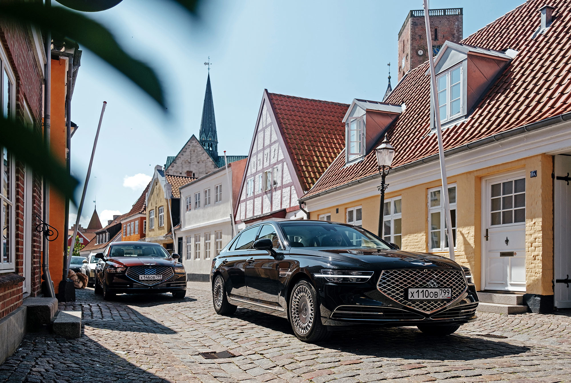 Тест-драйв проходит в Дании со стартом из Копенгагена, жители которого всем средствам передвижения предпочитают велосипед. Они взирают с любопытством на неуместный и неуклюжий в предлагаемых обстоятельствах седан, вымахавший далеко за пять метров. В Европе корейская премиум-марка не представлена и неизвестна. Тут всё одно: что Genesis с российскими номерами, что лимузин Путина.
