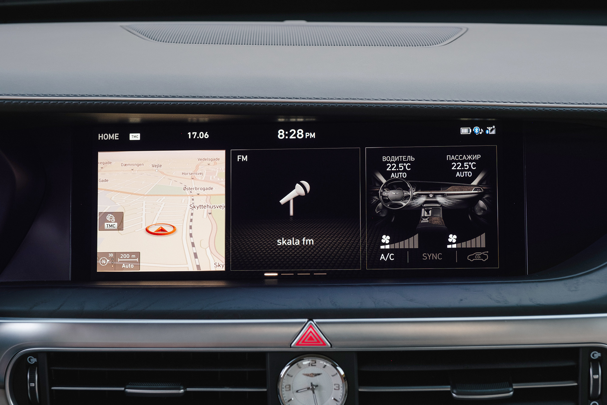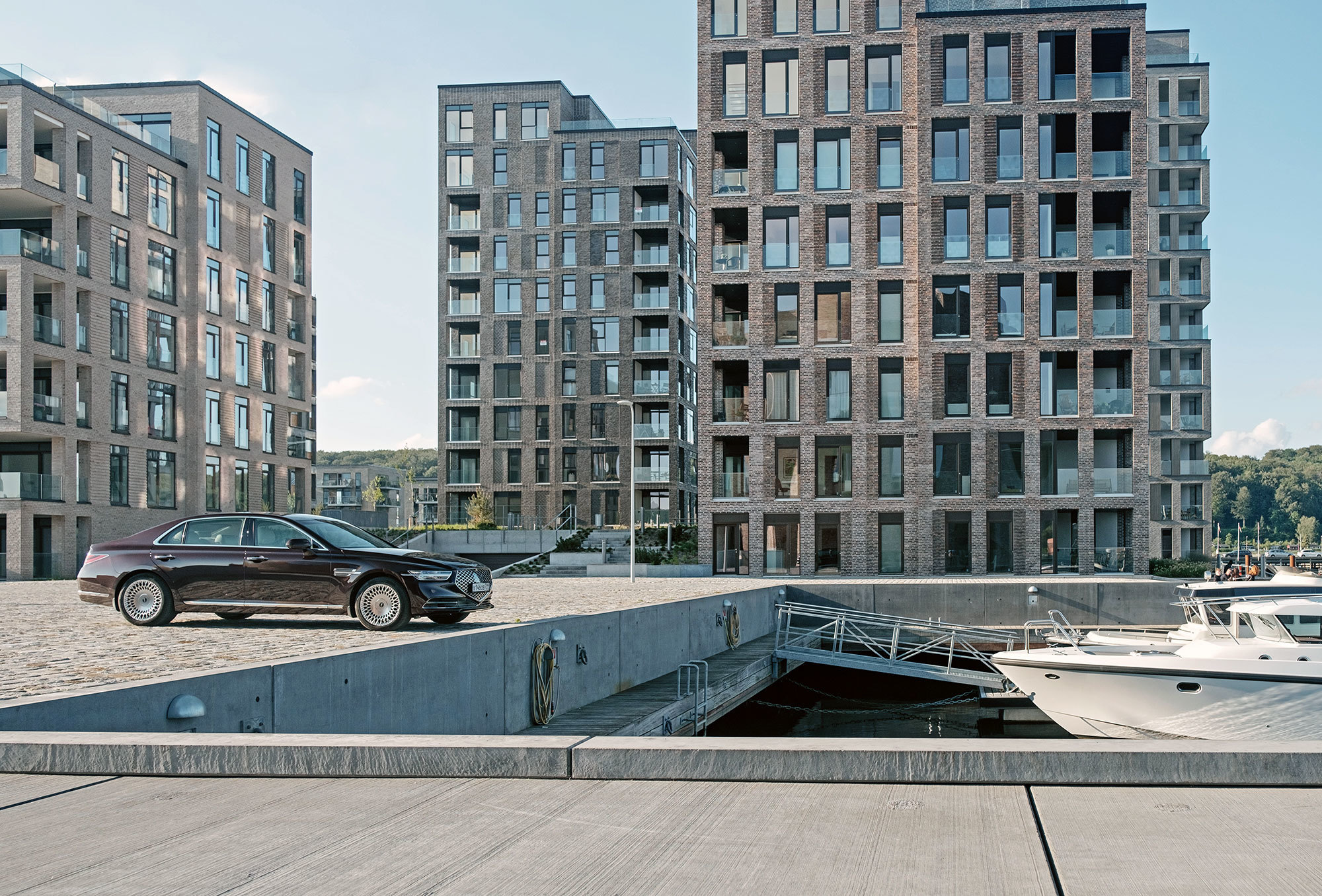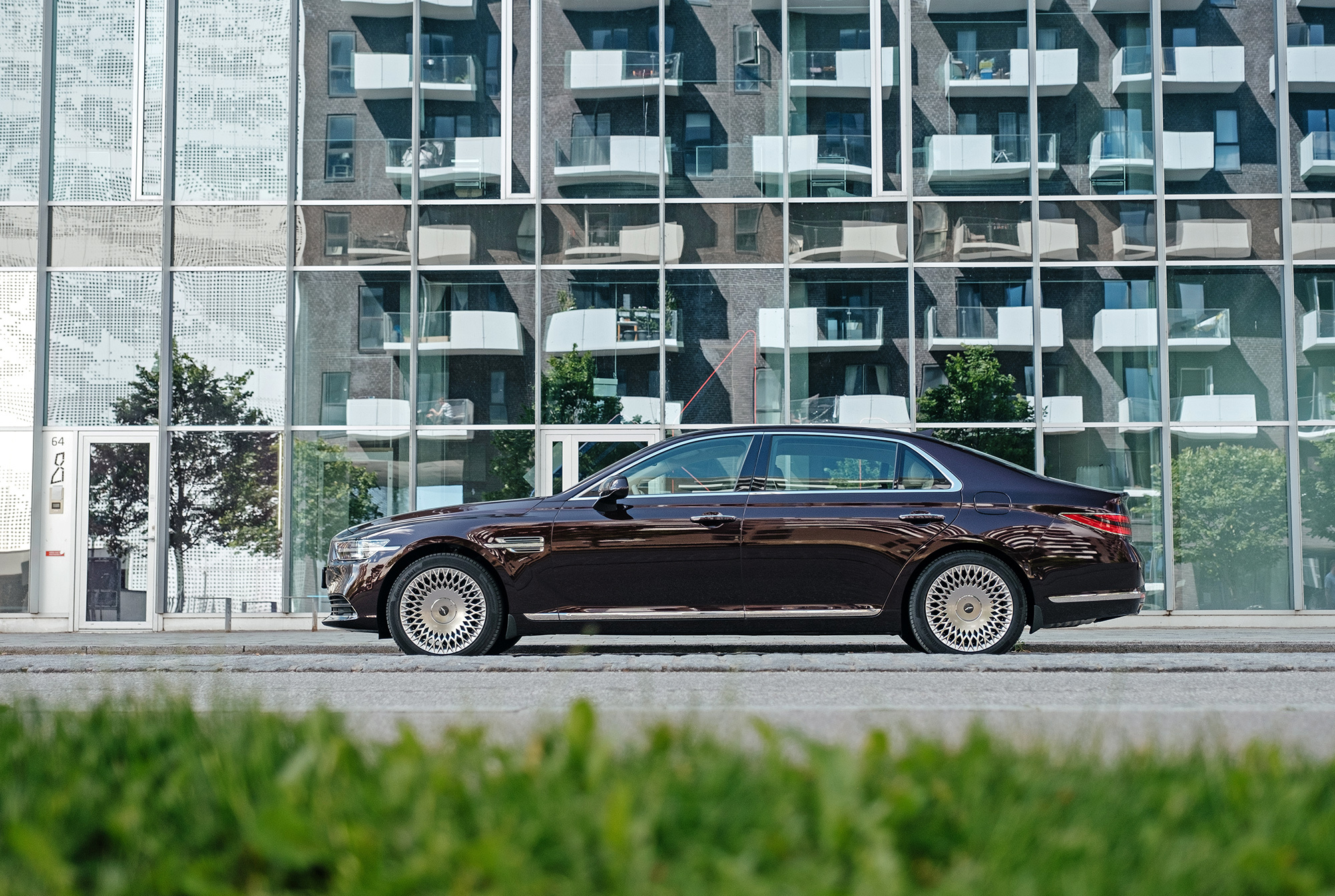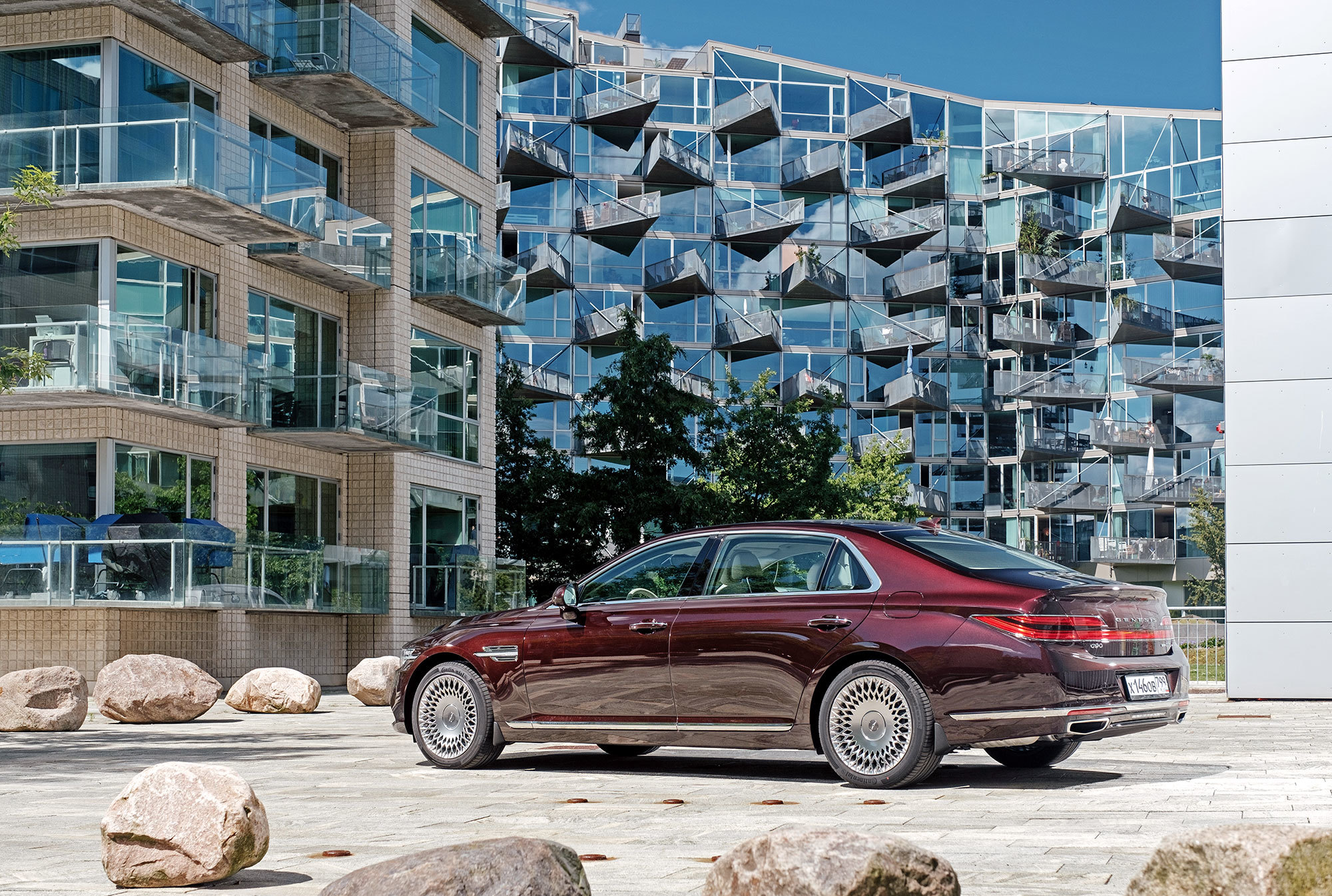 Тест-драйв проходит в Дании со стартом из Копенгагена, жители которого всем средствам передвижения предпочитают велосипед. Они взирают с любопытством на неуместный и неуклюжий в предлагаемых обстоятельствах седан, вымахавший далеко за пять метров. В Европе корейская премиум-марка не представлена и неизвестна. Тут всё одно: что Genesis с российскими номерами, что лимузин Путина.