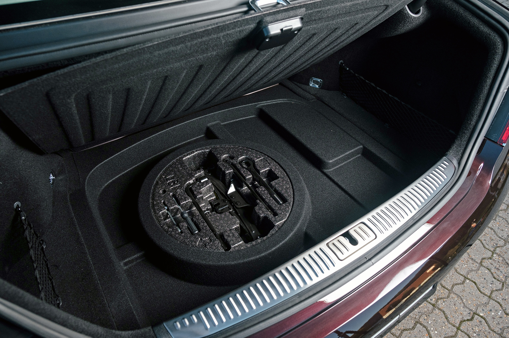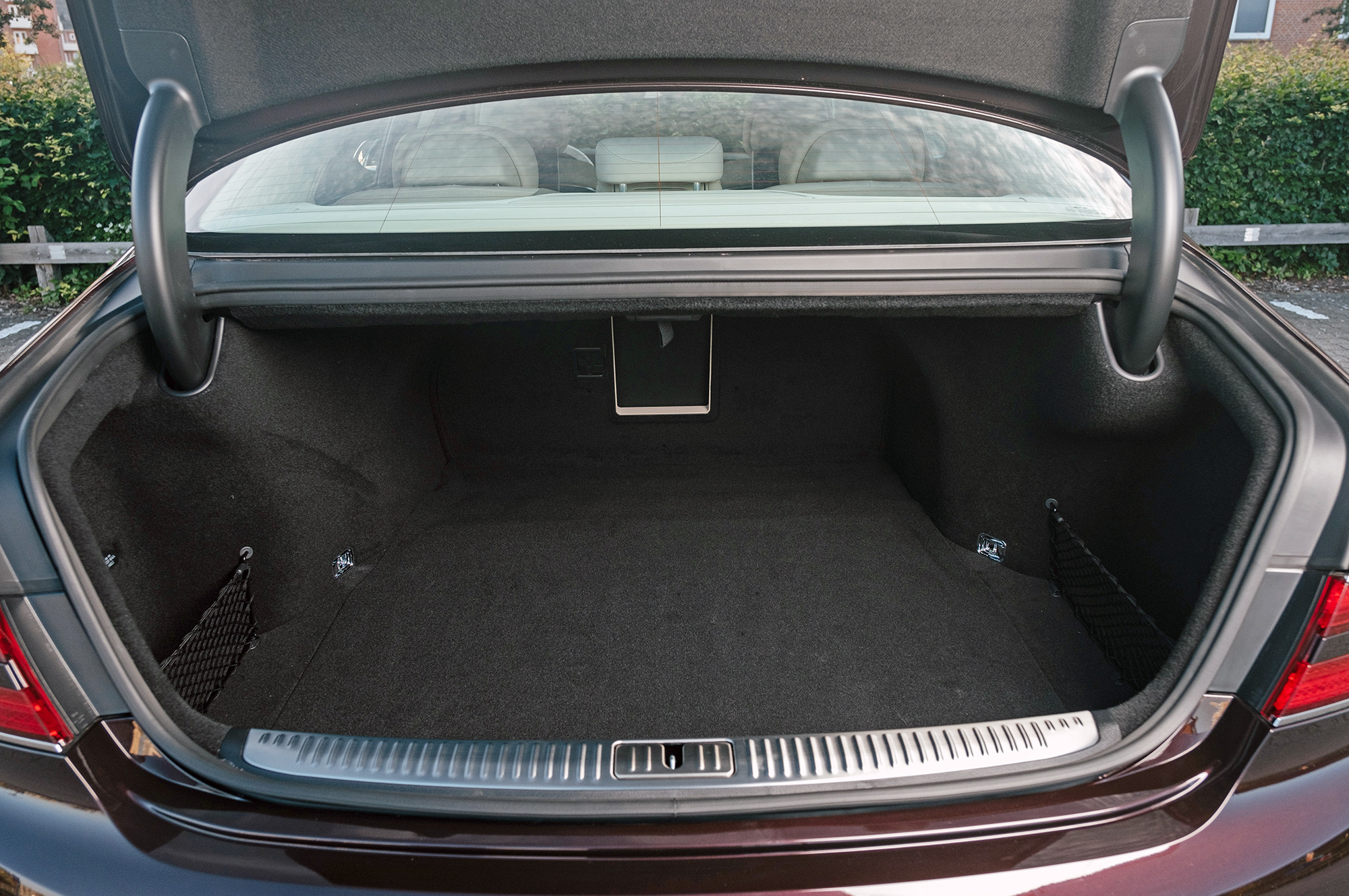 Рестайлинг принёс с собой два новых цвета, оба «металлики»: бордовый Porto Red (на фото) и золотисто-серебряный Gold Coast Silver. В представительстве говорят, что хотели бы продавать больше цветных машин, но в консервативном сегменте F покупатели предпочитают чёрный.