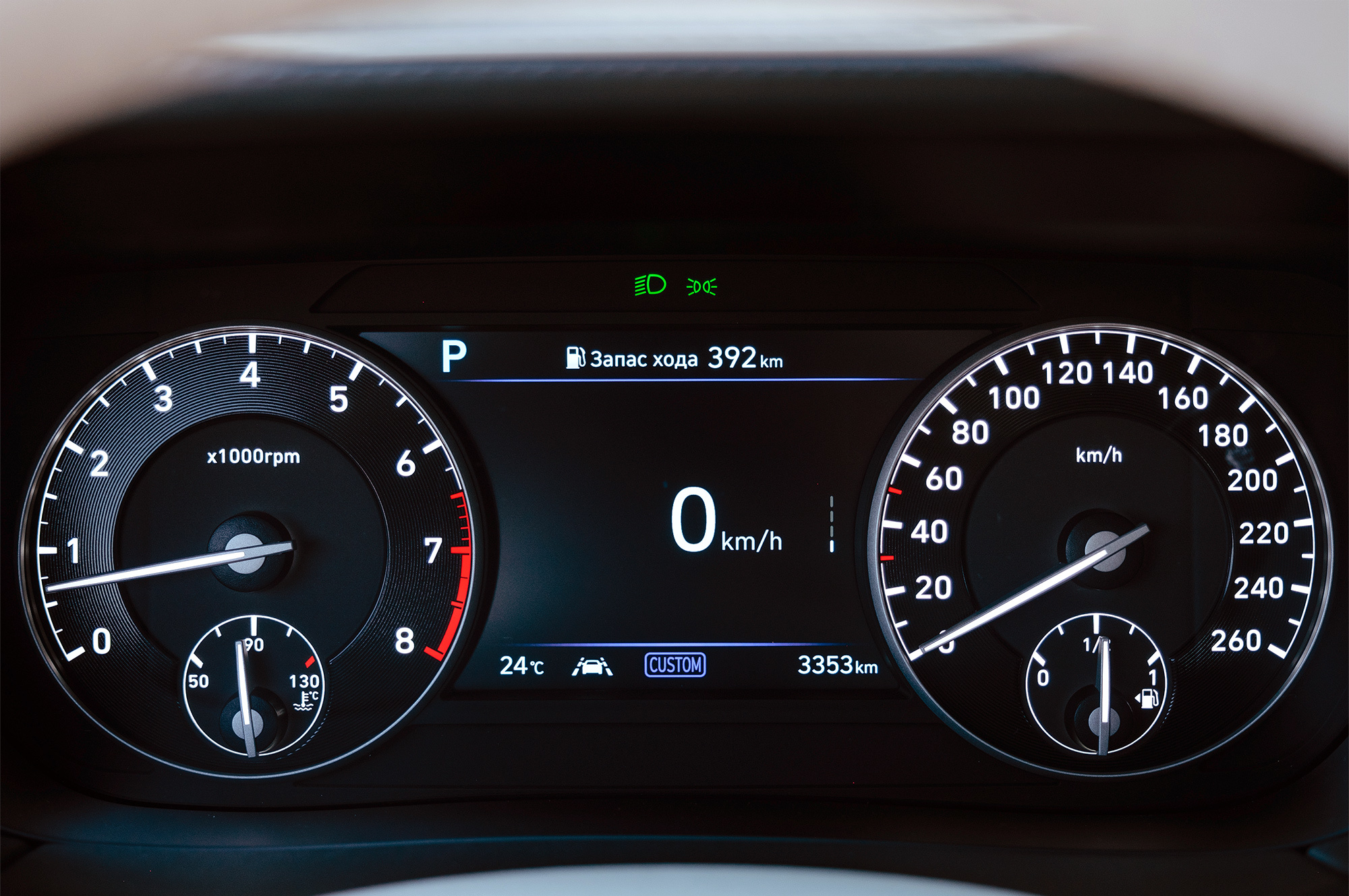 Техника не тронута, но усилена шумоизоляция крыши и пространства под задним диваном ради улучшения акустического комфорта. С той же целью машина снабжена системой активной компенсации звука двигателя. Стало немного лучше, однако в сравнении с немецкими седанами G90 по-прежнему шумноват: в движении постоянно ощущается негромкий гул, колёса шлёпают на стыках. Проехал по песочку — услышал его в колёсных арках. Нет в «корейце» немецкой отрешённости от внешнего мира, увы.