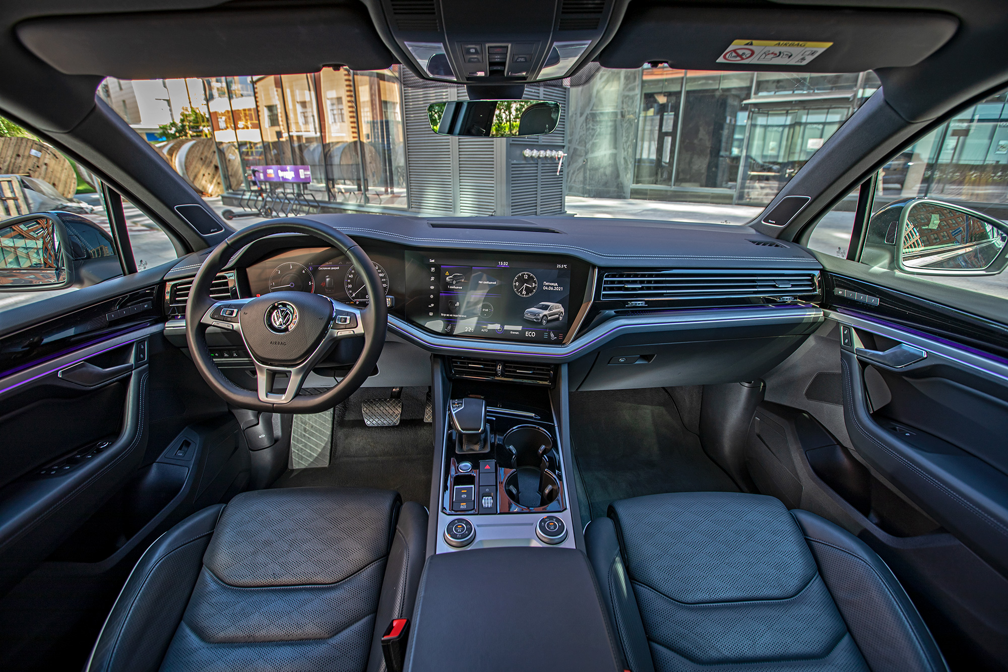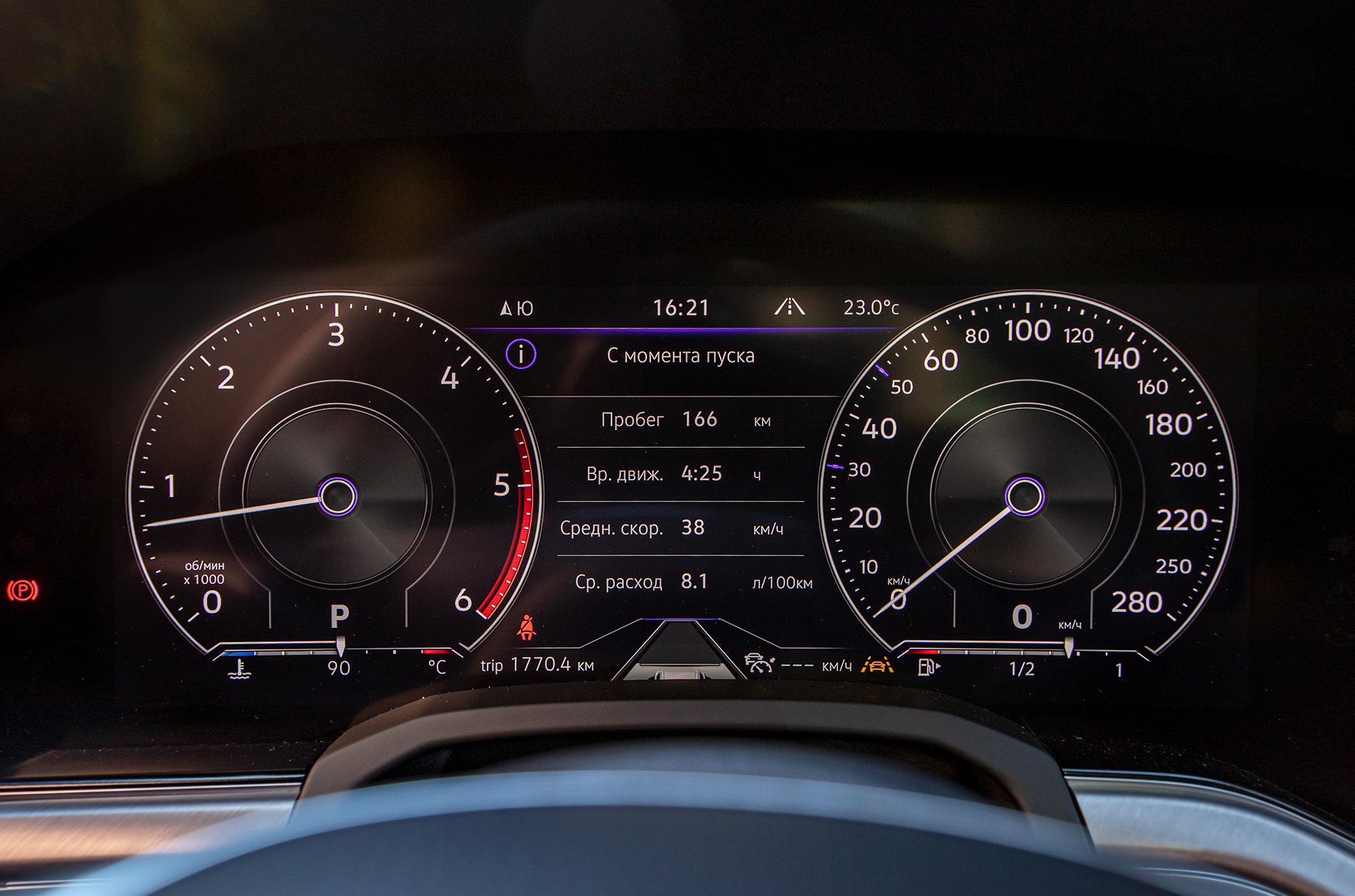 Volkswagen дополнен внешним спортпакетом R-Line, но снаружи ничем особо не запоминается. Салон интереснее. Водитель, сидя перед двумя крупными дисплеями, ощущает себя капитаном летательного аппарата. А какие здесь опциональные мультиконтурные кресла! Профиль выверен, оптимальнее плотность более жёсткой набивки, а электропривод позволяет настраивать развитые боковые валики на спинке и удлиняющейся подушке. Плюс посадка ниже, диапазон регулировки руля по вылету больше, и есть восемь программ массажа для обоих седоков.