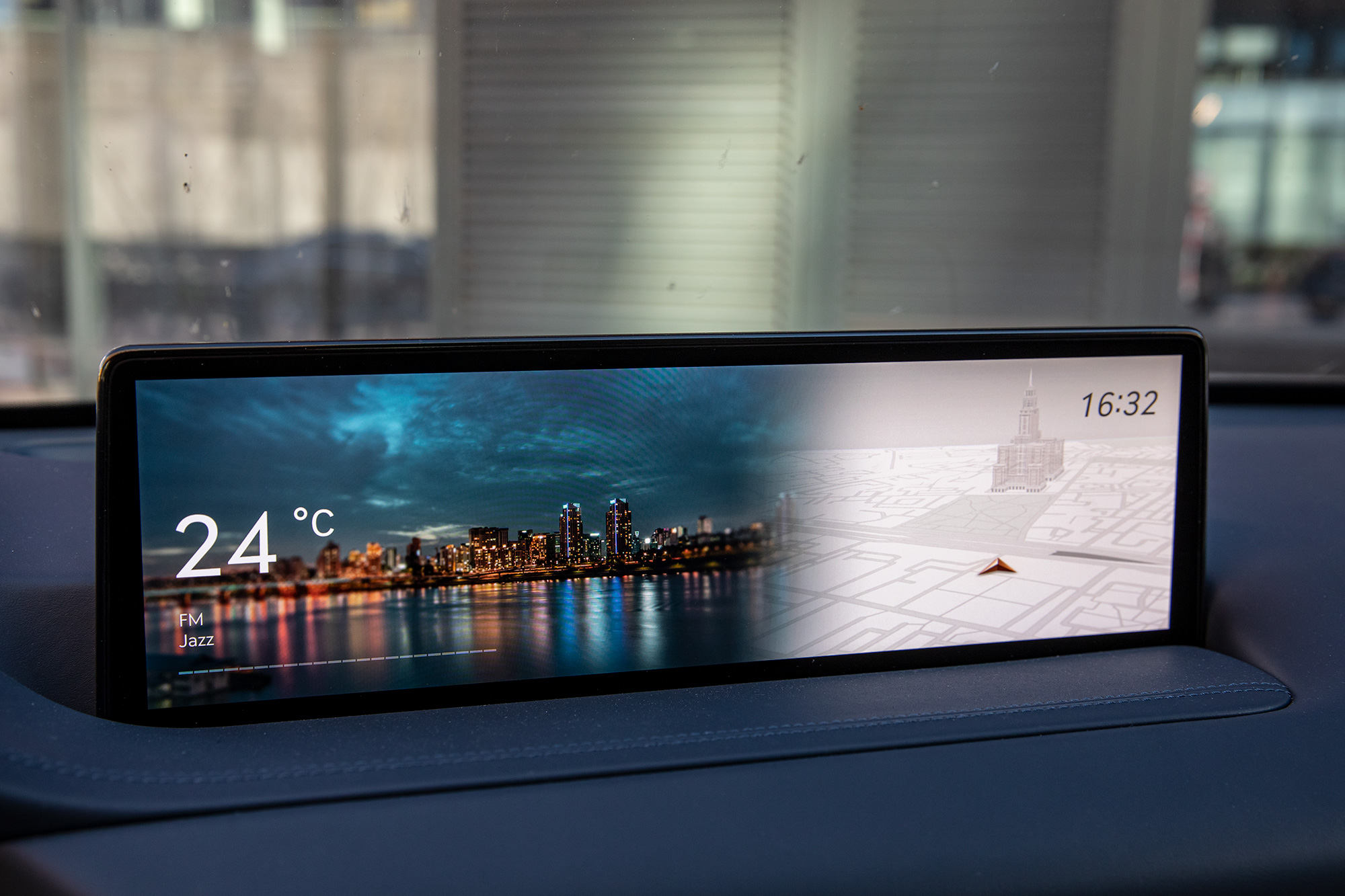 Попытка соригинальничать в управлении мультимедийной системой оказалась не слишком успешной. Металлизированное поворотное кольцо легковесно, фиксация невнятна, как и отдача на расположенном в центре сенсорном круге. Даже такое обыденное дело, как ввод адреса в навигации, превращается в пытку. Положение широкоформатного тачскрина кажется чьей-то злой шуткой: не оторвёшься полностью от спинки — не дотянешься. Зато интерфейс оформлен со вкусом, всё работает быстро, легко соединяясь со смартфонами.