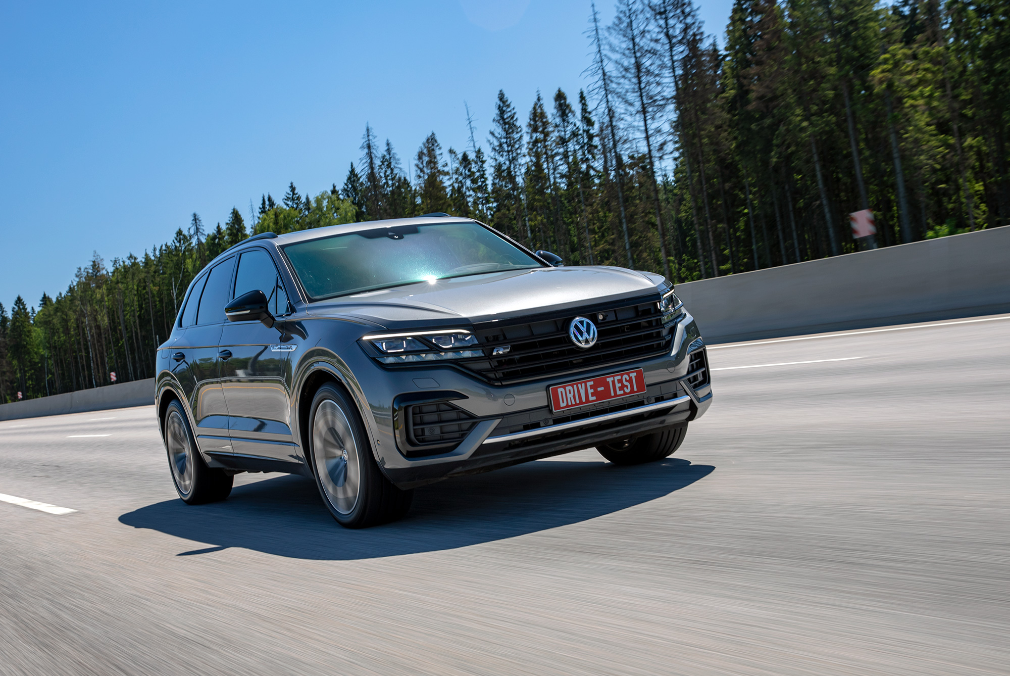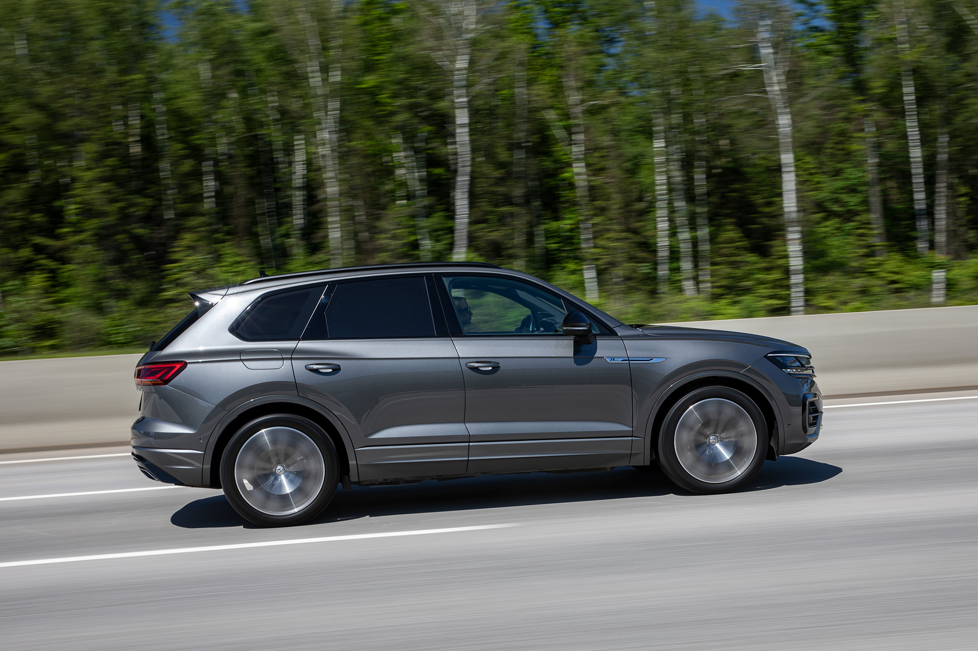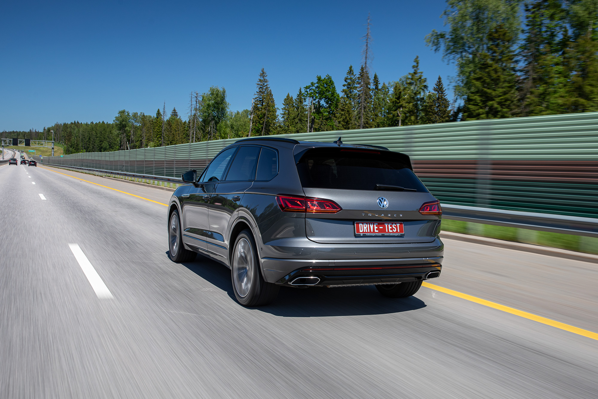 Поначалу Touareg не впечатляет тяжеловесным стартом из-за задемпфированной педали газа. Ощутимее заминка и при ускорении в пол. Но через секунду в спину следует пинок такой силы, словно под тобой не автомобиль, а разъярённый слон. Максимальный момент не сильно выше, 600 Н•м, тем не менее даже с учётом длительной паузы в начале разгона Volkswagen набирает первую сотню, за 7,3 с. Неутомимость заслуженного турбодизеля впечатляет и на шоссе. Не имеет значения, с какой скорости начинается спурт — страсти хватает и при 120, и при 160 км/ч.