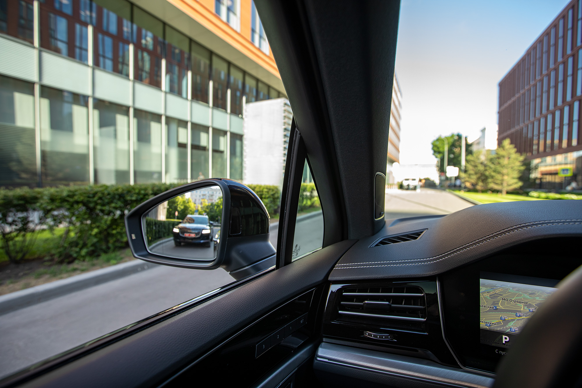 Genesis хорош собой, особенно на 22-дюймовых колёсах, а новый фирменный стиль узнаваем и интересен. Большие двери полностью прикрывают пороги, но закрываются с простоватым шлепком и не всегда с первого раза. Отсутствие доводчиков почти за 6,5 млн рублей удивляет. В Туареге они есть, причём увесистые двери захлопываются с породистым звуком и так же сохраняют чистоту порогов.