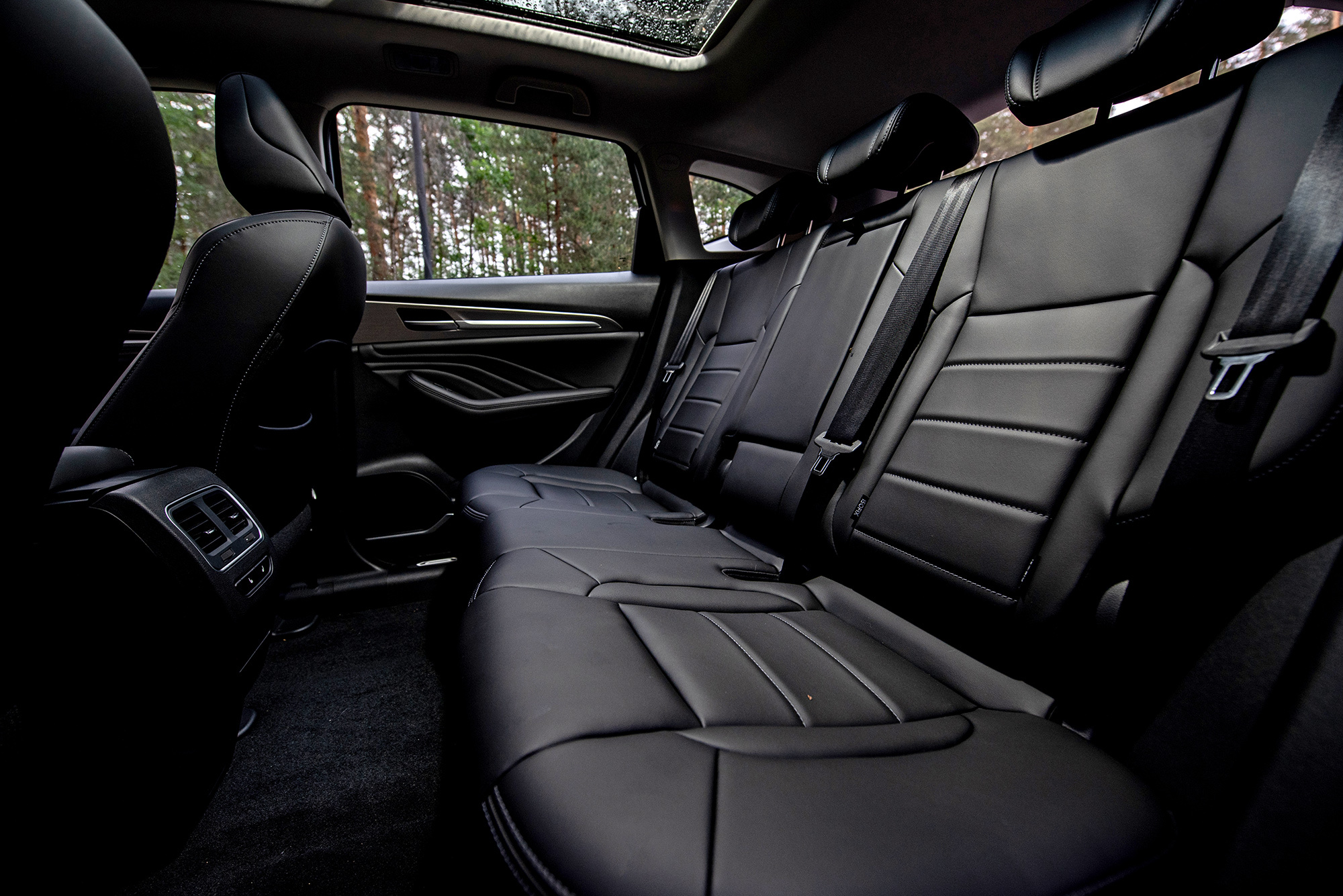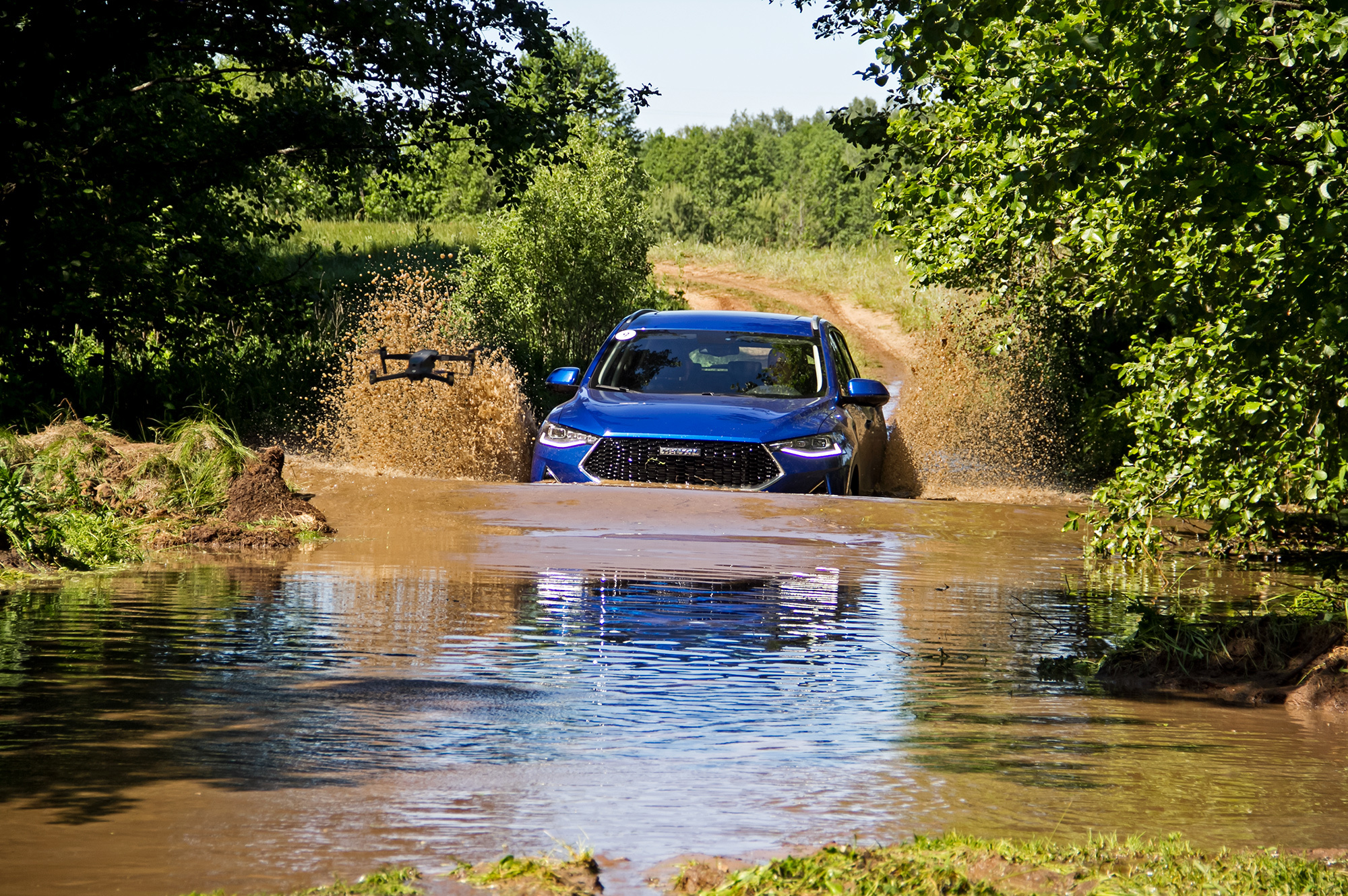 Внедорожный маршрут не подразумевает трэша, но песчаного, кочковатого просёлка и брода с илистым дном хватает для проверки геометрической проходимости и электроники. Задние колёса вывешиваются на перегибах с негромким постукиванием амортизаторов, а многодисковая муфта хоть и работает с постоянным десятипроцентным преднатягом, включается в полную силу с ощутимым толчком. Процесс имитации межколёсных блокировок тормозами запускается с задержкой.