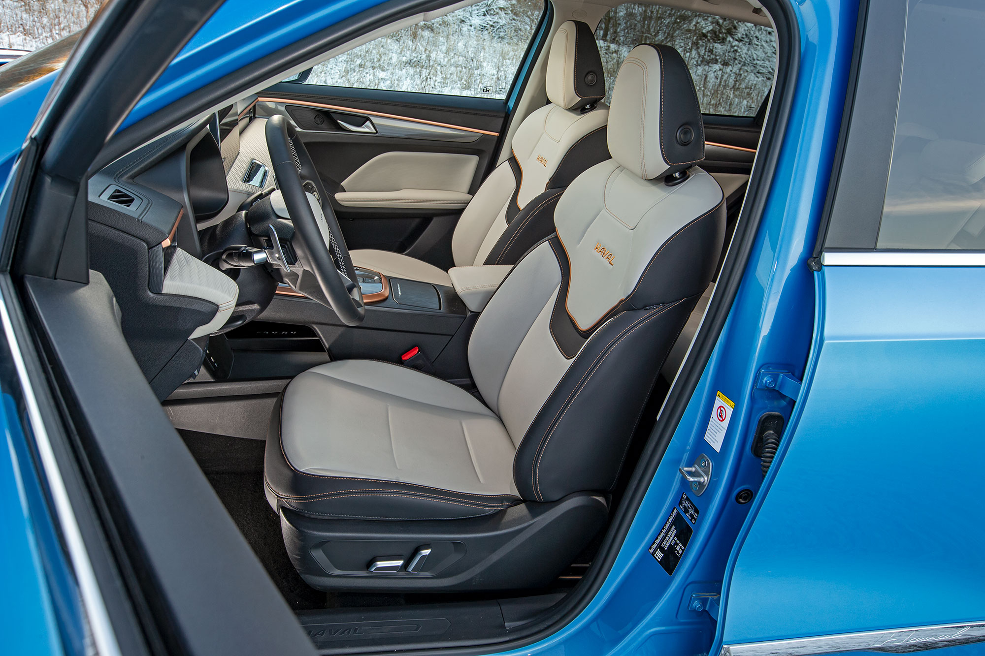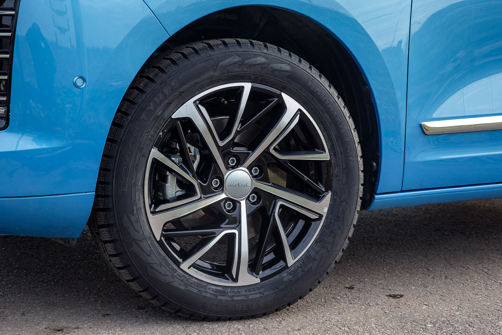 У Джолиона пороги тоже широки и так же доступны для грязи. Но Haval не выглядит заправским паркетником. Бамперы лишены брутальных вставок, а вместо некрашеного пластика — обилие хрома. Особенно эффектна передняя часть с ослепительной решёткой радиатора и светодиодными фарами, похожими на ювелирные изделия. В сочетании с «металликом» «небесный топаз» Джолиона оставляет во всех смыслах блестящее впечатление.