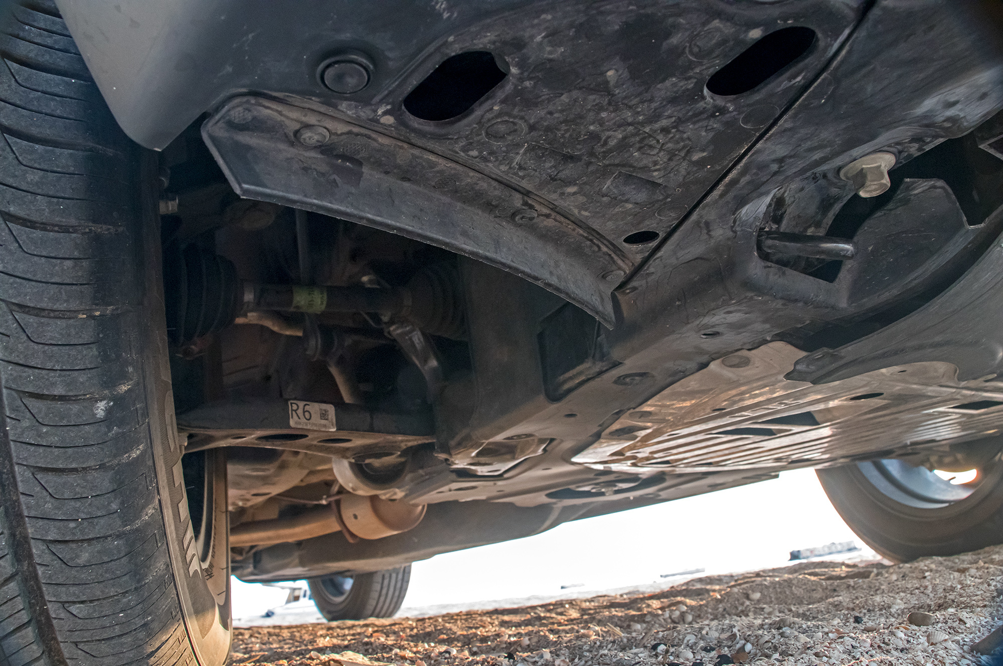 За багажник тоже не стыдно. Объём хорош, у пятой двери ― электропривод, порог низкий, всего 68 см от земли. Даже в нижнем из двух положений пола в районе докатки остаётся место для огнетушителя или буксирного троса. Правда, дороговизна здесь не ощущается: шторку надо убирать и ставить вручную, боковины ― пластиковые, а в подполе выставлен напоказ пёстрый и гигроскопичный шумоизоляционный материал. Не видел, чтобы так встречали покупателя Volkswagen Tiguan или новая Mazda СX-5.