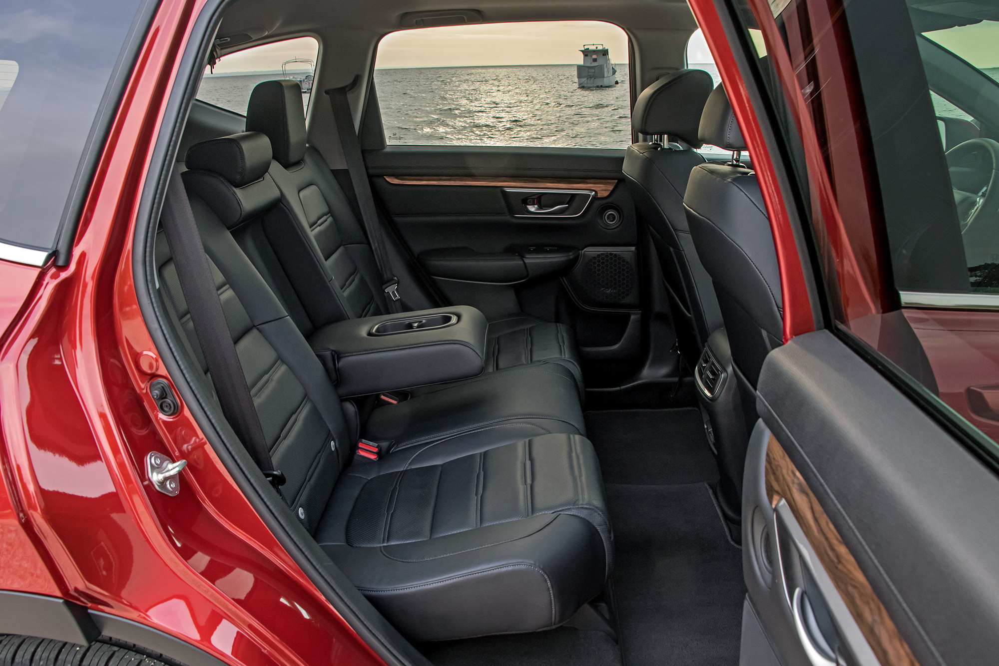 Главное в этой машине ― семейные ценности. Не зря средний возраст покупателя CR-V в России ближе к пенсионному, чем у основных конкурентов. Дилерам я бы посоветовал держать в выставочных кроссоверах открытыми задние двери: за ними самое интересное, да и не будет заметно, что датчики бесконтактного доступа ― только в передних ручках. Пороги защищены от грязи, а двери распахиваются буквально на 90 градусов, открывая лёгкий доступ на самый просторный в классе диван.