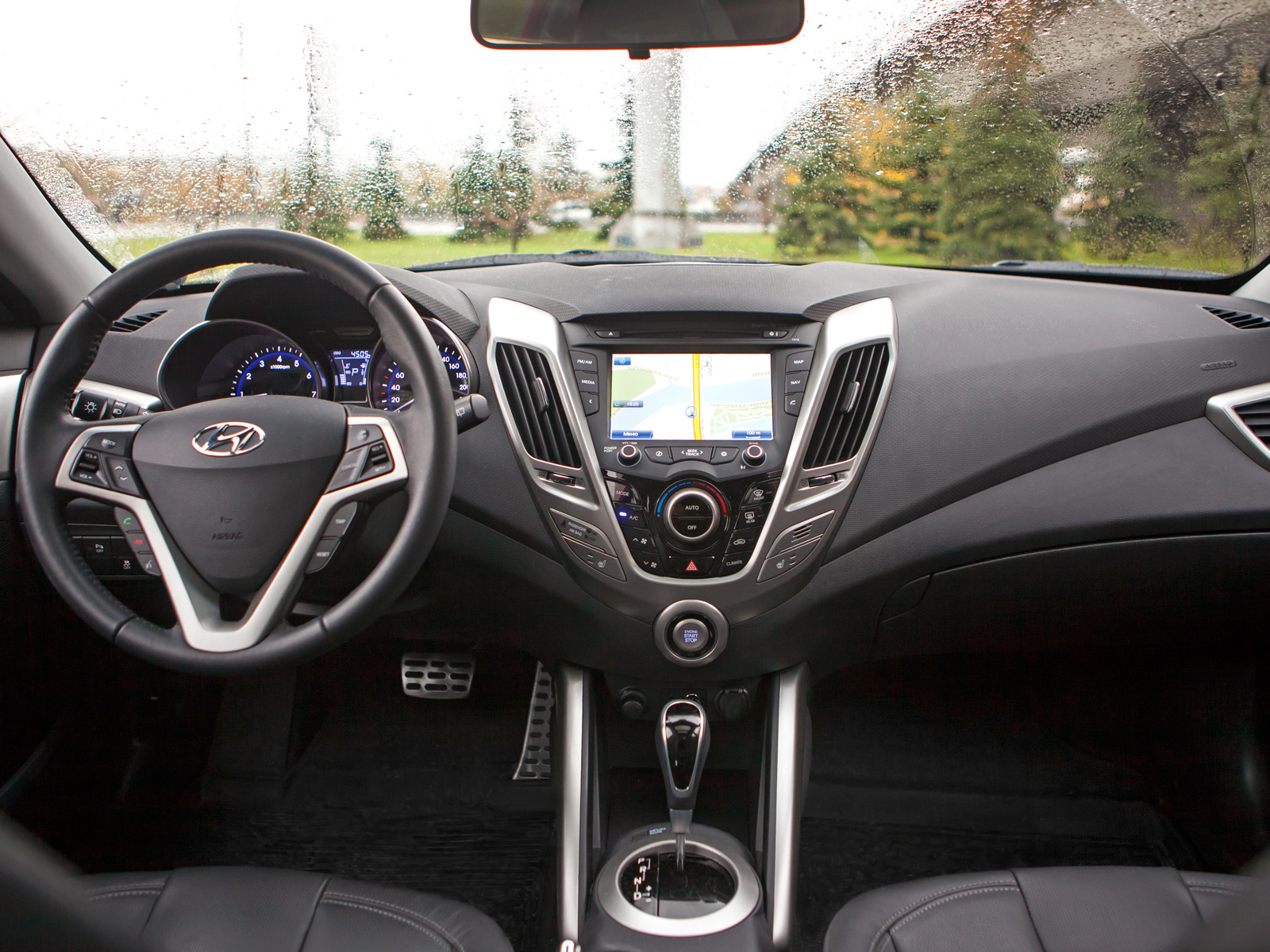 Но в салоне Велостера прозвенел первый звоночек — это скачок линии жизни вниз. Если снаружи Hyundai выглядит не только смело, но и дорого, то интерьеру подходят другие определения. Центральная консоль в форме физиономии Оптимуса Прайма выглядит технологично, но всё портит низкий уровень материалов отделки. Что американцу сойдёт, европейцу может не понравиться. Дешёвый гулкий пластик, изобилие посеребрённых элементов, резиноподобная кожа на руле и сиденьях — в таком окружении будет находиться владелец Велостера. Японский конкурент внутри респектабельней и по качеству сборки, и по отделке.