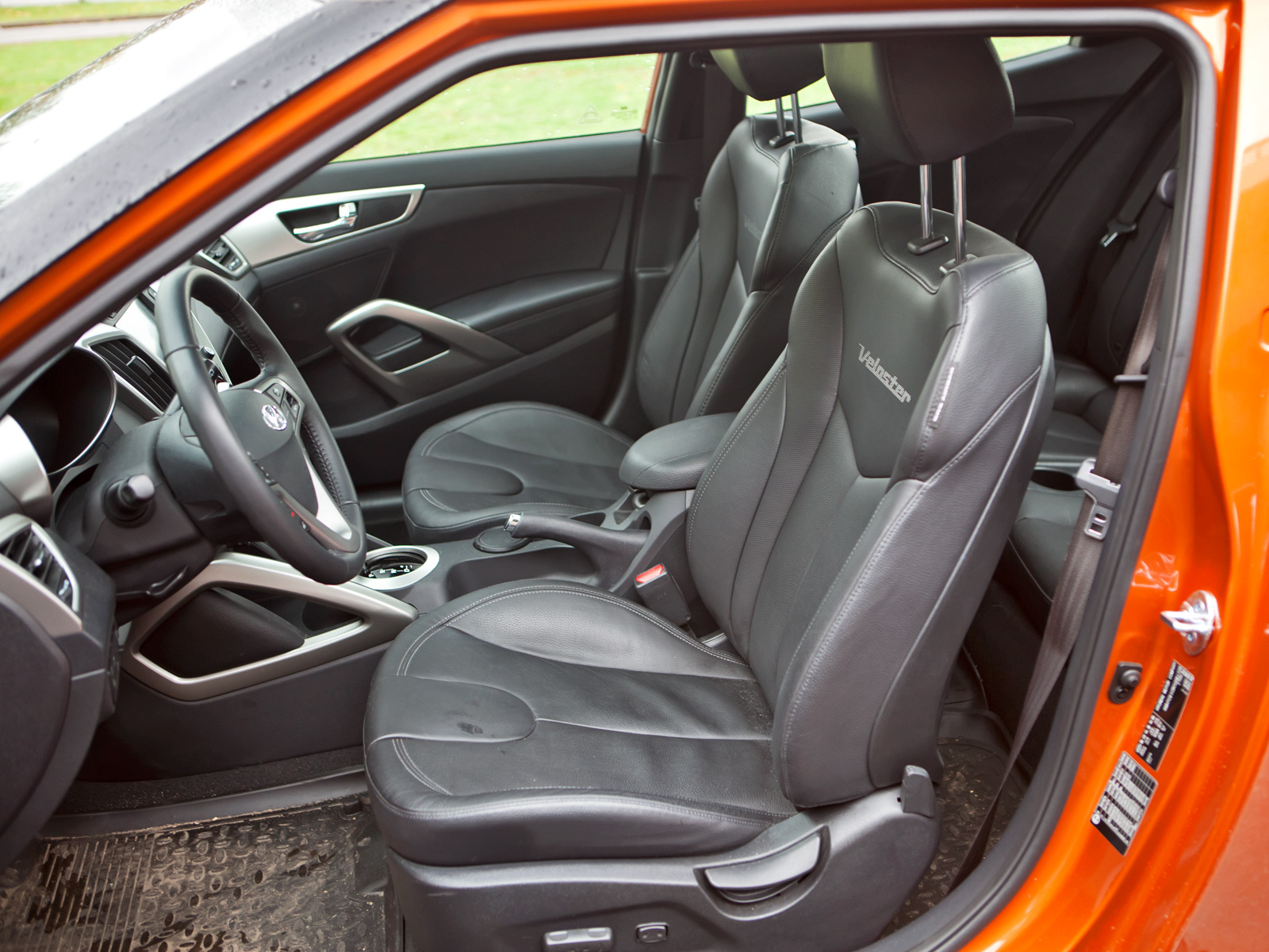 Не припомню, чтобы на корейский автомобиль так часто глазели — в городском потоке на Veloster смотрят так, будто это распластавшийся по земле Wiesmann! И приготовьтесь давать интервью направо и налево — на АЗС, во дворе, у рабочего офиса или на парковке торгового центра. Особенно интересно наблюдать за лицами людей, когда они переходят от правой боковины хэтчбека к левой — там ведь у него две и одна дверь соответственно. И это не считая того, что почти все кузовные панели у автомобиля рельефные, подоконная линия динамичная, а по центру мускулистого заднего бампера установлена пара выпускных патрубков. Браво, корейцы!