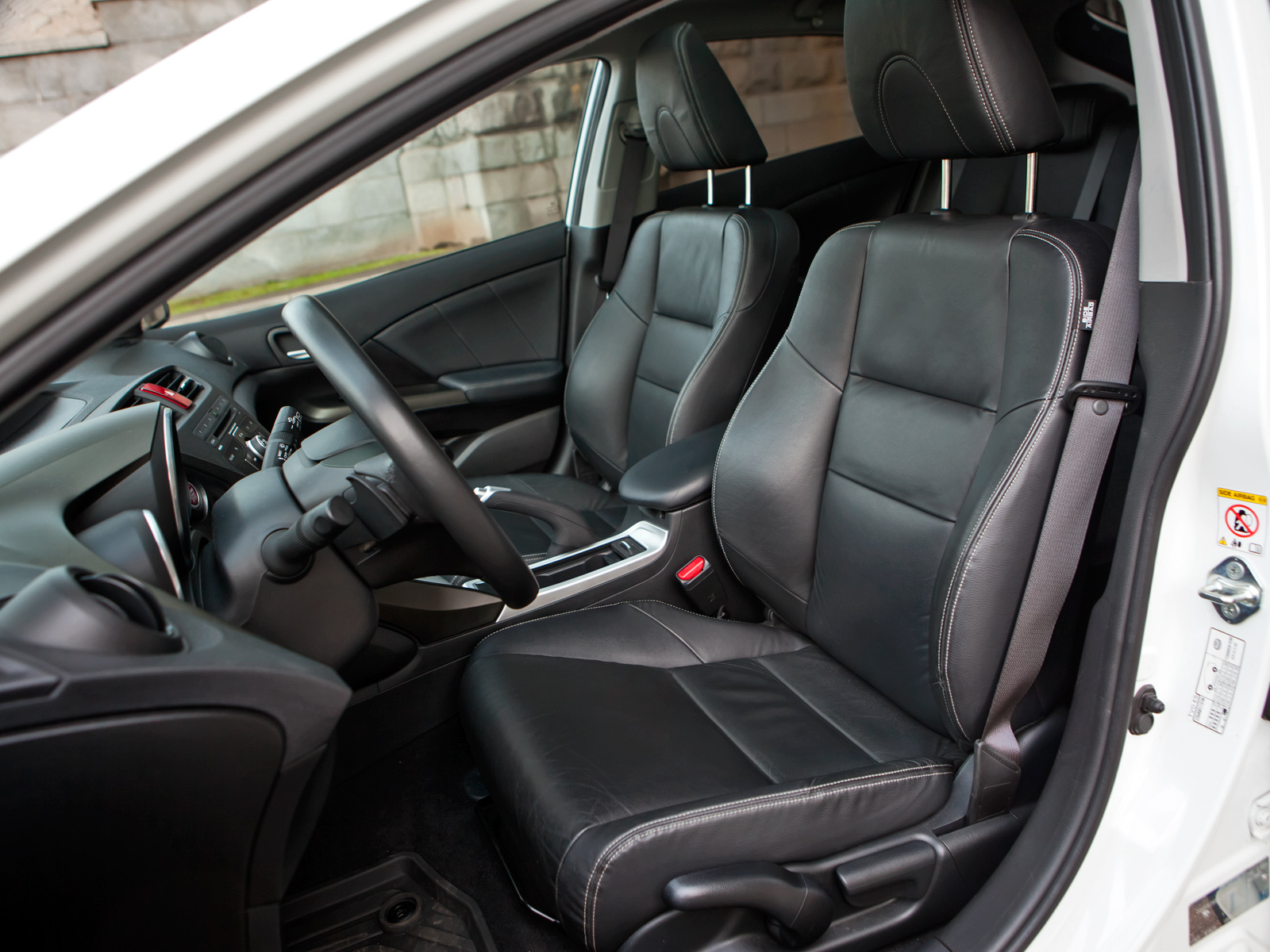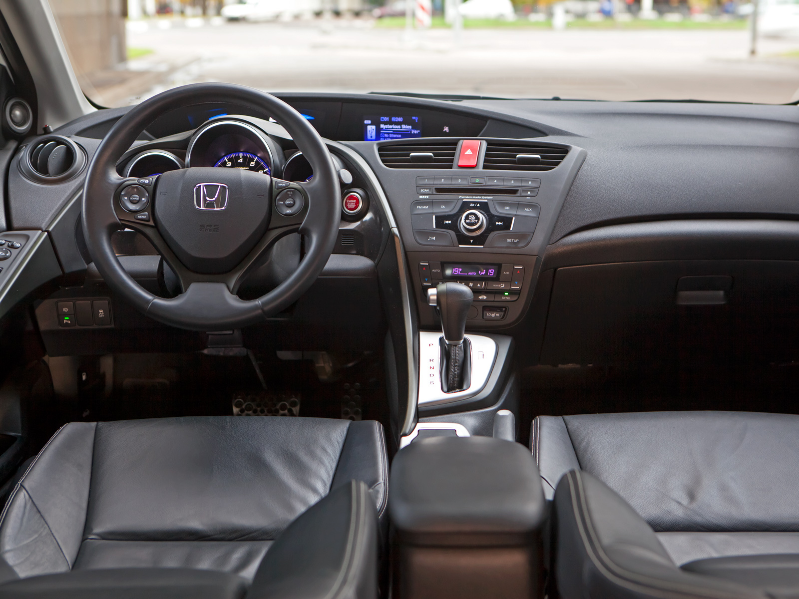 Конечно, Civic — тоже не самый просторный автомобиль в классе, но даже с большой панорамной крышей вам не грозят приступы клаустрофобии. Людям ростом до 185 см вполне вольготно будет по всем направлениям: как спереди, так и сзади, а панель пола практически ровная, что облегчает участь третьего пассажира на галёрке. В Хонде другая беда: для оптимальной посадки водителя немного не хватает диапазона регулировки руля по вылету и возможности выставить спинку сиденья ближе к вертикальной оси. За рулём сидишь, слегка развалившись.