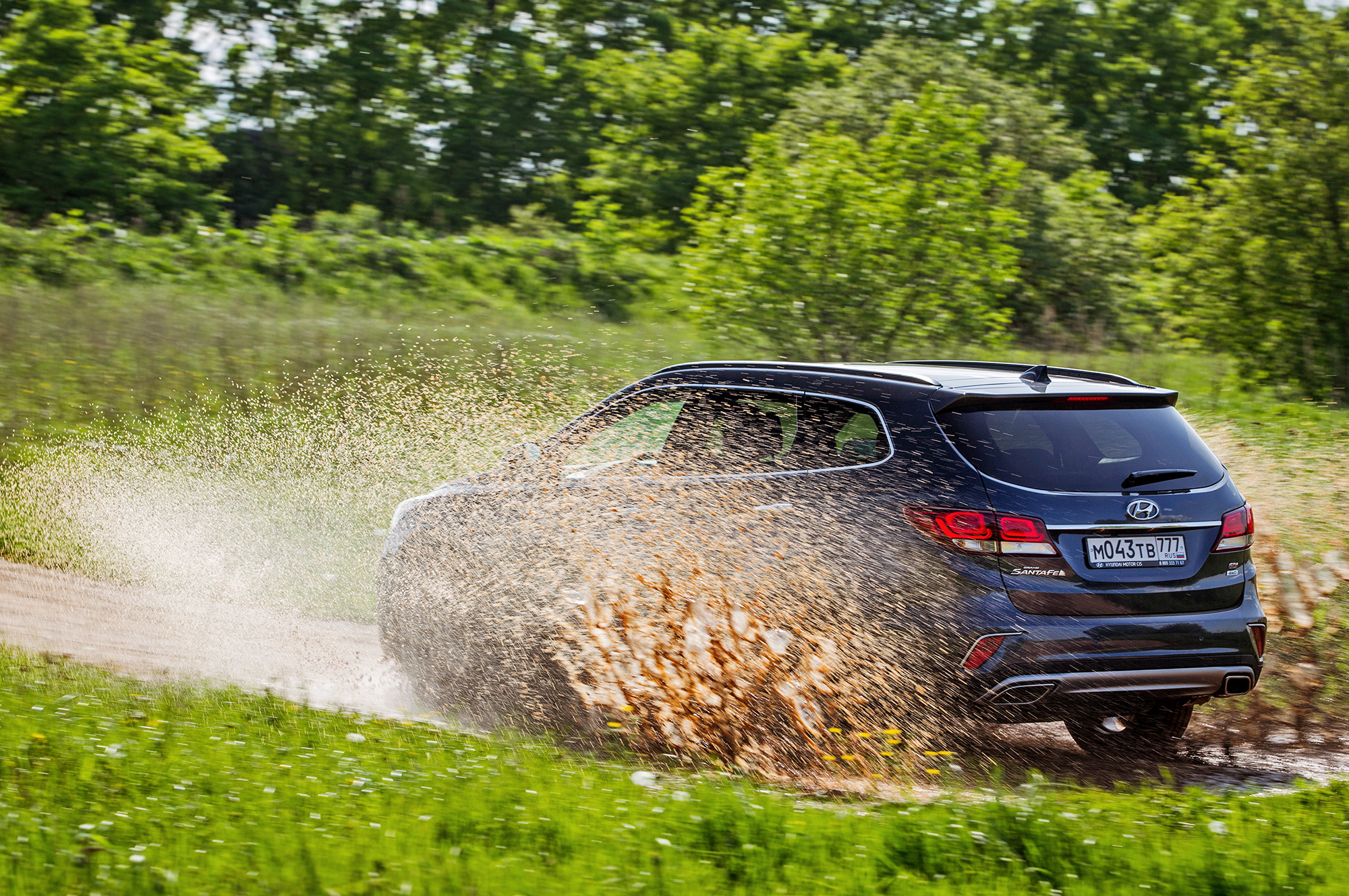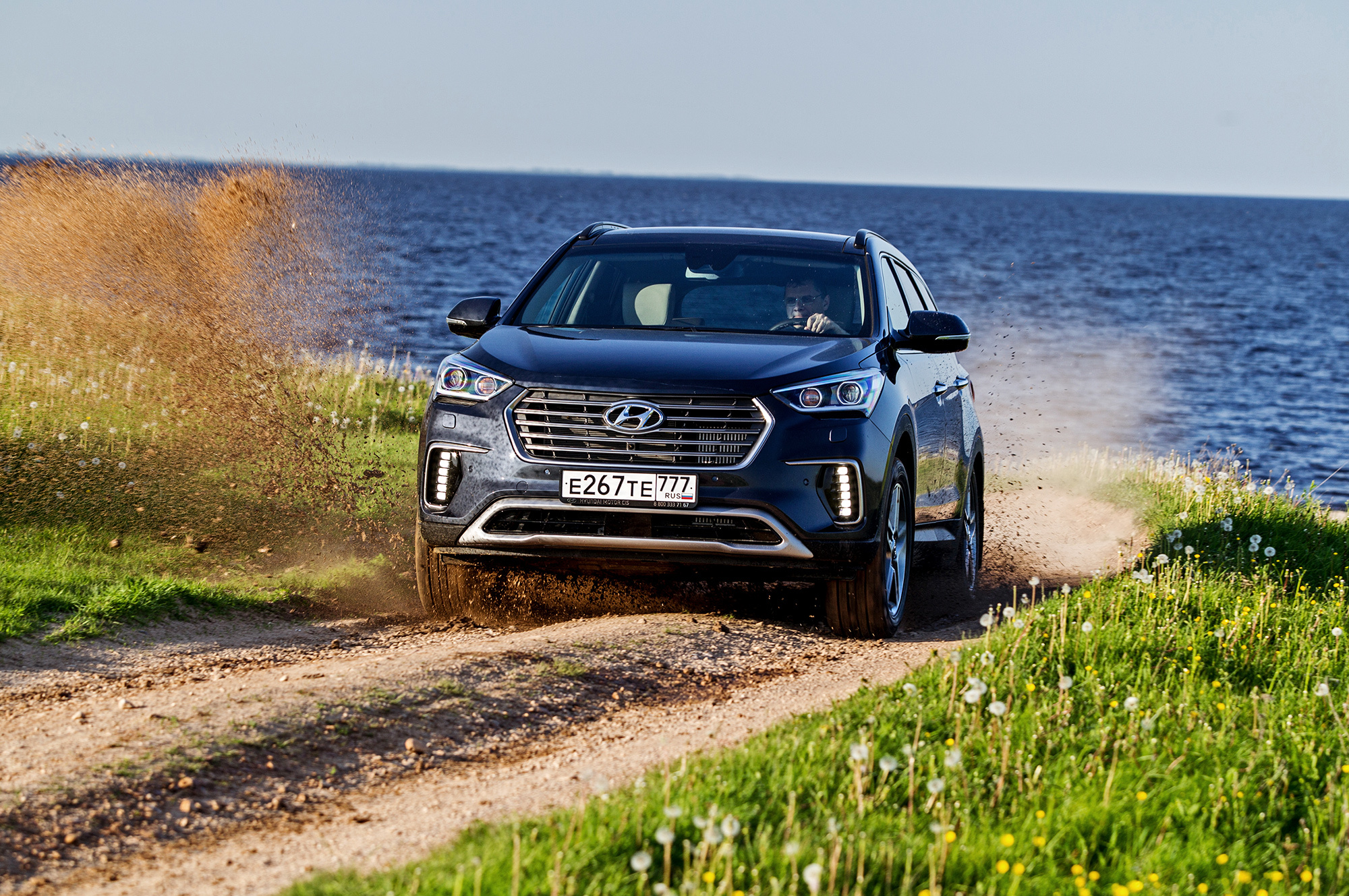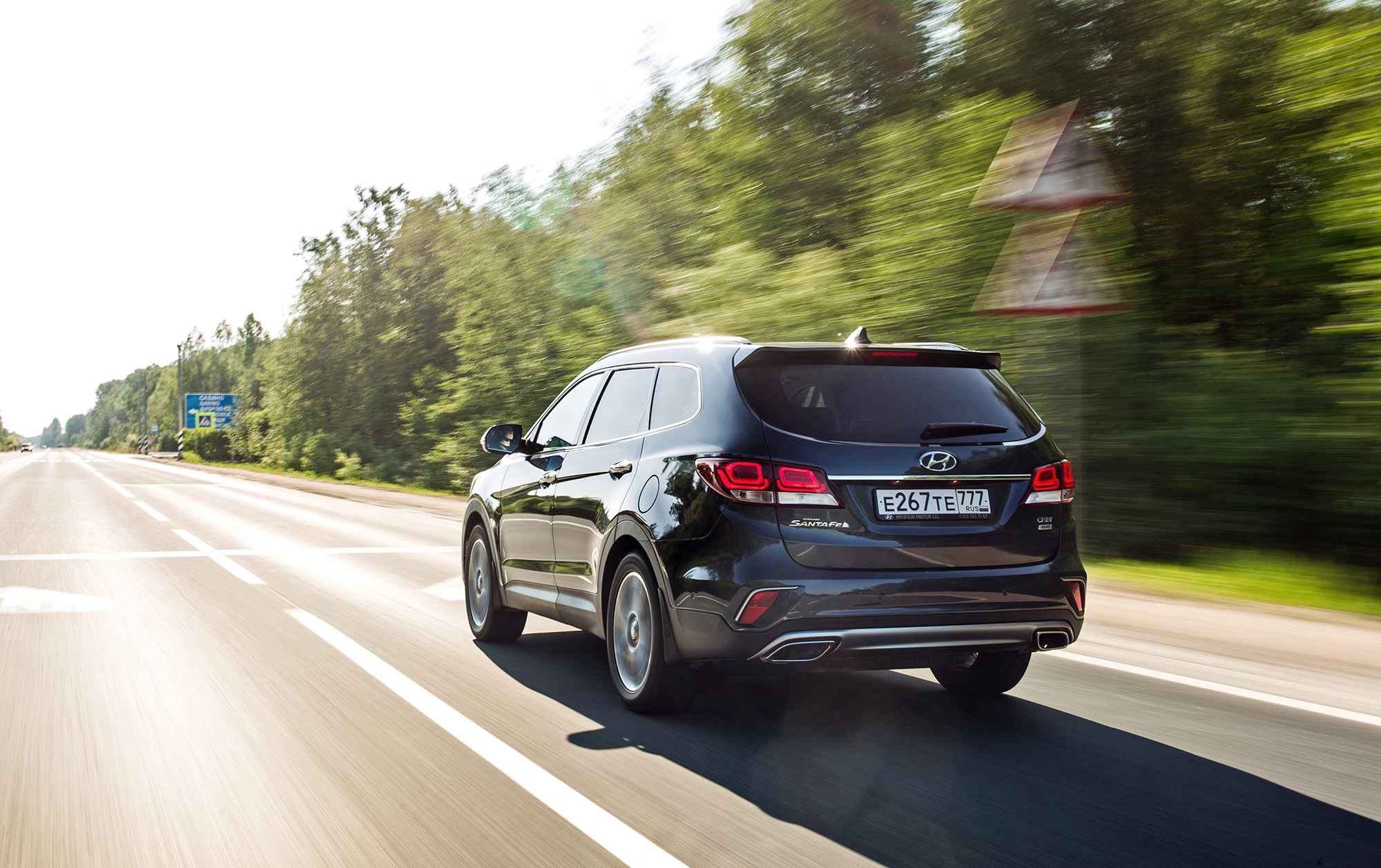 Дороги Новгородской области, где представляли новинку, изобилуют поворотами и разбитыми участками, которые корейские автомобили в целом и дореформенный Grand Santa Fe в частности, как правило, не жалуют. Однако в ходе рестайлинга увеличена жесткость задних сайлент-блоков и стабилизатора поперечной устойчивости. Реакции на поворот руля понятнее, усилие на нём натуральнее — меньше приходится ехать «на глаз». Уменьшились крены, снизилась вертикальная раскачка, а главное — повысилась энергоёмкость подвески. Дорожные изъяны по-прежнему транслируются в салоне все до единого, но пробои теперь — явление редкое. Главное, не гнать: правило «больше скорость — меньше ям» на Grand не распространяется.