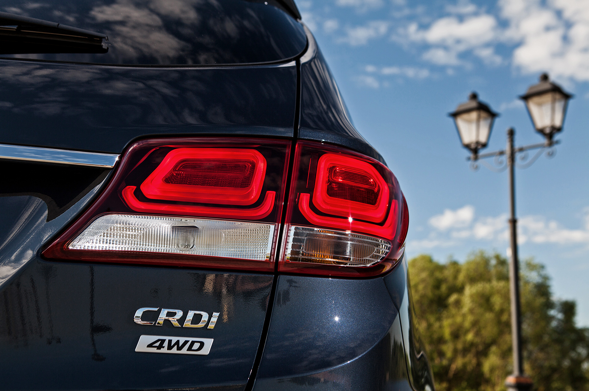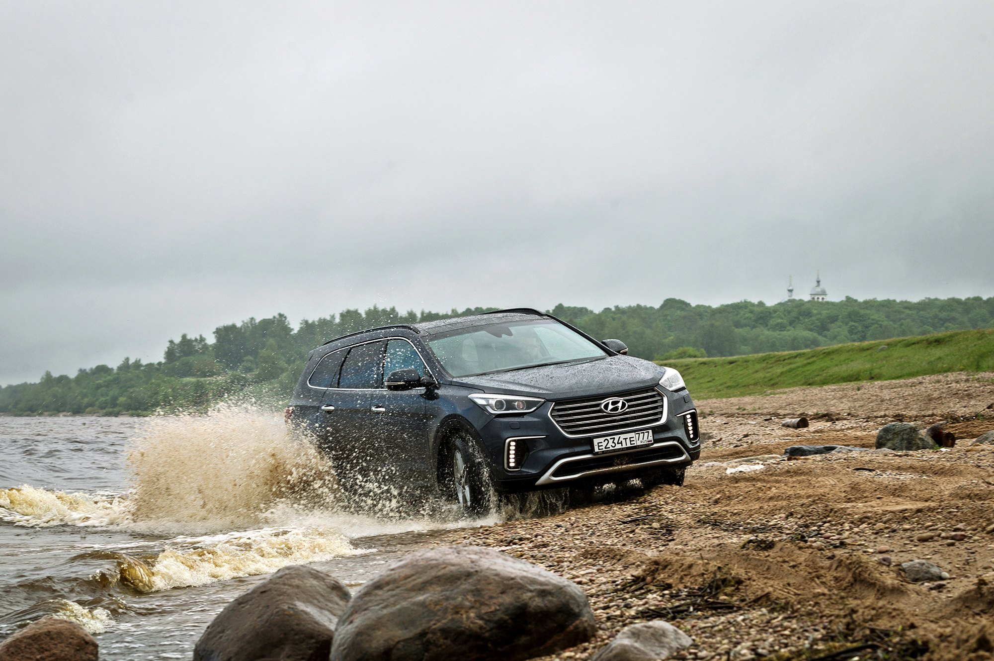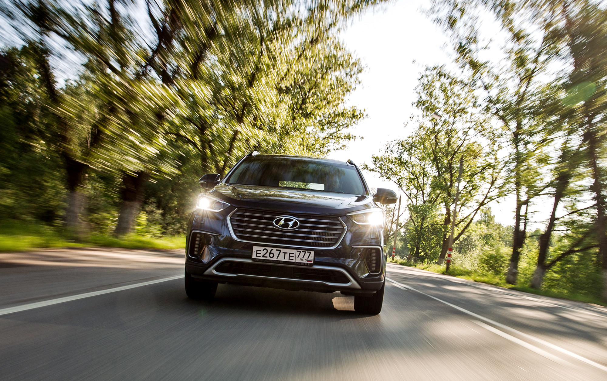 Дороги Новгородской области, где представляли новинку, изобилуют поворотами и разбитыми участками, которые корейские автомобили в целом и дореформенный Grand Santa Fe в частности, как правило, не жалуют. Однако в ходе рестайлинга увеличена жесткость задних сайлент-блоков и стабилизатора поперечной устойчивости. Реакции на поворот руля понятнее, усилие на нём натуральнее — меньше приходится ехать «на глаз». Уменьшились крены, снизилась вертикальная раскачка, а главное — повысилась энергоёмкость подвески. Дорожные изъяны по-прежнему транслируются в салоне все до единого, но пробои теперь — явление редкое. Главное, не гнать: правило «больше скорость — меньше ям» на Grand не распространяется.