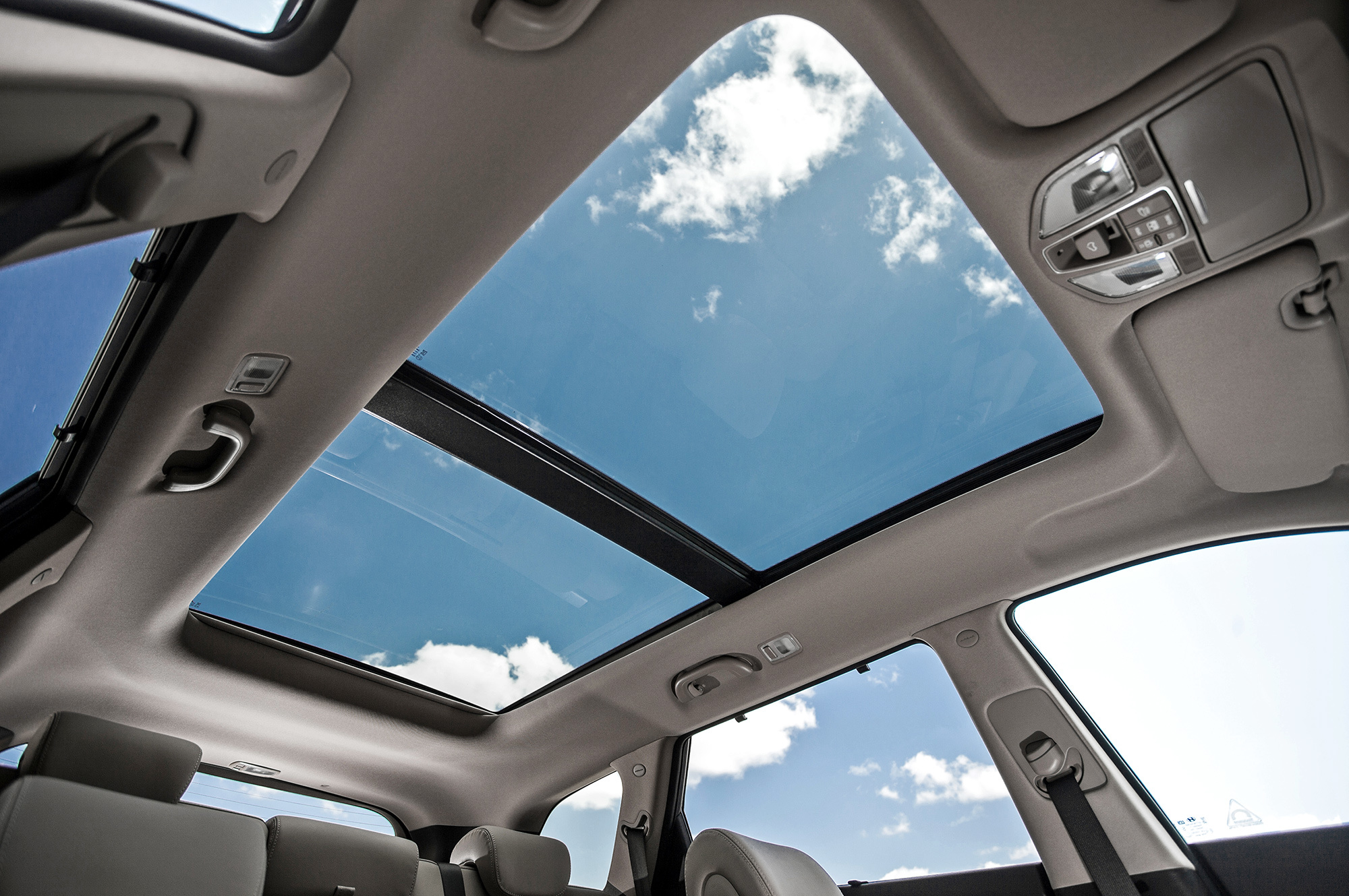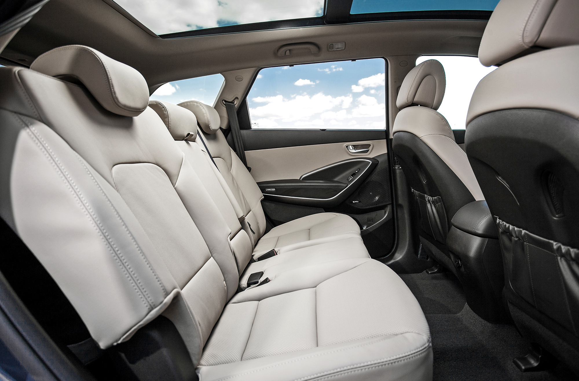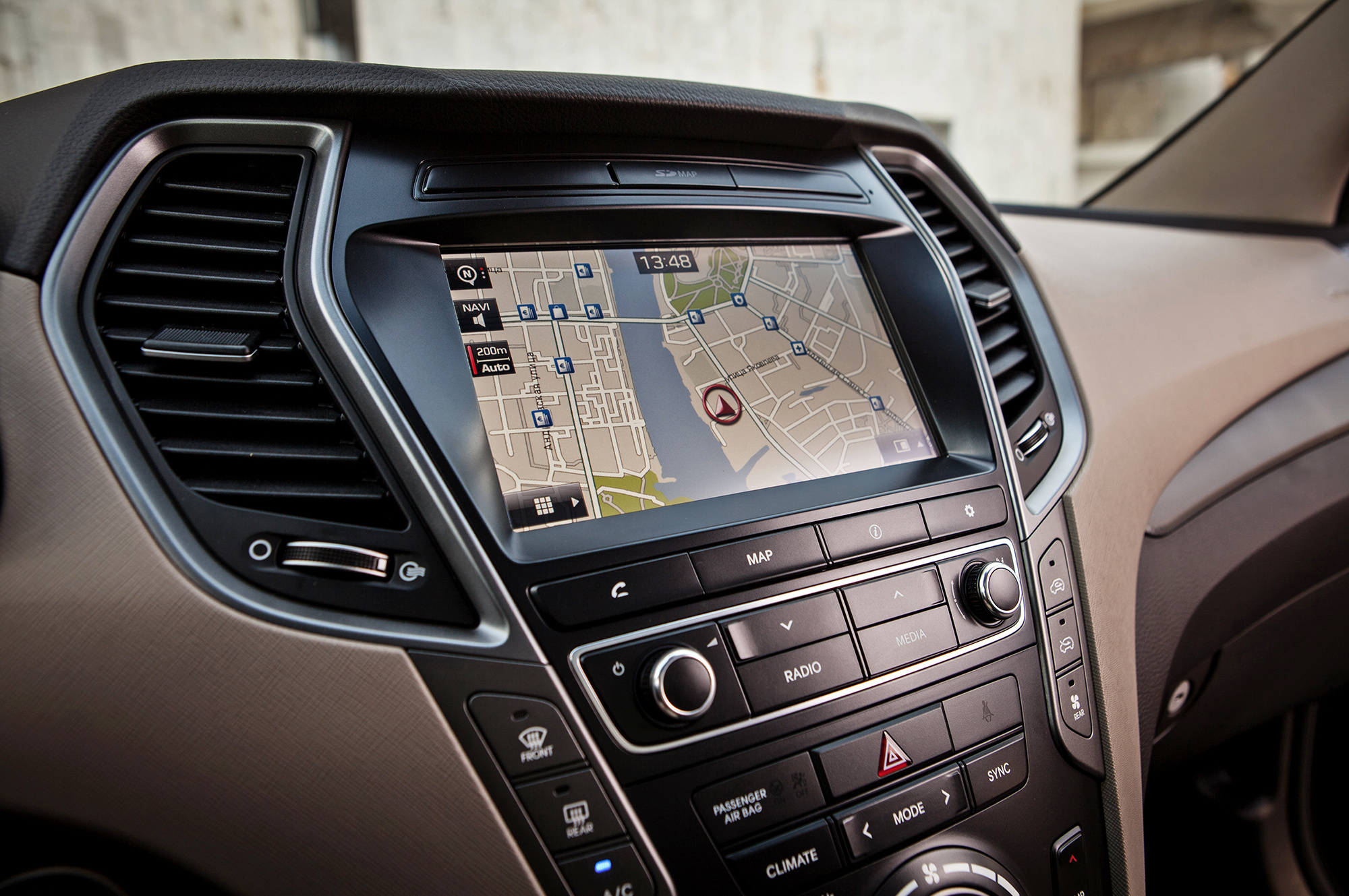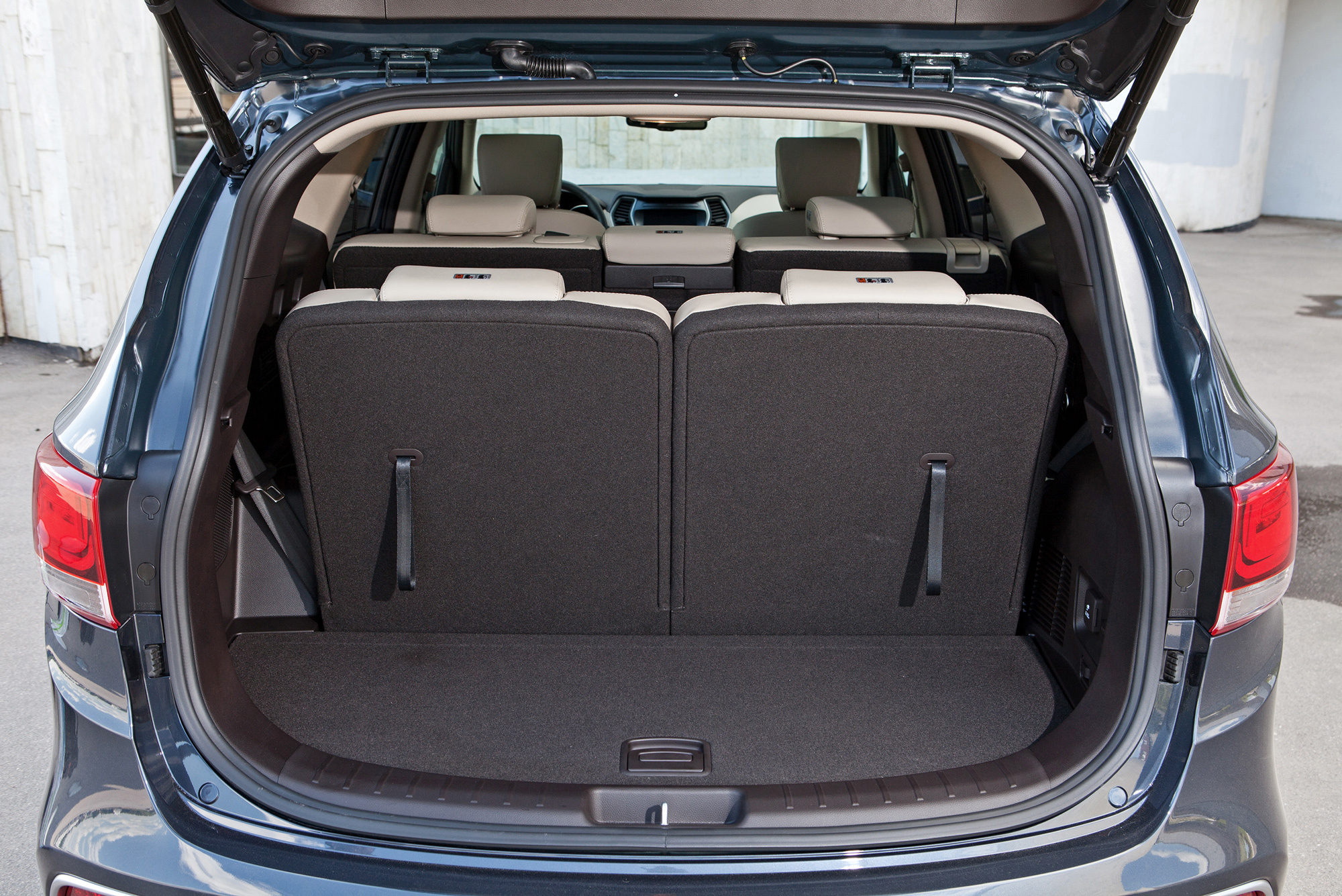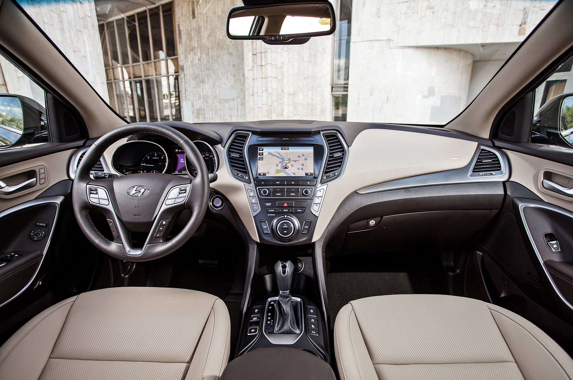Интерьер обновился так же, как в случае с пятиместным вариантом Santa Fe Premium: новые приборы, улучшенная обивка кресел и псевдоуглепластиковая накладка на передней панели. Центральный сенсорный экран топ-версии теперь восьмидюймовый — на дюйм больше прежнего. На него выводится картинка с квартета камер кругового обзора, достаточная для того, чтобы парковаться только по ней. А можно воспользоваться автопарковщиком. Есть ещё система автоматического торможения и адаптивный круиз-контроль. Последний работает на скоростях 8−180 км/ч: для старта после полной остановки надо нажать кнопку на руле или акселератор.