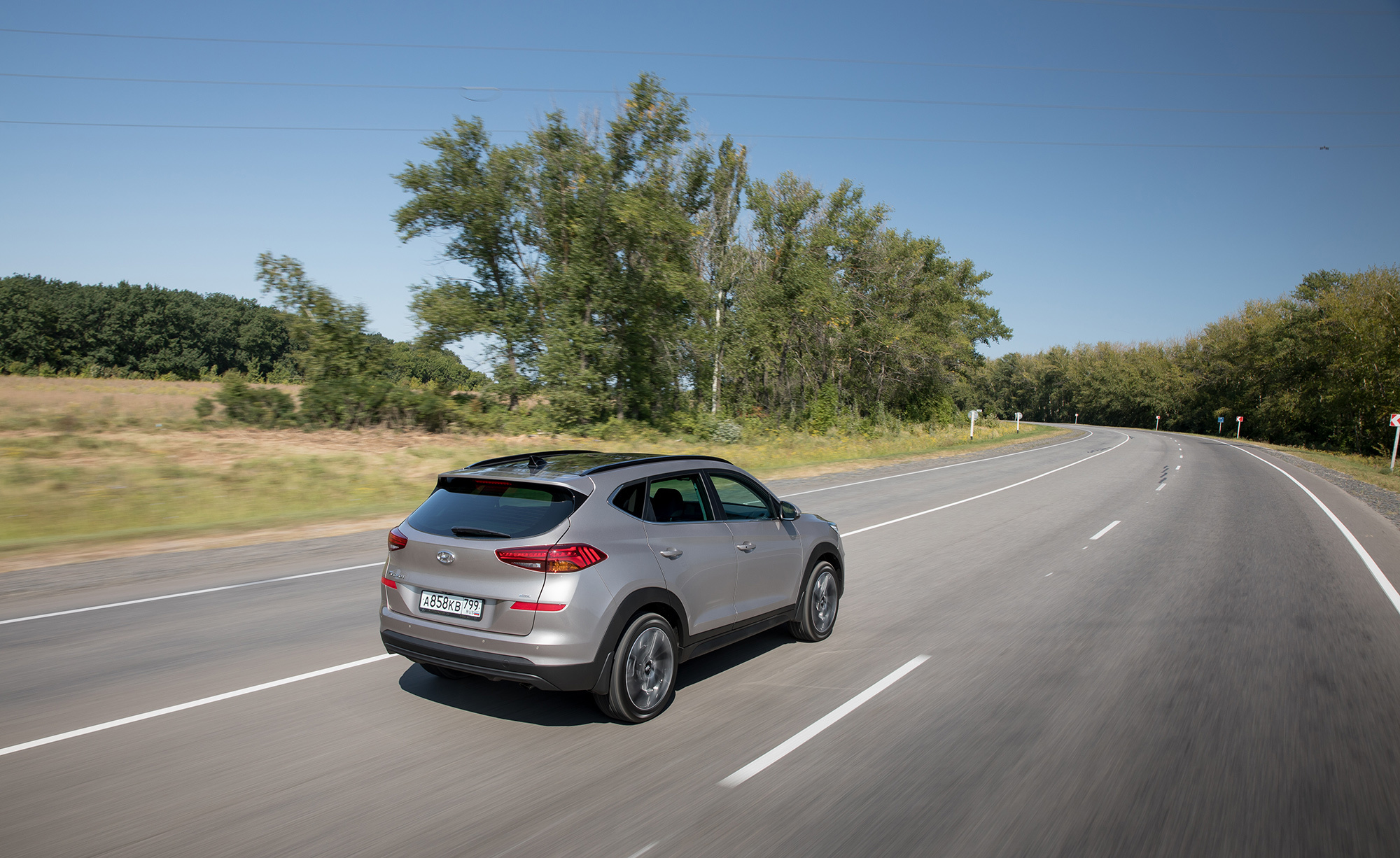 Tucson так же предпочитает гладкое шоссе, где кажется достаточно комфортным и хорошо слушается руля с синтетическим усилием. Однако на волнах проявляется склонность к раскачке, а стоит выехать на разбитую дорогу — вылезает легковая сущность шасси. На средних неровностях возникает сильная тряска. К тому же подвеска работает с явным звуковым сопровождением, а крупные ухабы переваривает на пределе энергоёмкости. Вот, по идее, над чем стоило работать в первую очередь — ан нет.