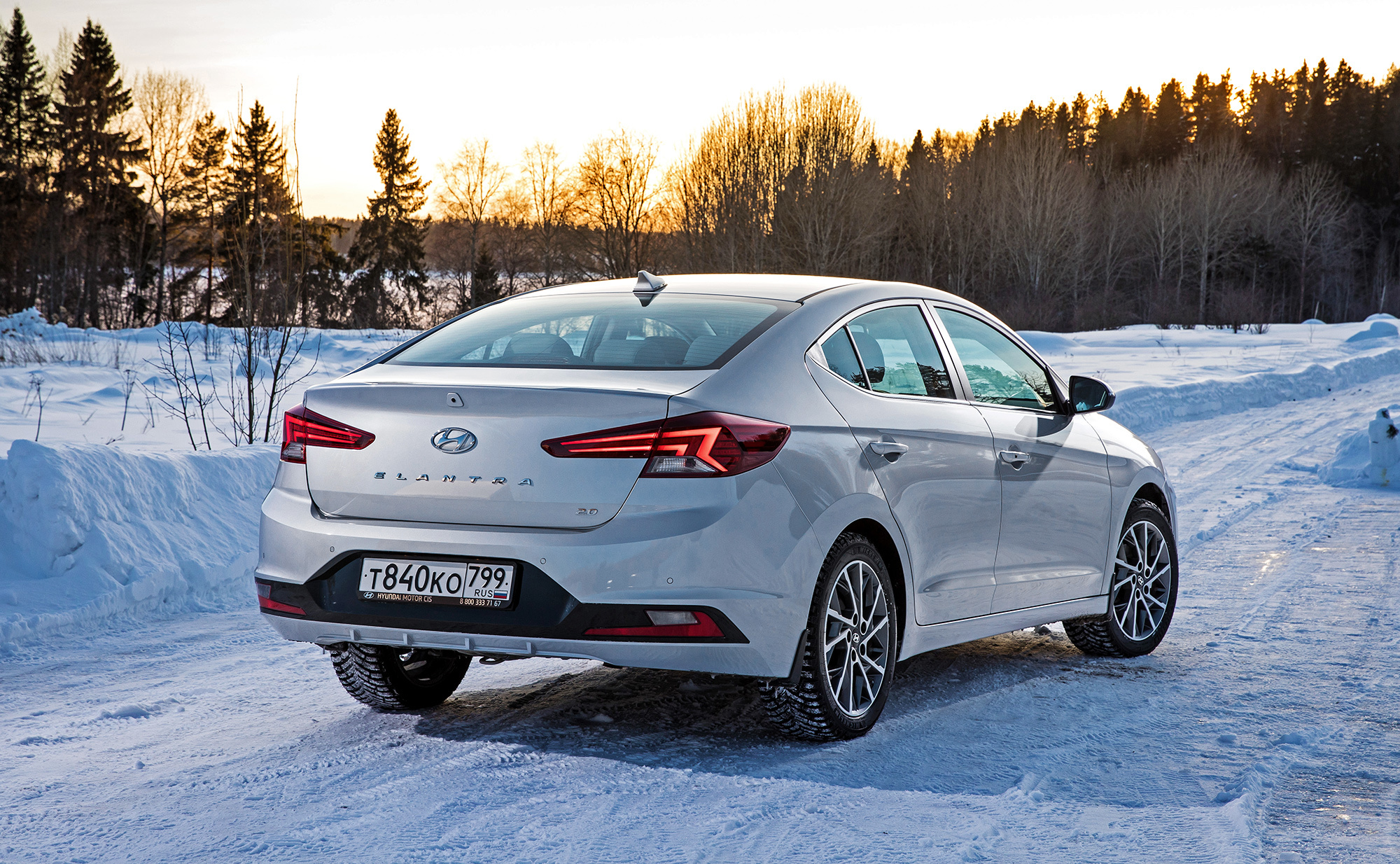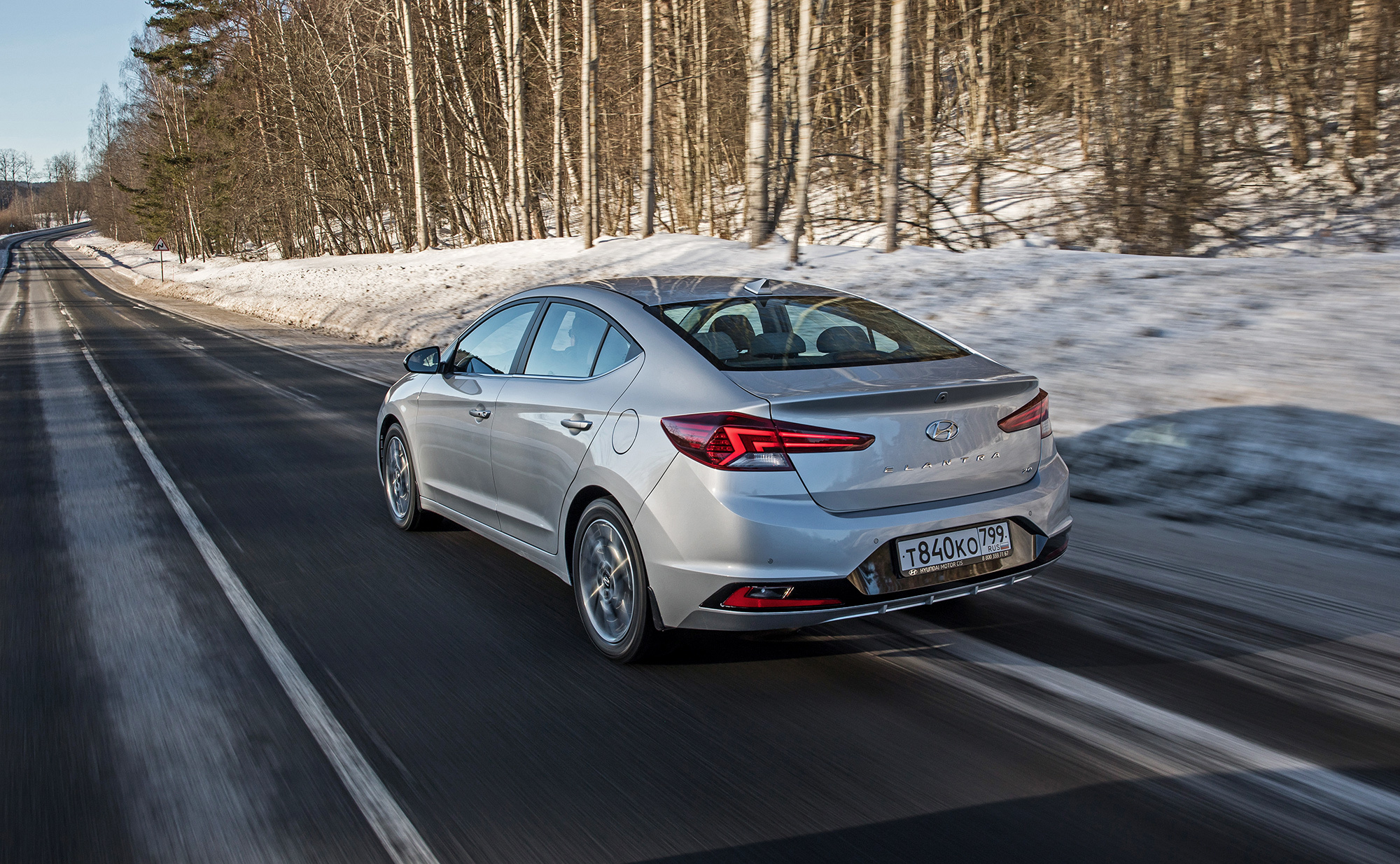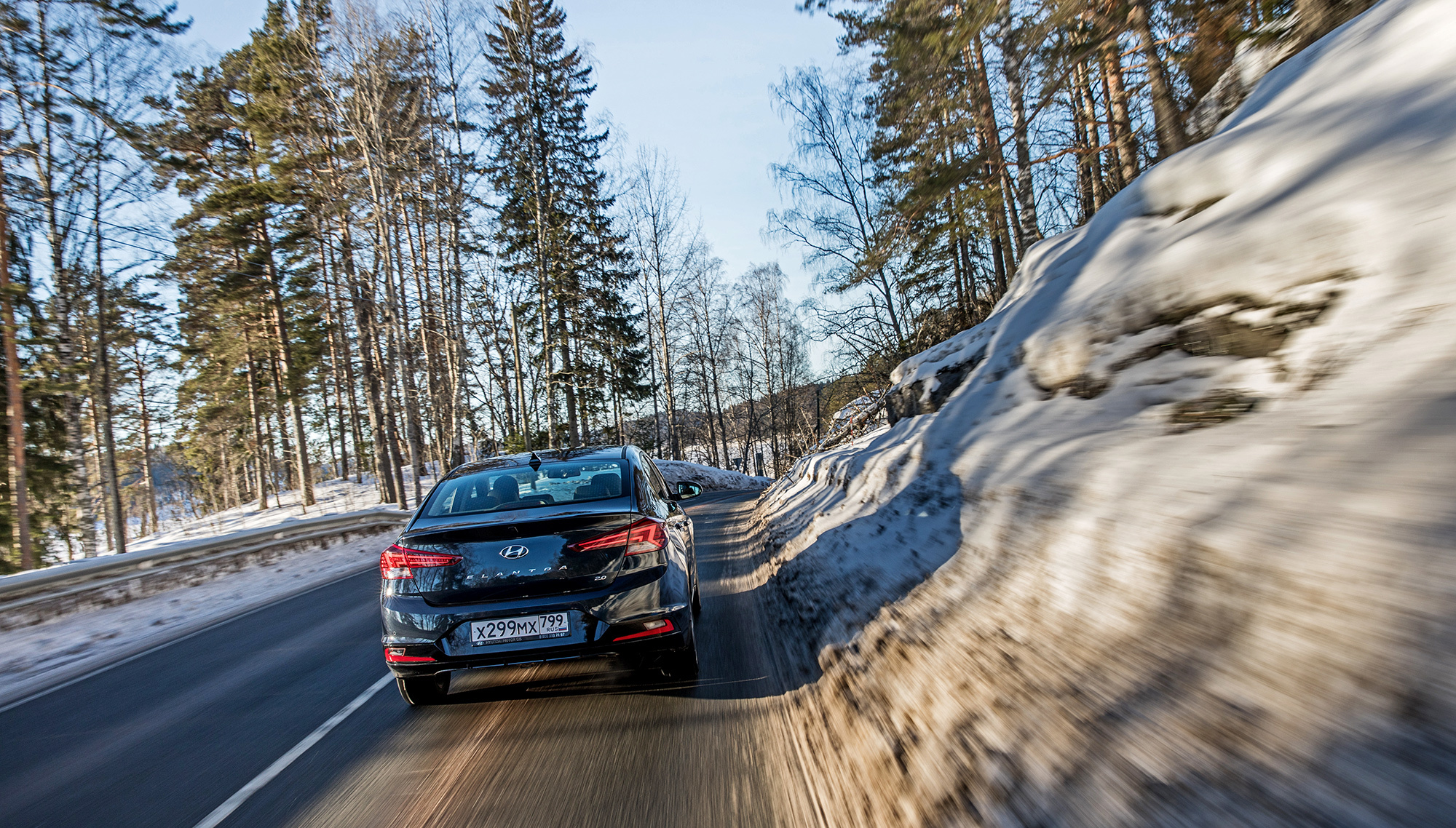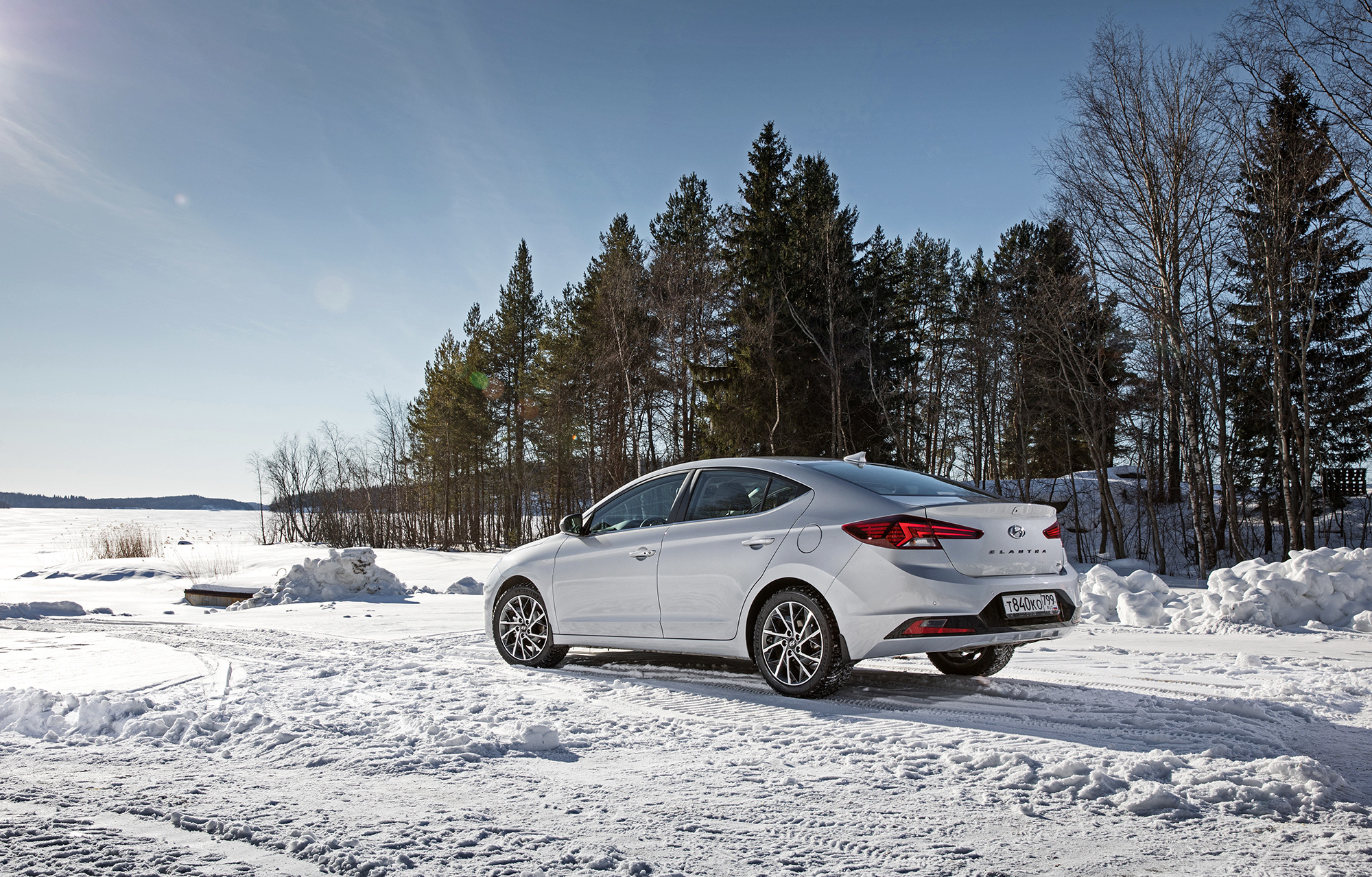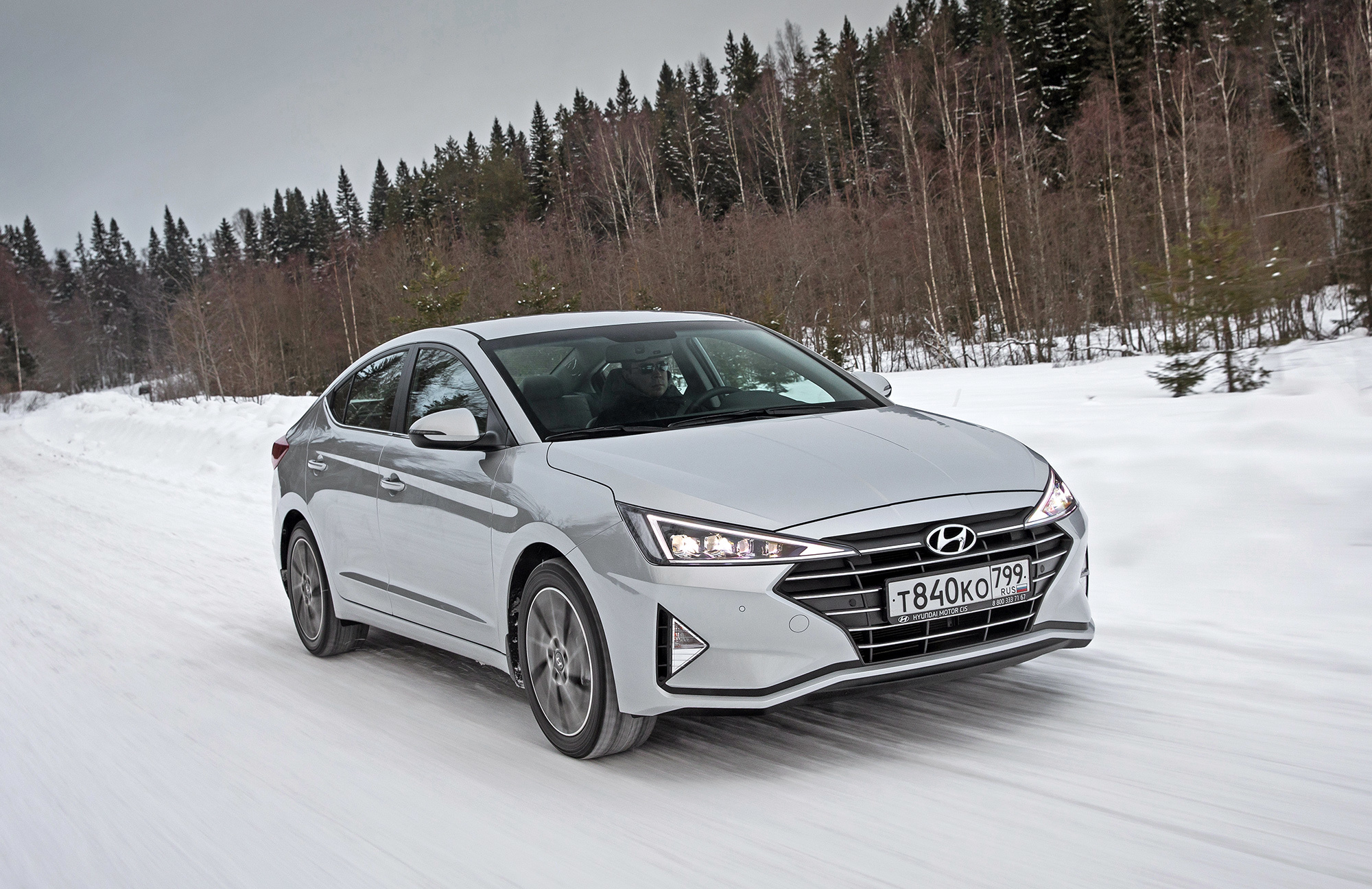 Хорошая управляемость не испорчена. Под сброс газа по-прежнему нетрудно спровоцировать занос, который тотчас пресекается системой стабилизации. Мы как-то писали, что она полностью отключается. В зимних условиях заметно, что она лишь переходит в режиме ожидания после долгого нажатия кнопки и оживает по достижении определённого угла, корректируя машину выборочным прикусыванием тормозов. Их эффективность, к слову, понравилась в штатных режимах, хотя Elantra и требует адаптации. С непривычки слегка перетормаживаешь из-за отсутствия у педали тормоза свободного хода...