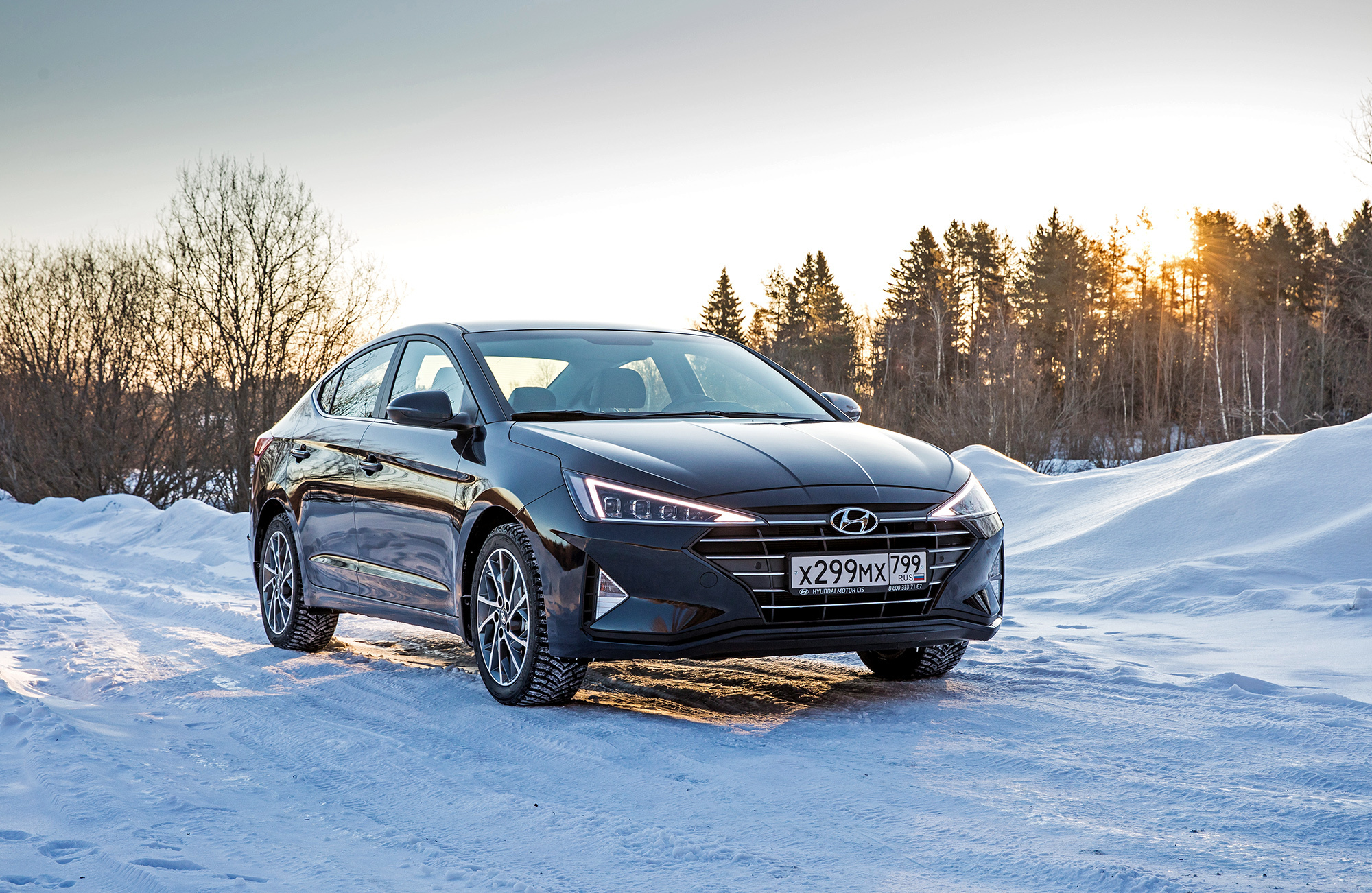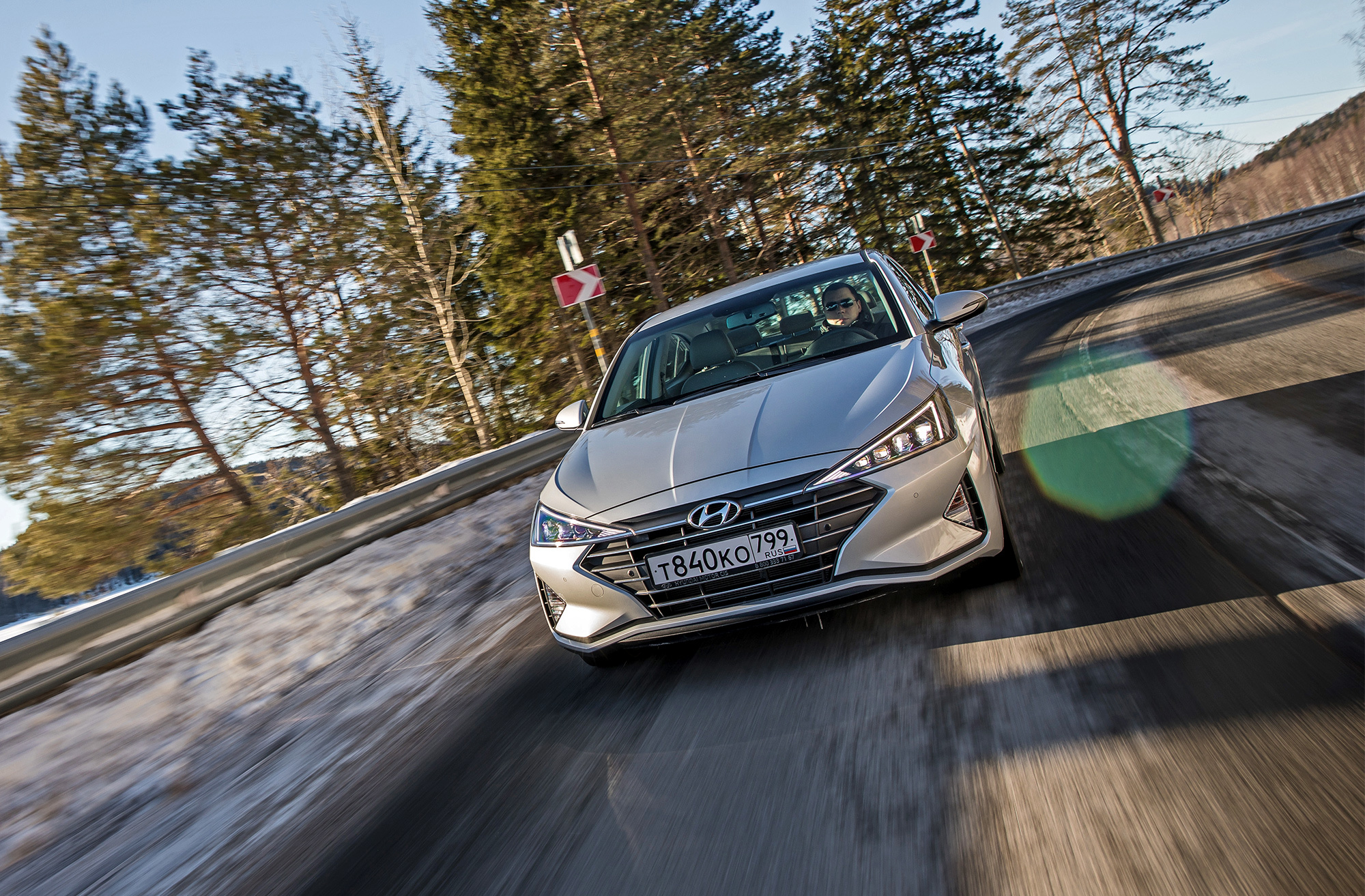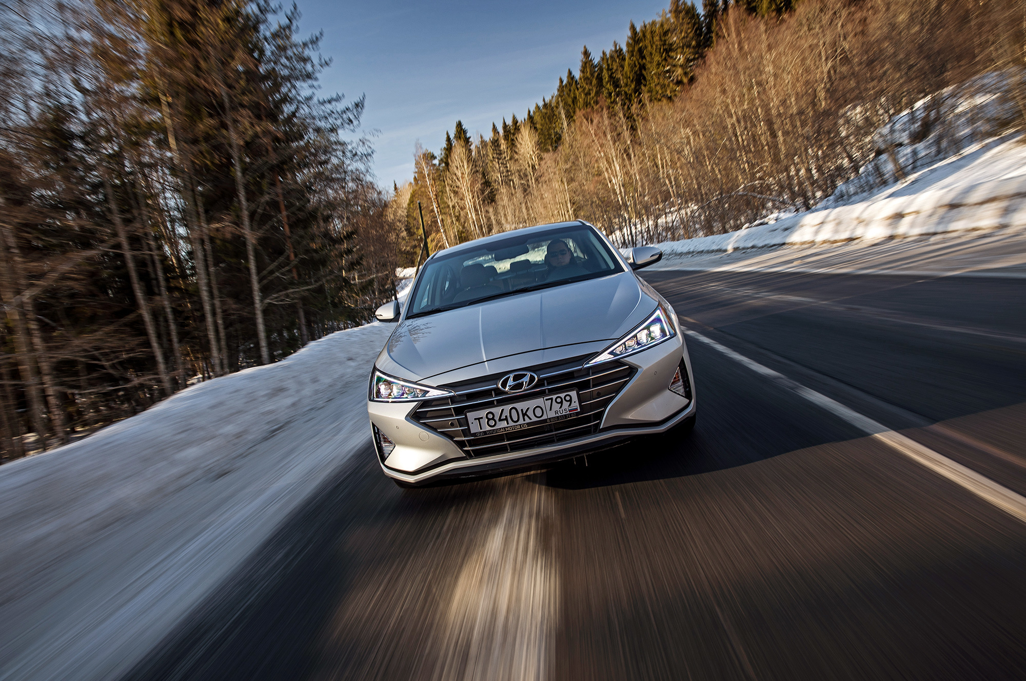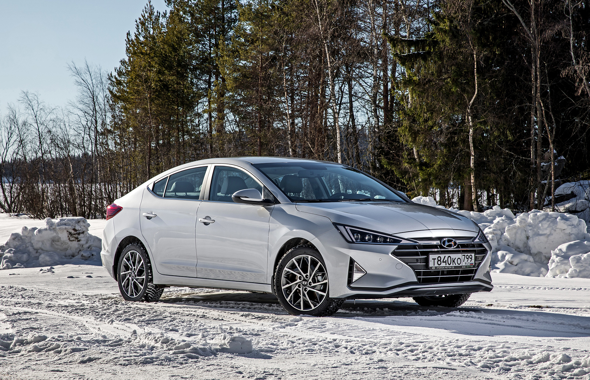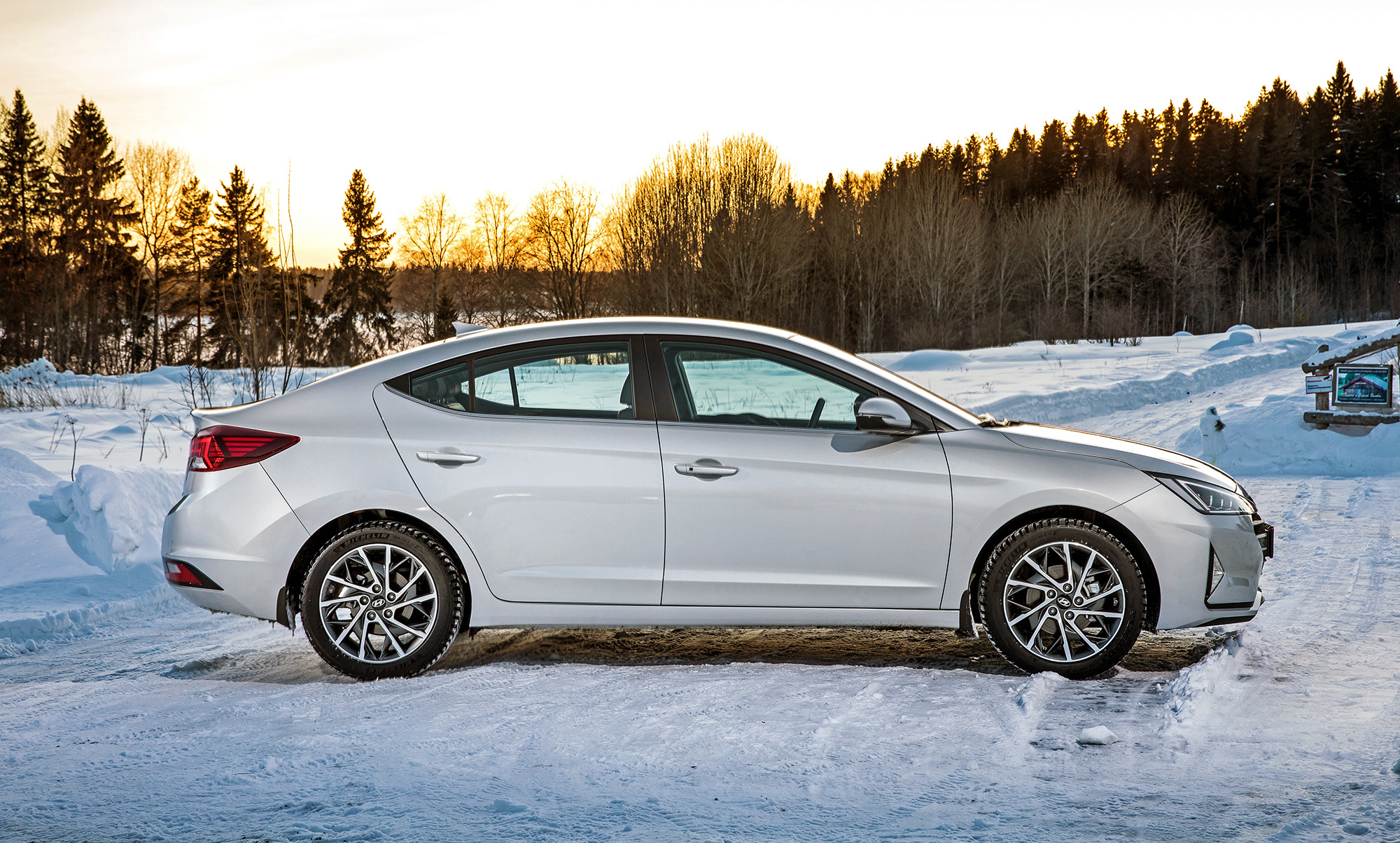Хорошая управляемость не испорчена. Под сброс газа по-прежнему нетрудно спровоцировать занос, который тотчас пресекается системой стабилизации. Мы как-то писали, что она полностью отключается. В зимних условиях заметно, что она лишь переходит в режиме ожидания после долгого нажатия кнопки и оживает по достижении определённого угла, корректируя машину выборочным прикусыванием тормозов. Их эффективность, к слову, понравилась в штатных режимах, хотя Elantra и требует адаптации. С непривычки слегка перетормаживаешь из-за отсутствия у педали тормоза свободного хода...
