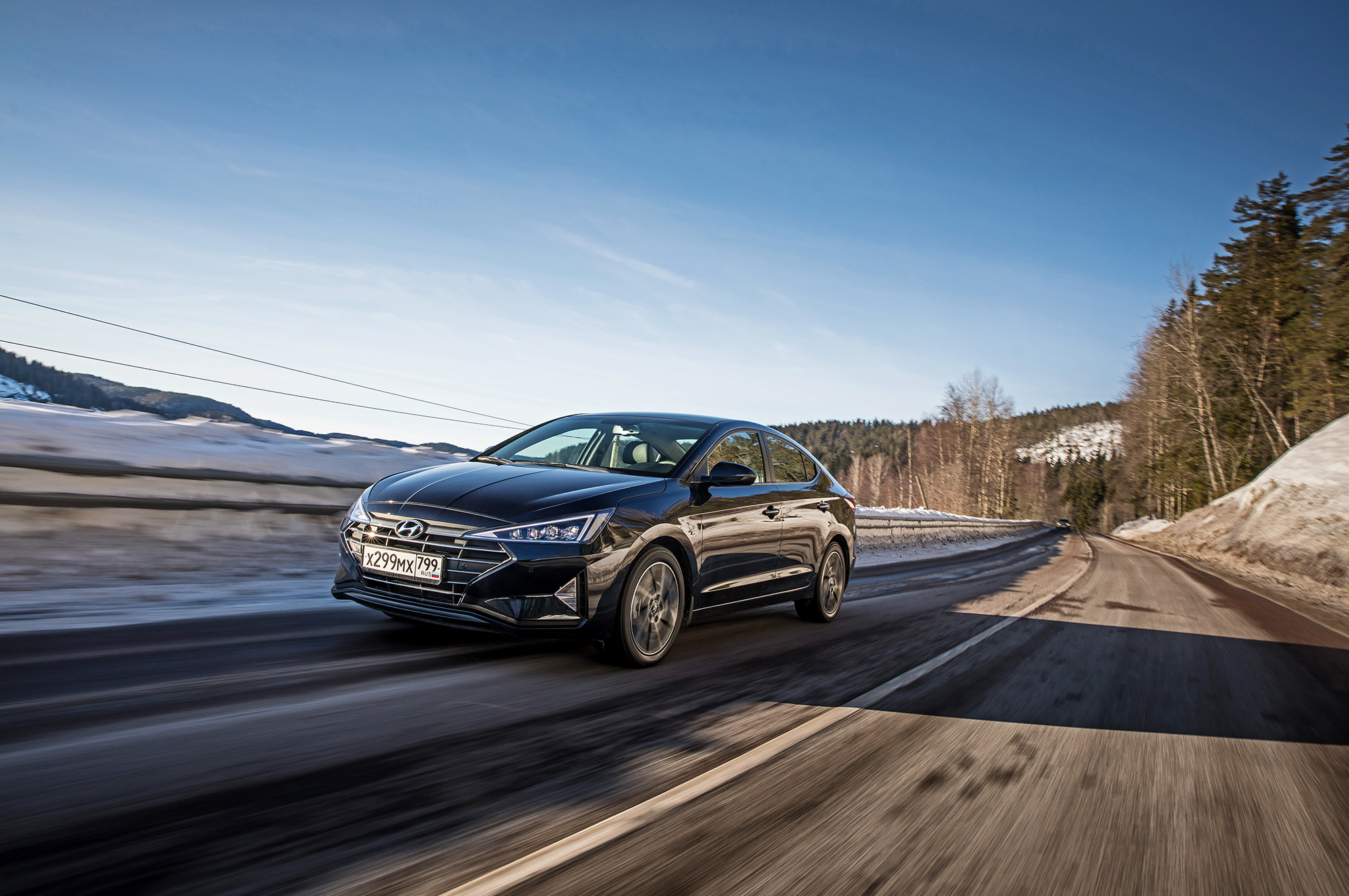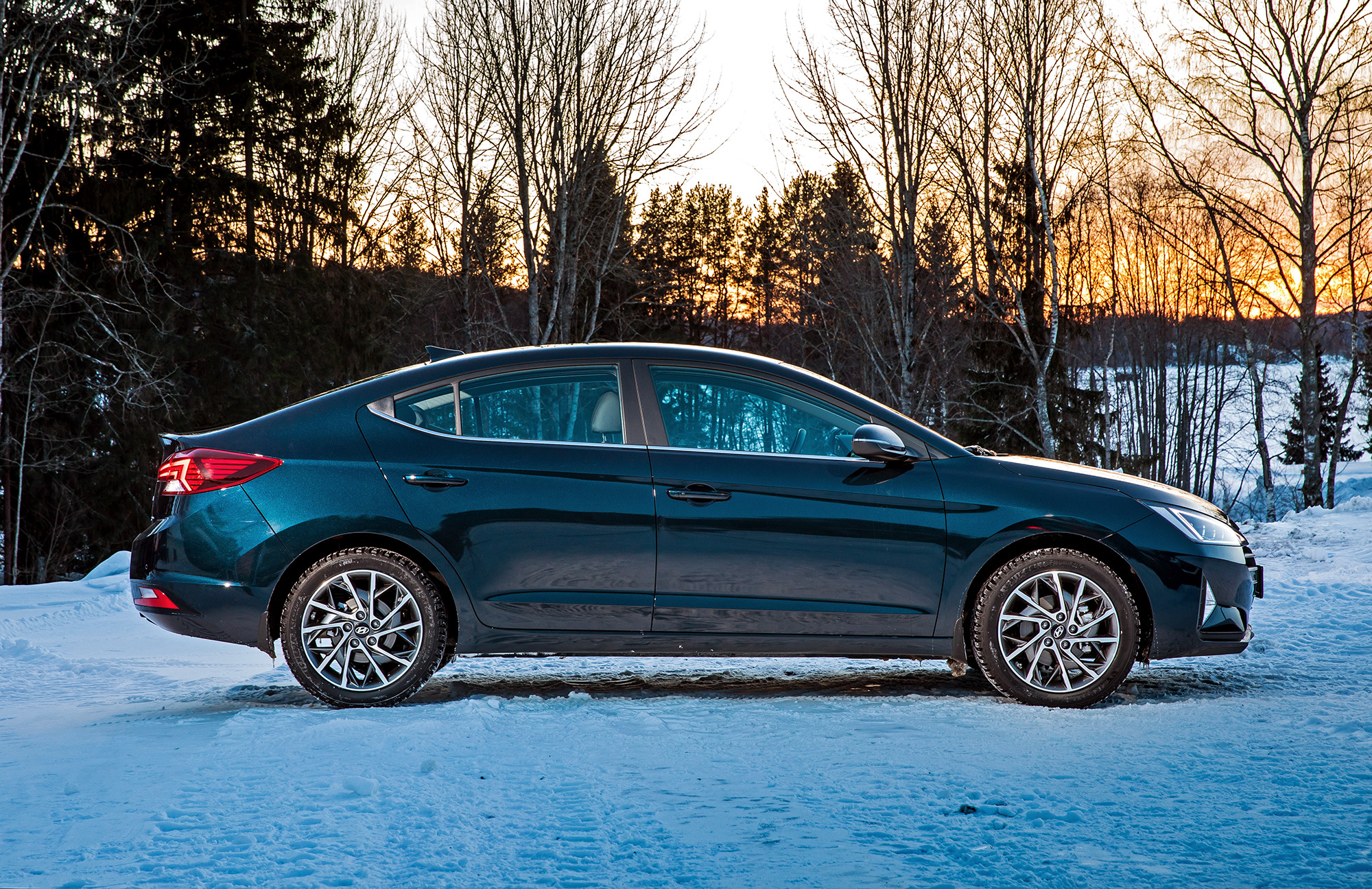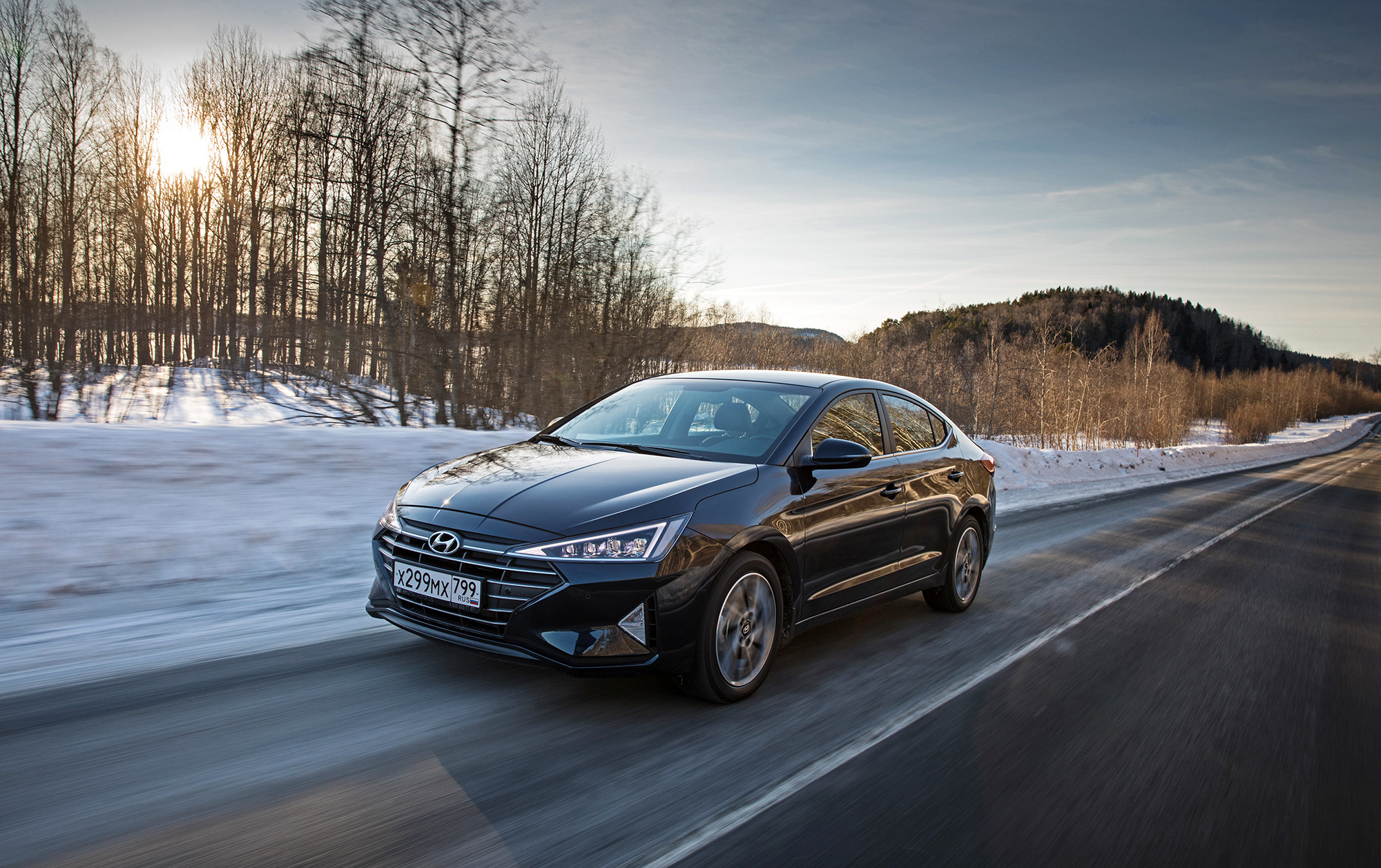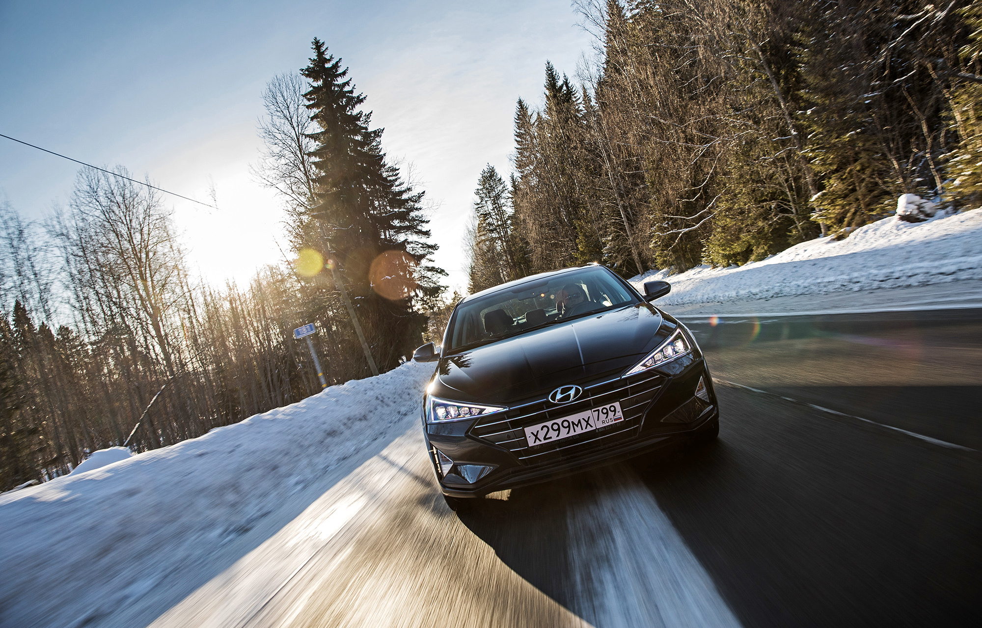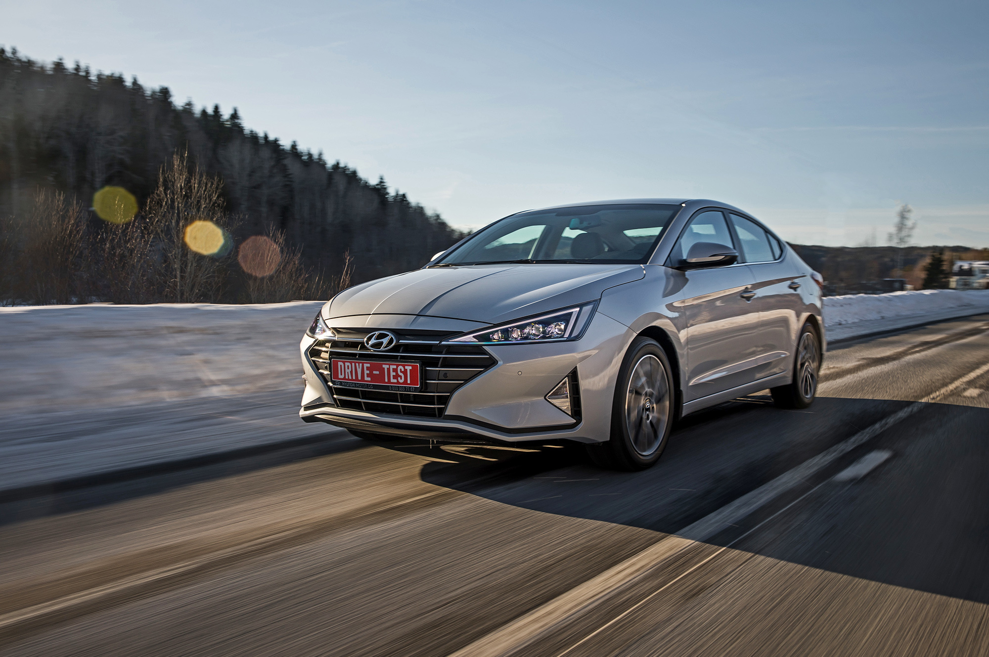 Хорошая управляемость не испорчена. Под сброс газа по-прежнему нетрудно спровоцировать занос, который тотчас пресекается системой стабилизации. Мы как-то писали, что она полностью отключается. В зимних условиях заметно, что она лишь переходит в режиме ожидания после долгого нажатия кнопки и оживает по достижении определённого угла, корректируя машину выборочным прикусыванием тормозов. Их эффективность, к слову, понравилась в штатных режимах, хотя Elantra и требует адаптации. С непривычки слегка перетормаживаешь из-за отсутствия у педали тормоза свободного хода...