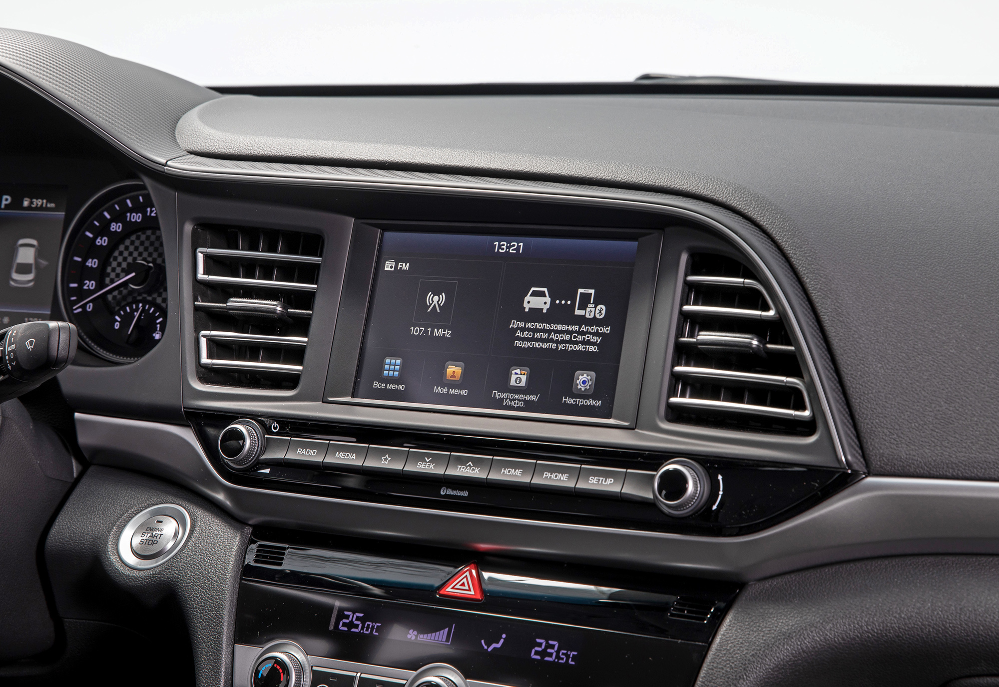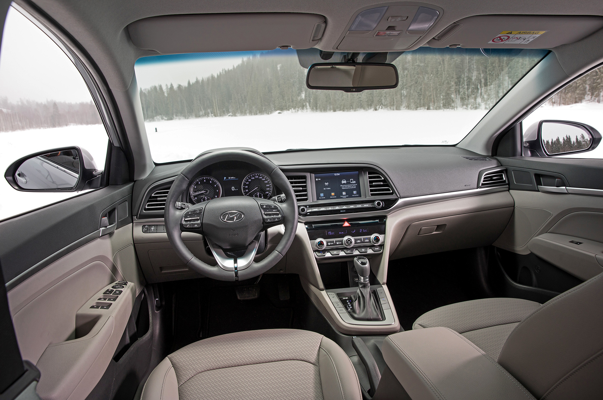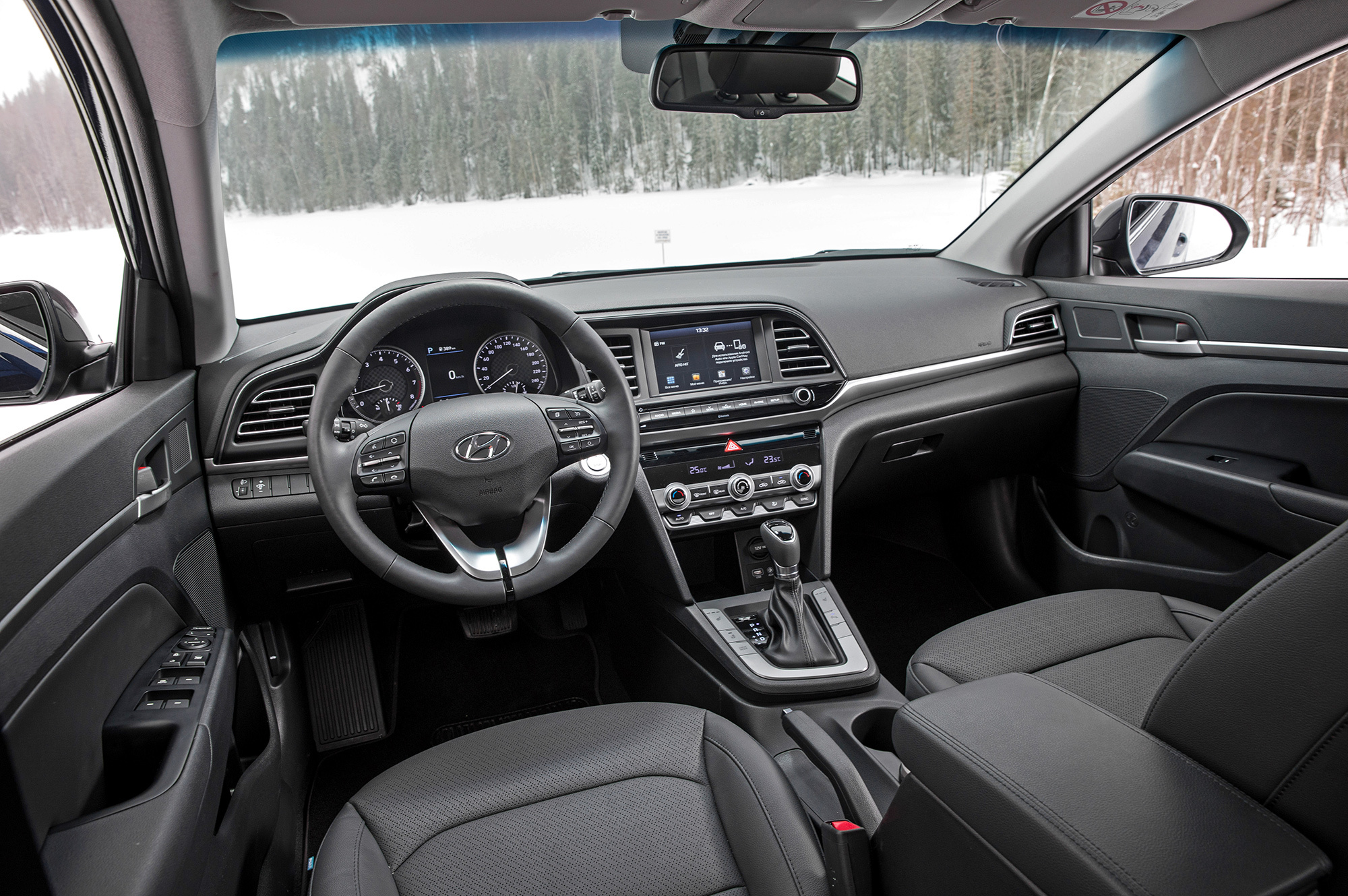 В салоне главным образом обновились руль и блок климат-контроля. Отредактированы и комплектации. Их по-прежнему четыре, но название топ-версии изменено с Family на Elegance. В базовый Start включён круиз-контроль, а в следующий за ним Base добавлена мультимедийная система с камерой заднего вида, которые до обновления полагались самой дорогой Элантре. Диагональ сенсорного дисплея выросла на два дюйма до семи. Собственной навигации нет, но благодаря поддержке Apple CarPlay и Android Auto я на маршруте из Питера в Сортавалу прямо на экране использую Google Maps.