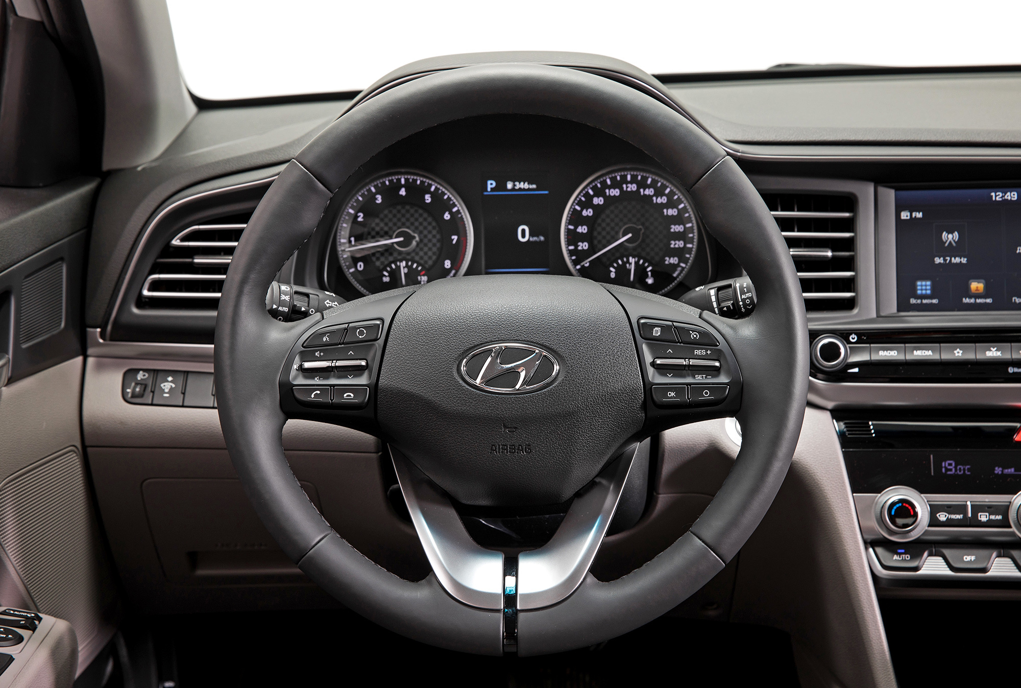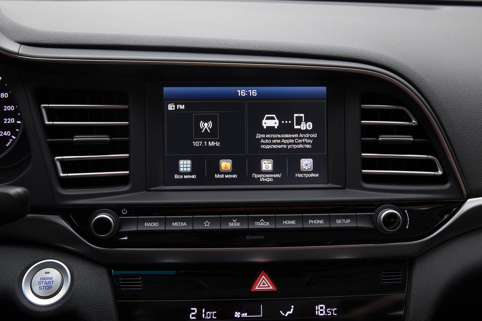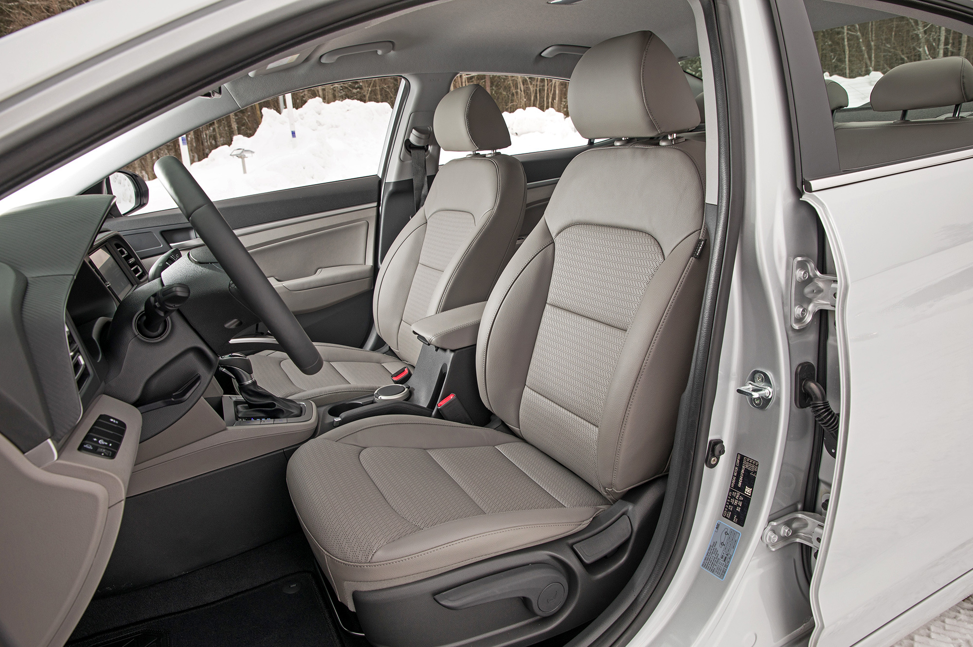 В салоне главным образом обновились руль и блок климат-контроля. Отредактированы и комплектации. Их по-прежнему четыре, но название топ-версии изменено с Family на Elegance. В базовый Start включён круиз-контроль, а в следующий за ним Base добавлена мультимедийная система с камерой заднего вида, которые до обновления полагались самой дорогой Элантре. Диагональ сенсорного дисплея выросла на два дюйма до семи. Собственной навигации нет, но благодаря поддержке Apple CarPlay и Android Auto я на маршруте из Питера в Сортавалу прямо на экране использую Google Maps.