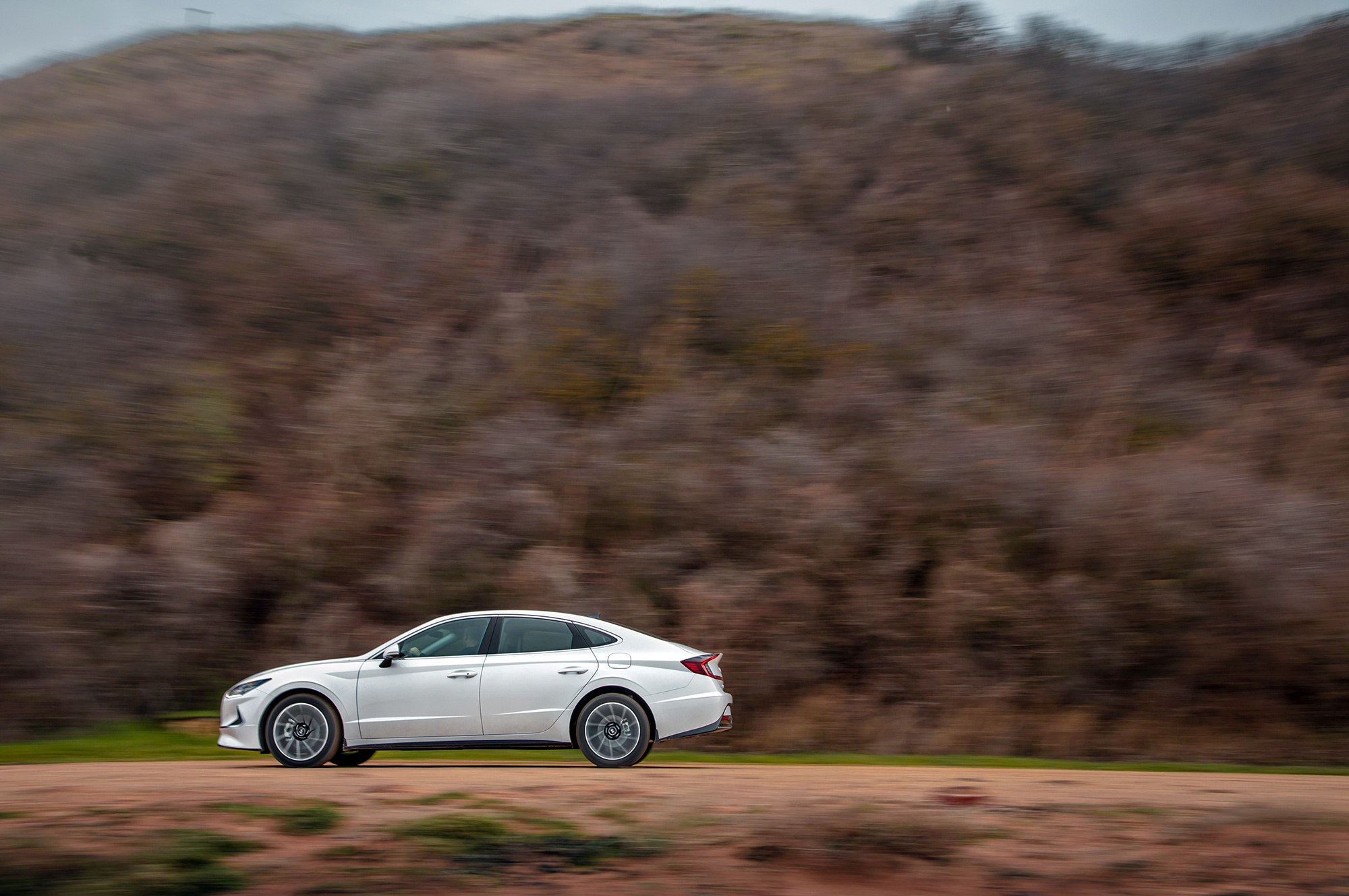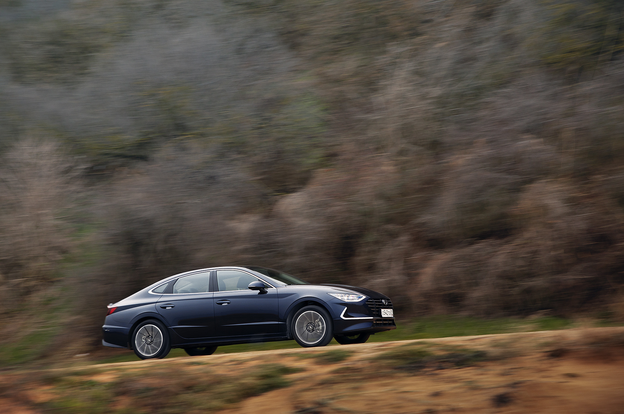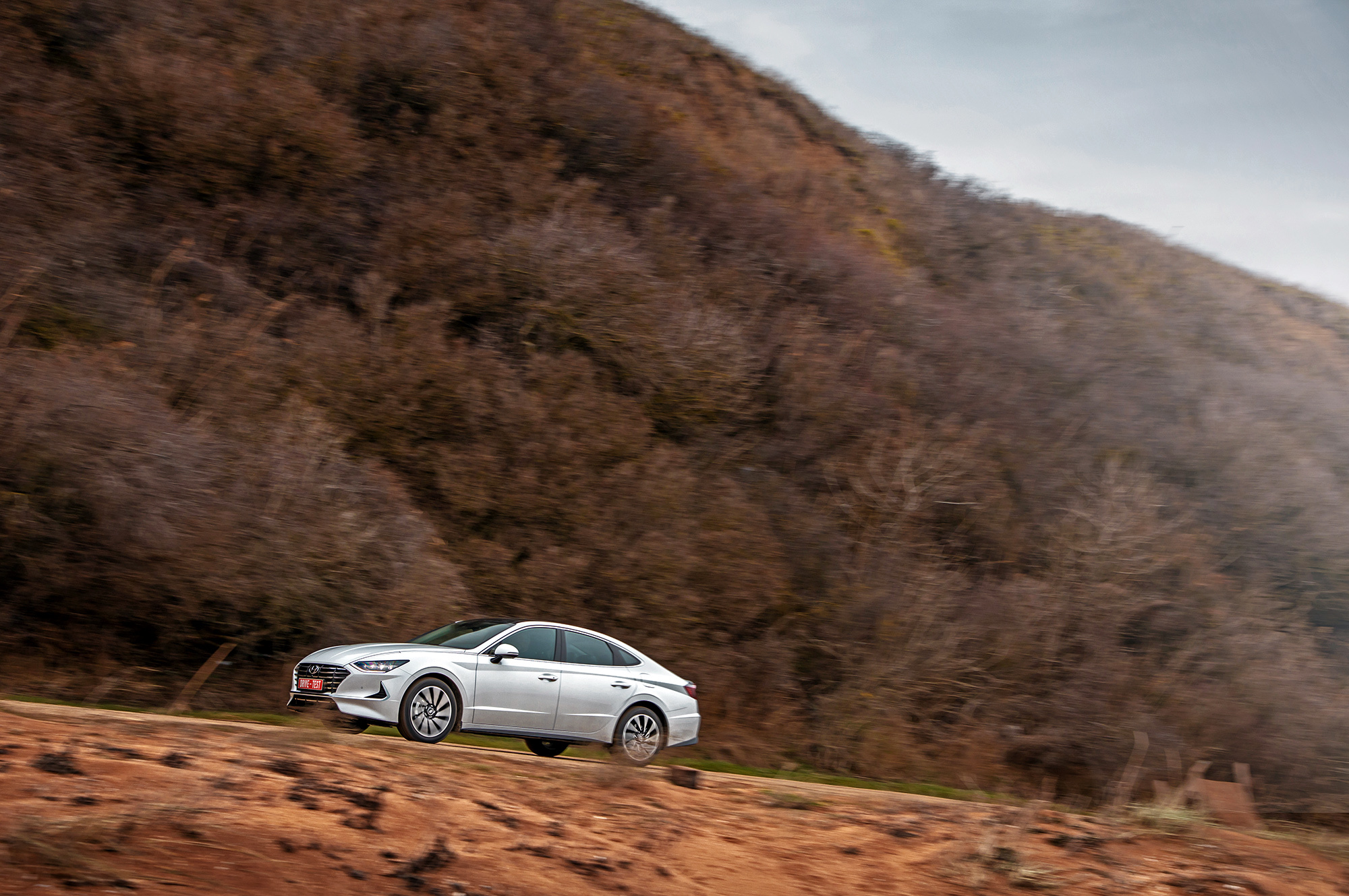 Шасси явно попытались придать спортивности. В первую очередь это заметно по рулю, лишившемуся обычной корейской легковесности во всех режимах. На прямой Sonata стабильна, а при малых отклонениях баранка наливается правильным возвращающим усилием. Но виражи даются без кайфа: повернёшь баранку больше, чем градусов на девяносто, и на ней остаётся только фальшивое фоновое усилие. Острота реакций ― средняя. И даже умеренность кренов и недостаточной поворачиваемости не провоцируют пройти следующий поворот ещё быстрее: пилотаж Сонате не по нраву.