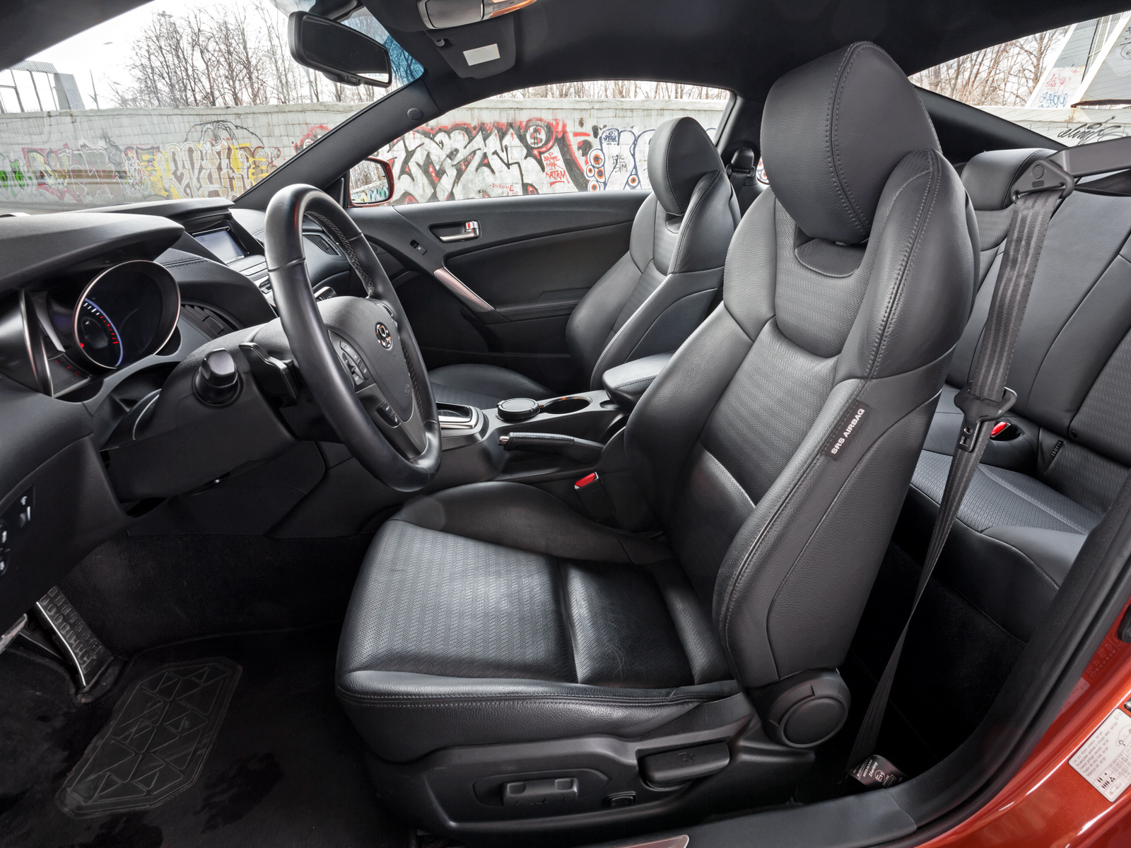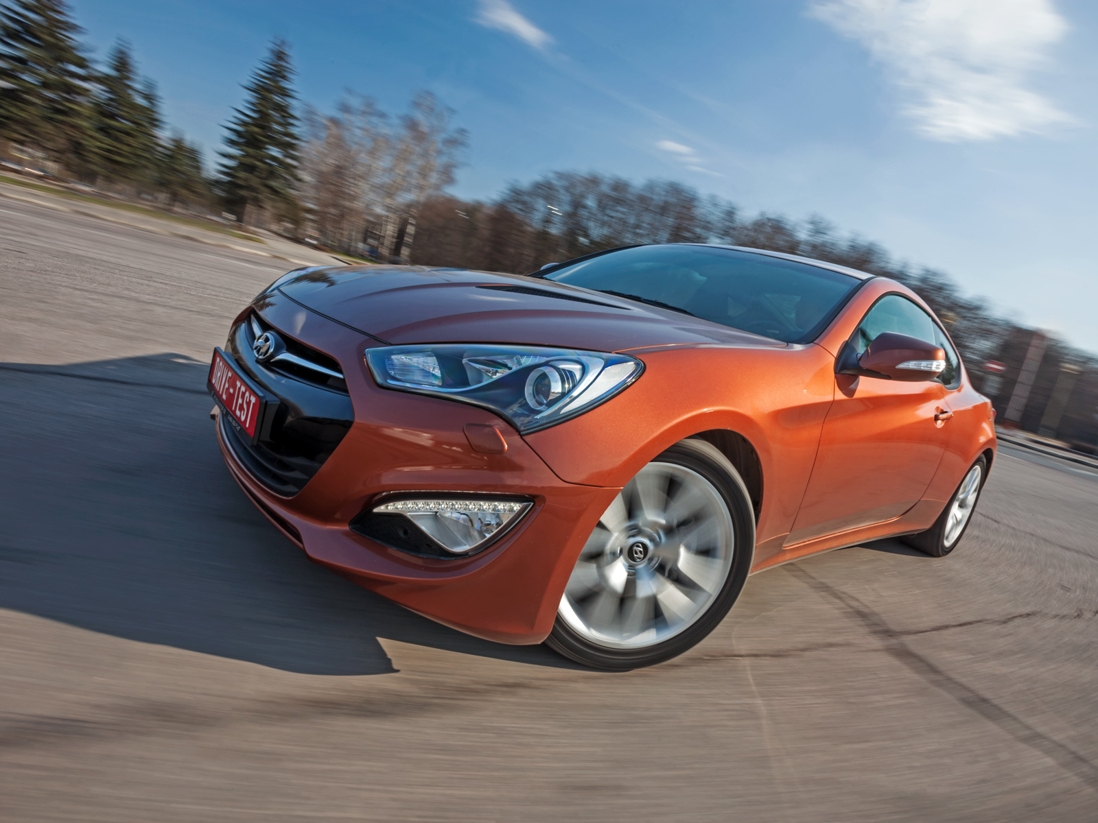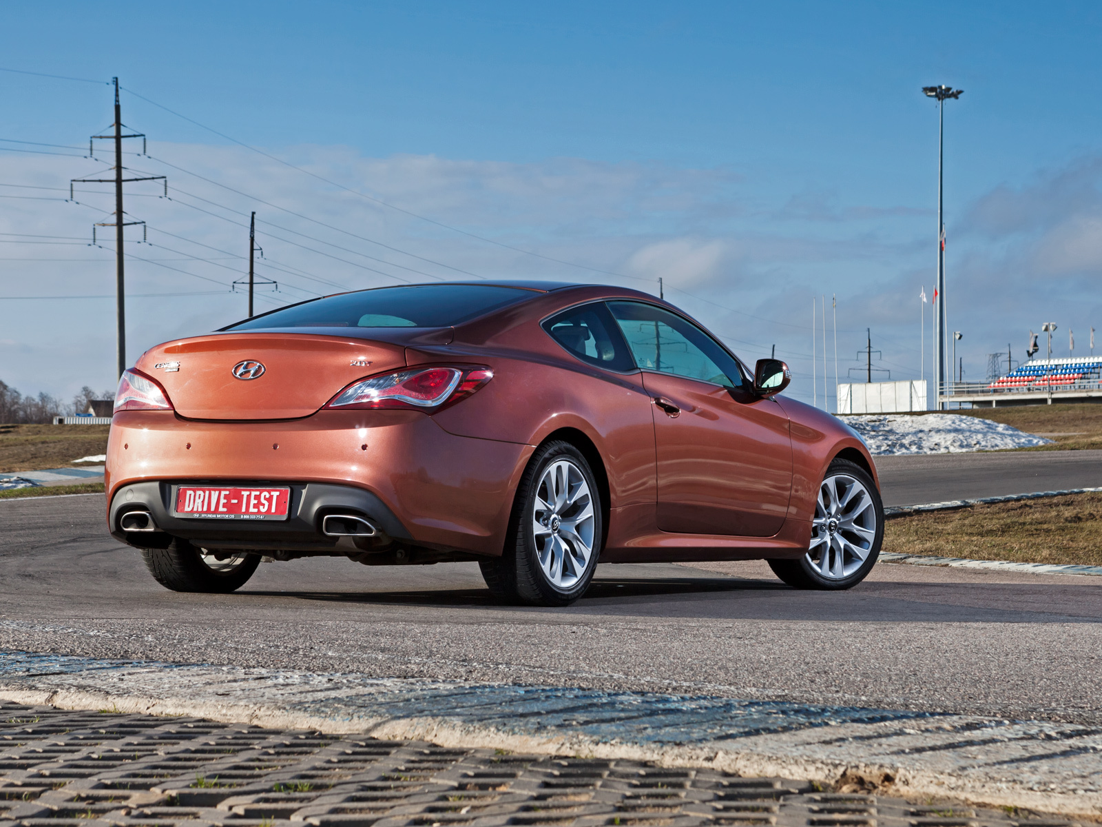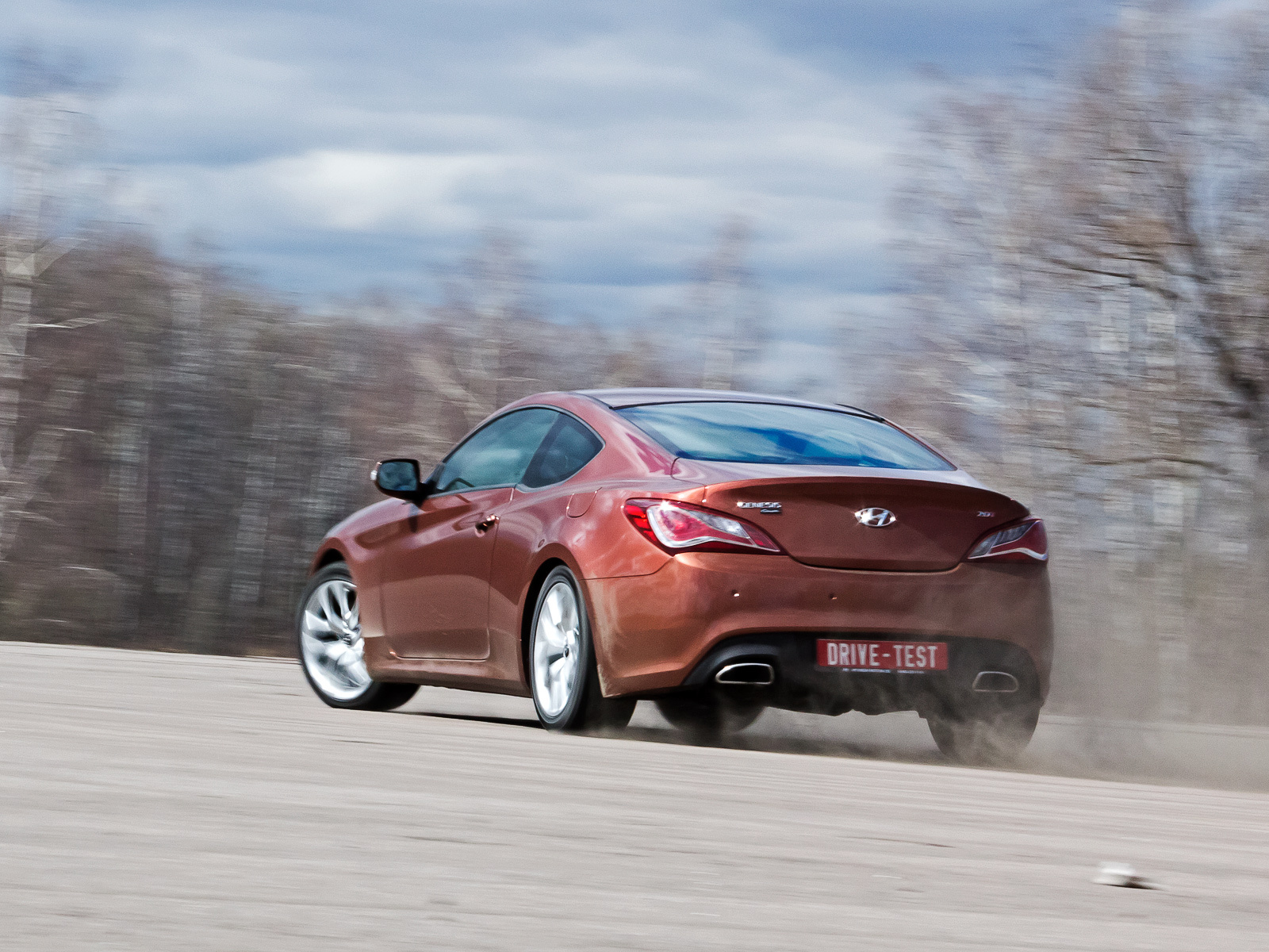 Genesis Coupe заметно отстаёт от Тойоты. Но не потому, что на картинговой трассе ему тесновато. Причина иная: водителя не покидает ощущение, будто все системы автомобиля функционируют как бы сами по себе. К примеру, рулевой привод здесь «мёртвый»: в его густом усилии нет ни капли достоверной информации. Ко всему прочему баранка откровенно тяжела и на стоянке, и на ходу. А там, где её густой фон хоть как-то оправдан (в крутых поворотах), следует провал по усилию.