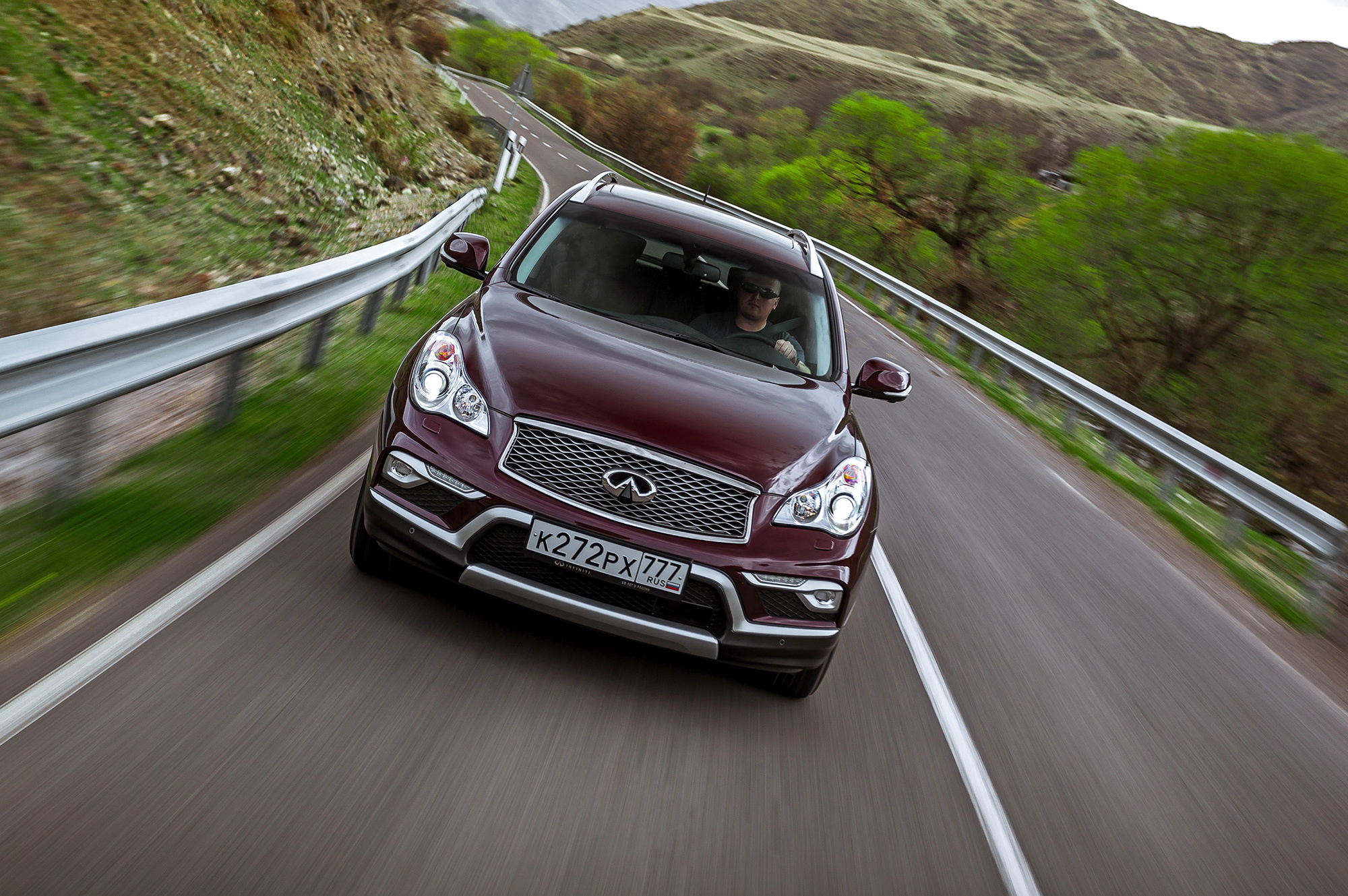 Почему тест-драйв проходит в Грузии? Совсем недавно этот вопрос звучал глупо, ведь лучшего места для презентации обновлённой машины было не сыскать — сама страна переживала рестайлинг. Её стремлением улучшить жизнь, добиться свободы и честности на всех уровнях заражались, кажется, даже автомобили. Теперь команда Саакашвили уехала в Одессу, Грузия притихла, исчезла из новостных лент, и фамилию нынешнего президента мне подсказывает энциклопедия (Маргвелашвили). «Здесь дороги наподобие российских, ну и природа», — обосновывают выбор локации менеджеры Infiniti. У меня своя версия: в республике случился фейслифтинг, а государства следующего поколения надо подождать, и с кроссовером Infiniti QX50 — ровно та же история.