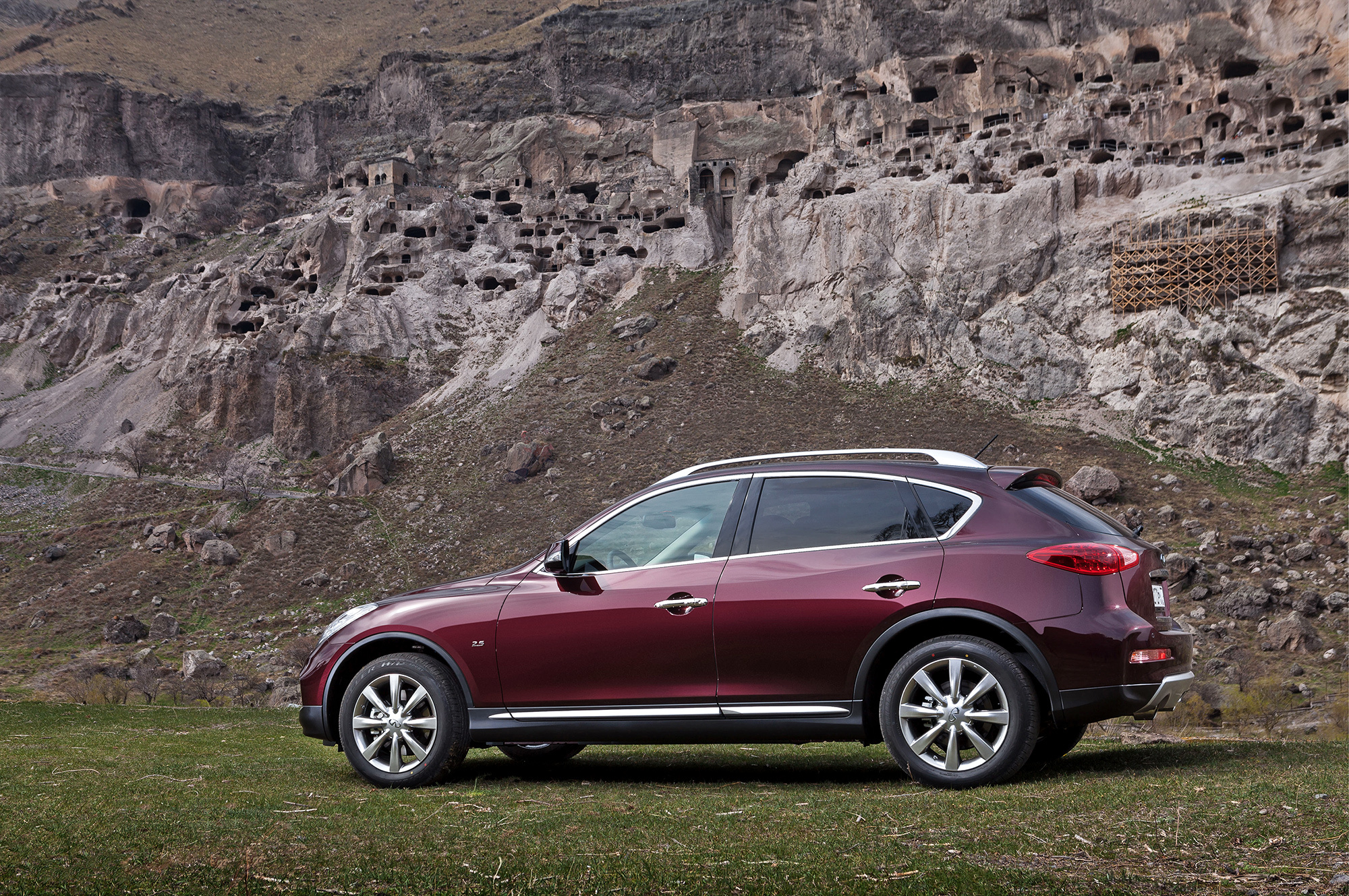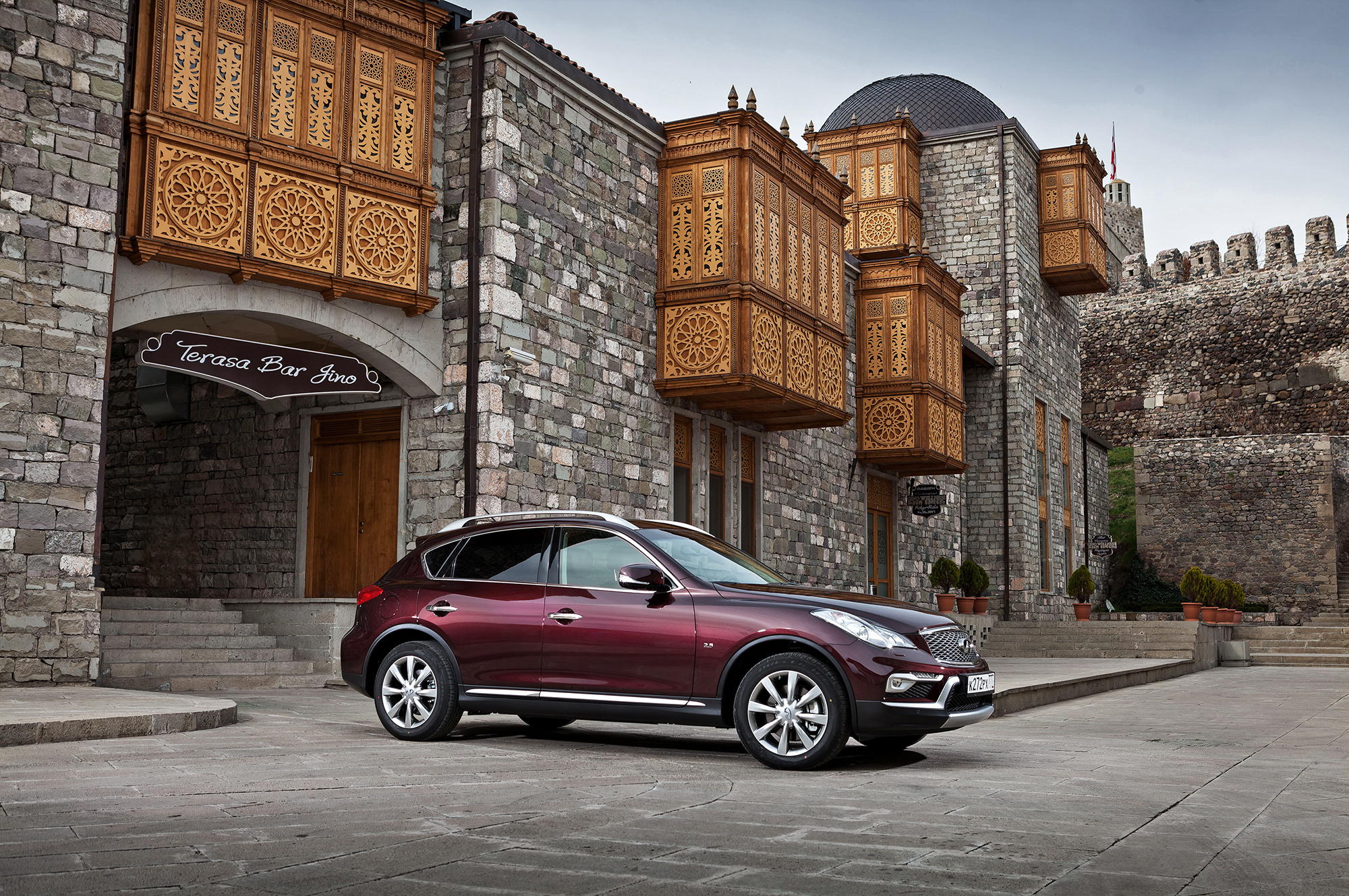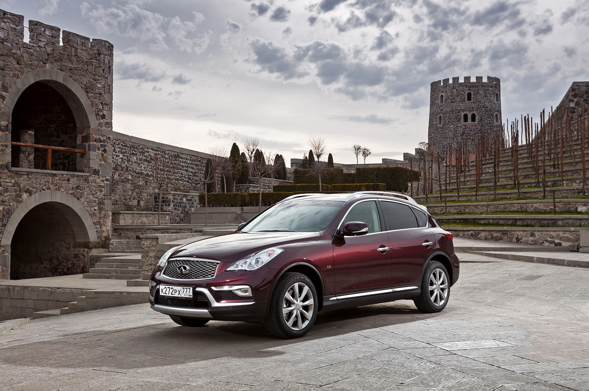 В горной стране своих древностей с избытком, но с нашим визитом артефактов прибавилось. Всё-таки модель, ранее известная как Infiniti EX, впервые увидела свет ещё в 2007 году. С тех пор она довольствовалась лишь небольшой рокировкой силовых агрегатов да переименованием. В России кроссовер устаканился в 2011-м, когда безальтернативными стали полный привод ATTESA E-TS, атмосферная «шестёрка» 2.5 (222 л.с., 252 Н•м) и семиступенчатый «автомат». За паркетником закрепилась репутация дамского угодника (около 60% покупателей — женщины) и как минимум второй машины в семье (на первую Infiniti QX50 не тянул по вместительности). После рестайлинга всё так и остаётся, но с оговорками.