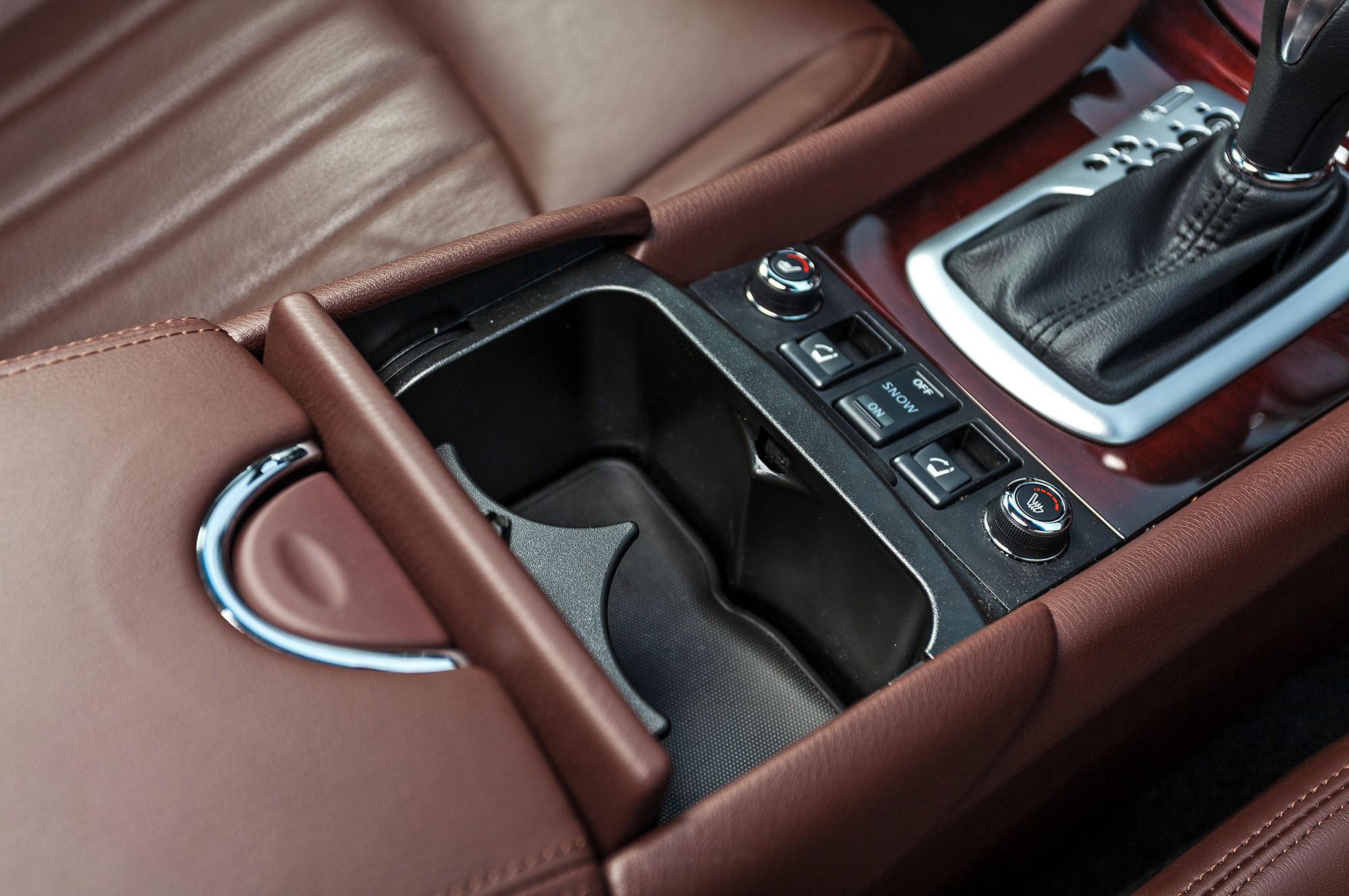 Добавилось миллиметров и килограммов, а расход в паспорте прописан тот же: 8,5–14,6 л/100 км. Впрочем, в реальности от Infiniti QX50 меньше 12 л не добьёшься. «Экономичность не его конёк», — признаёт компания. Тогда что же? Плотная энергоёмкая подвеска. На ухабах она не пропускает ни одного болезненного удара: наш «индикатор» на втором ряду, супруга коллеги, безропотно промолчит почти 500 км пути. Сквозь шумоизоляцию прорывается лишь раскрученная в ручном режиме «шестёрка», которой при обгонах мешает туповатый «автомат». В гору загруженный на три четверти паркетник еле ползёт даже при кикдауне — видно, что QX50 затачивался под двигатель 3.7 (330 л.с., 361 Н•м), не нашедший в России спроса.