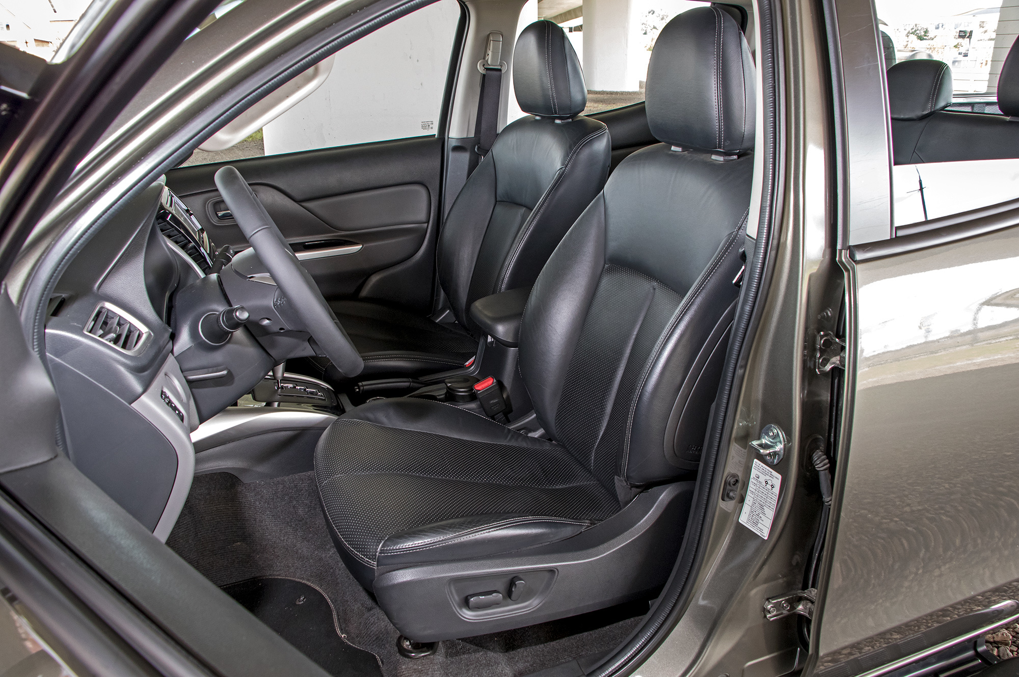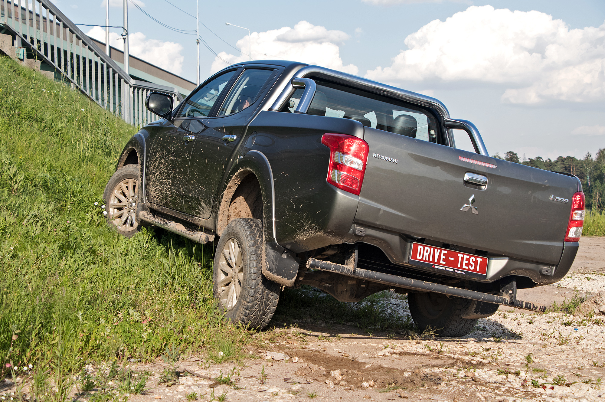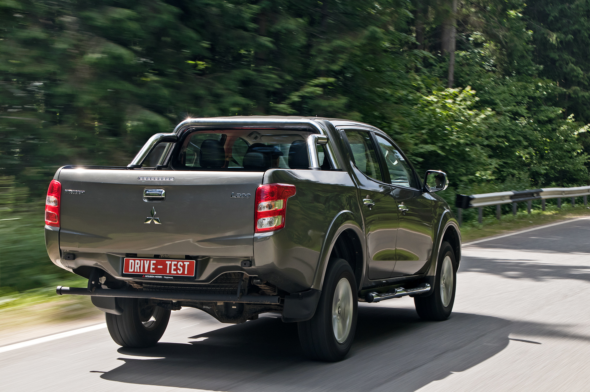 Mitsubishi L200 воспринимается более легковым, если можно так сказать, хотя и в нём кондовости достаточно. О, как трясётся капот на холостых! Этот пикап выбешивает семисекундной пищалкой, срабатывающей при каждом пуске ― дескать, пристегните ремни. Левая нога проваливается мимо странно запрокинутой подножки, не позволяя стопроцентно удобно устроиться за регулируемым в обоих направлениях рулём. Зато шикарные сиденья достойны недешёвого седана: приятен профиль, спинка высока. Развитая боковая поддержка — не иначе подстраховка для бездорожья. На асфальте пикап скрипит шинами в виражах уже на 50–60 км/ч.