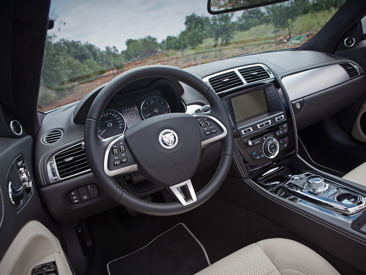 О, это совершенно другой автомобиль! На треке он в своей стихии. Клиренс купе XKR-S на 10 мм меньше, чем у трёхбуквенной модификации, а жёсткость пружин выше. Однако добраться до кольца по дорогам общего пользования владелец купе XKR-S должен в роскоши (интерьер отнюдь не аскетичен) и, насколько это возможно, в комфорте. Поэтому подвеска дополнена амортизаторами с магнитореологической жидкостью, меняющей вязкость по команде электроники. Их комфортный режим действительно отлично подходит для жизни. Даже на среднего качества дороге можно не увиливать от каждой выбоинки. Тем более что использование кованых дисков снизило неподрессореные массы.