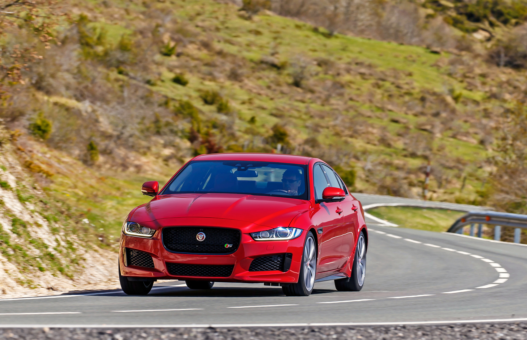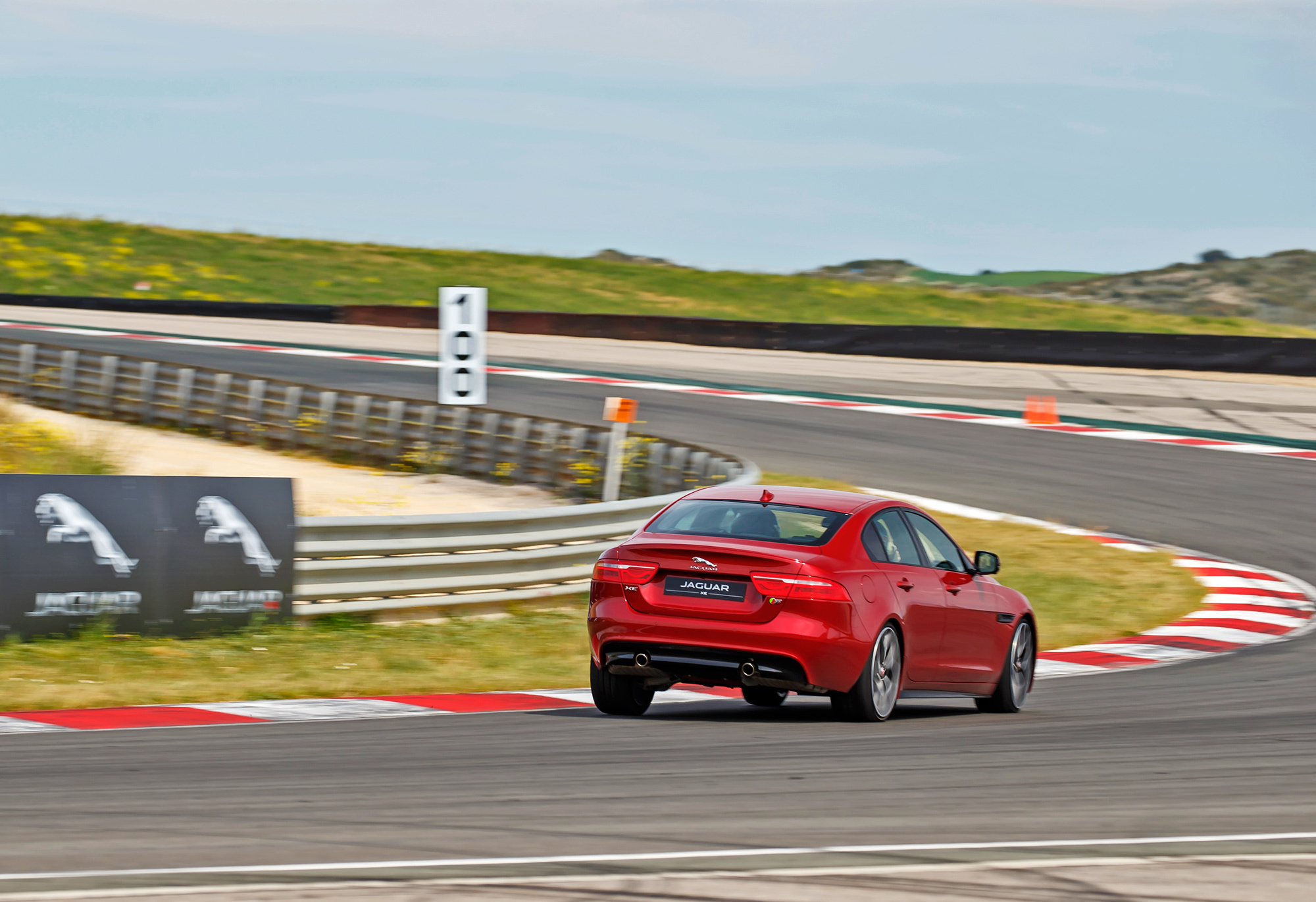 В повороты ХЕ бросается! На узких дорожках Наварры лёгкий руль Ягуара поначалу кажется слишком острым, но, привыкнув к реакциям в поворотах, с шасси сживаешься. На прямой седан непоколебим, встать на дугу — как опереться плечом о стену. Неровности, перегибы и обратные уклоны полотна — на точность следования траектории всё это не влияет. Лишь при явном переборе скорости на входе Jaguar соскальзывает передними «лапами» наружу, но, поймав зацеп, можно тут же открываться снова: под тягой ХЕ едет вслед за рулём, а если что, спохватывается электроника.