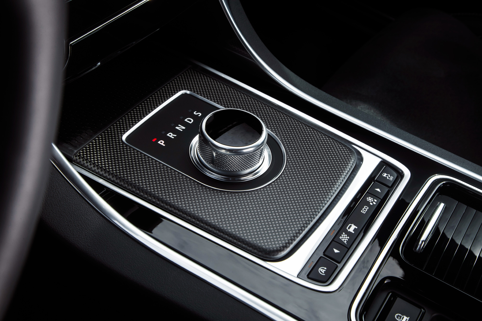 Салон не очаровывает, как в моём Ягуаре. Не хватает вау-эффекта. Раньше завораживали моторизованные вентиляционные дефлекторы: закрываясь, они превращали переднюю панель в алюминиевый монолит. Теперь поскучнело: центральные воздуховоды обычные, сервоприводы остались у боковых, но на них не обращаешь внимания. Кнопки выстроены в ряды, вся консоль залита чёрным лакированным пластиком с отпечатками пальцев. Посреди этой нефтяной черноты плавает деревянный плотик с шайбой-селектором «автомата».