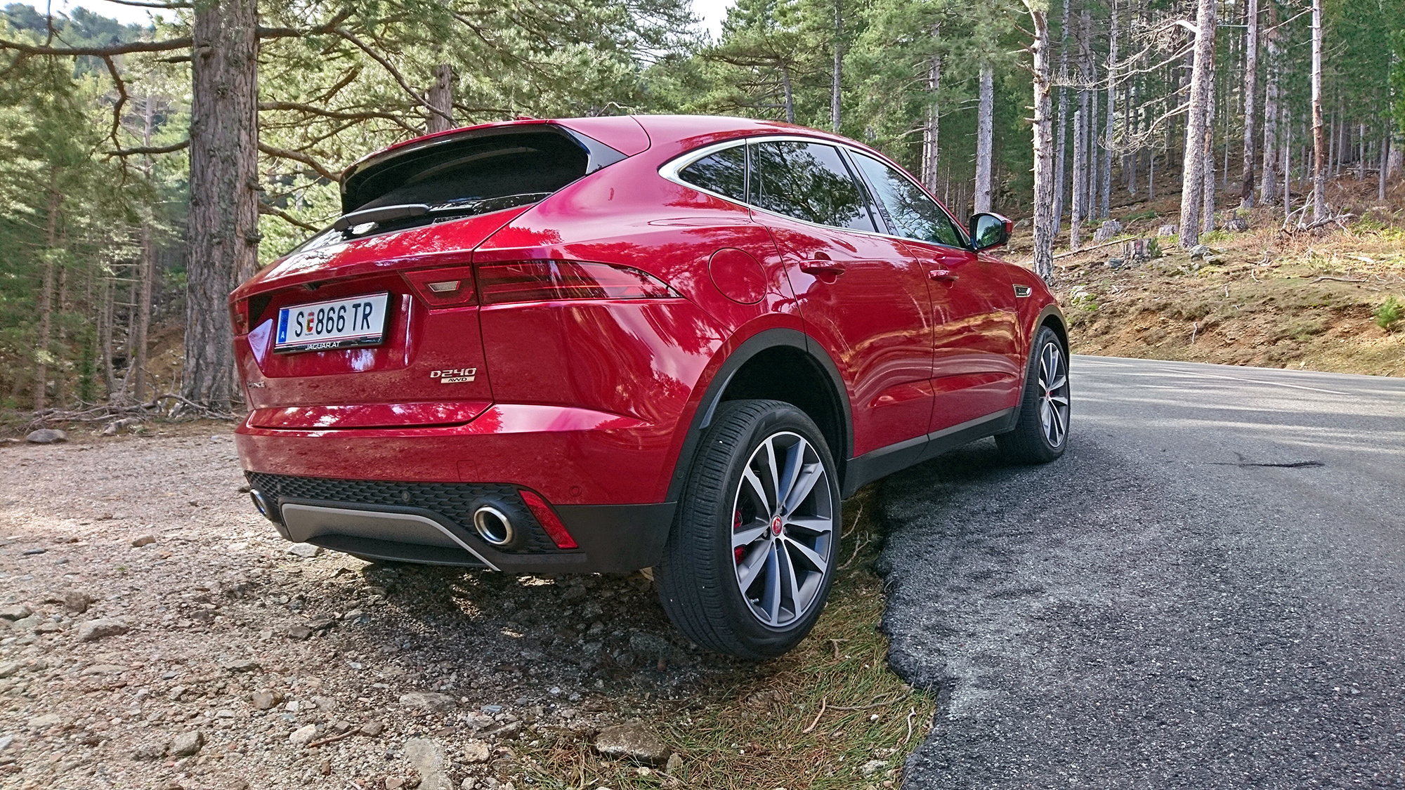 Внедорожный потенциал неплох. Под плоским днищем честные 20 сантиметров клиренса, а вспомогательная электроника настроена с пониманием ― будь то «ползучий» круиз-контроль или имитация межколёсных блокировок. С диагональным вывешиванием Jaguar справляется играючи ― в том числе и с помощью бездифференциального привода задних колёс. И только легковые хода колёс не позволяют назвать его чем-то большим, нежели кроссовером.