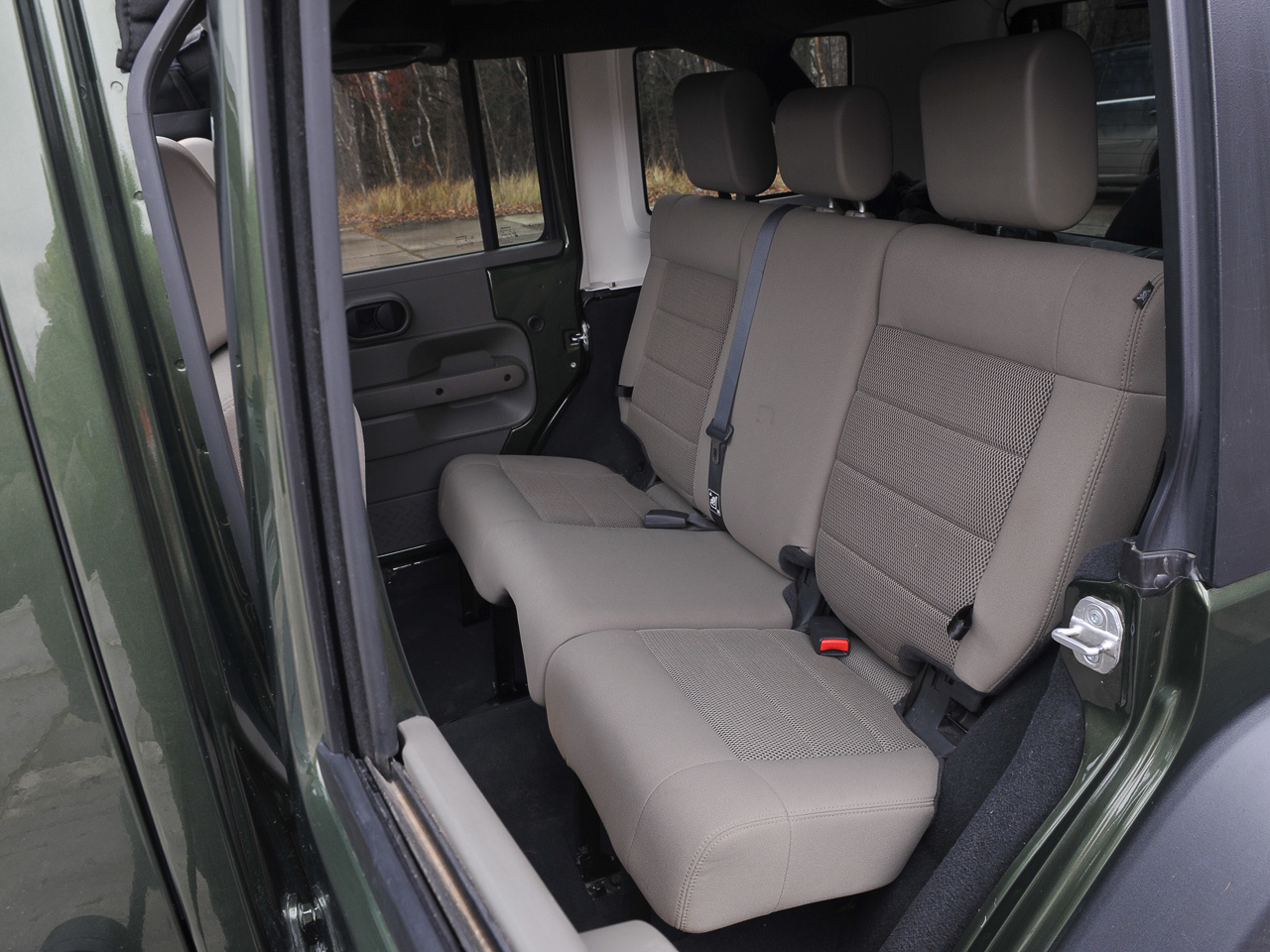 Особенности нашего Рэнглера — растянутая на 523 мм колёсная база и пара дополнительных задних дверей. Может быть, это не очень породисто, зато удобно. Отныне пассажирам нет нужды скакать через борт — у каждого есть свой персональный вход и приличный запас места для ног. Вдобавок можно полностью снять крышу Рэнглера, в то время как панцирь пятидверного Ленд Ровера в процессе эволюции полностью ороговел. Вот только кузов-трансформер плохо держит тепло, а печка, душащая горячим воздухом передних пассажиров, не спасает от холода задних. Нет у нашего Рэнглера и подогрева сидений.
