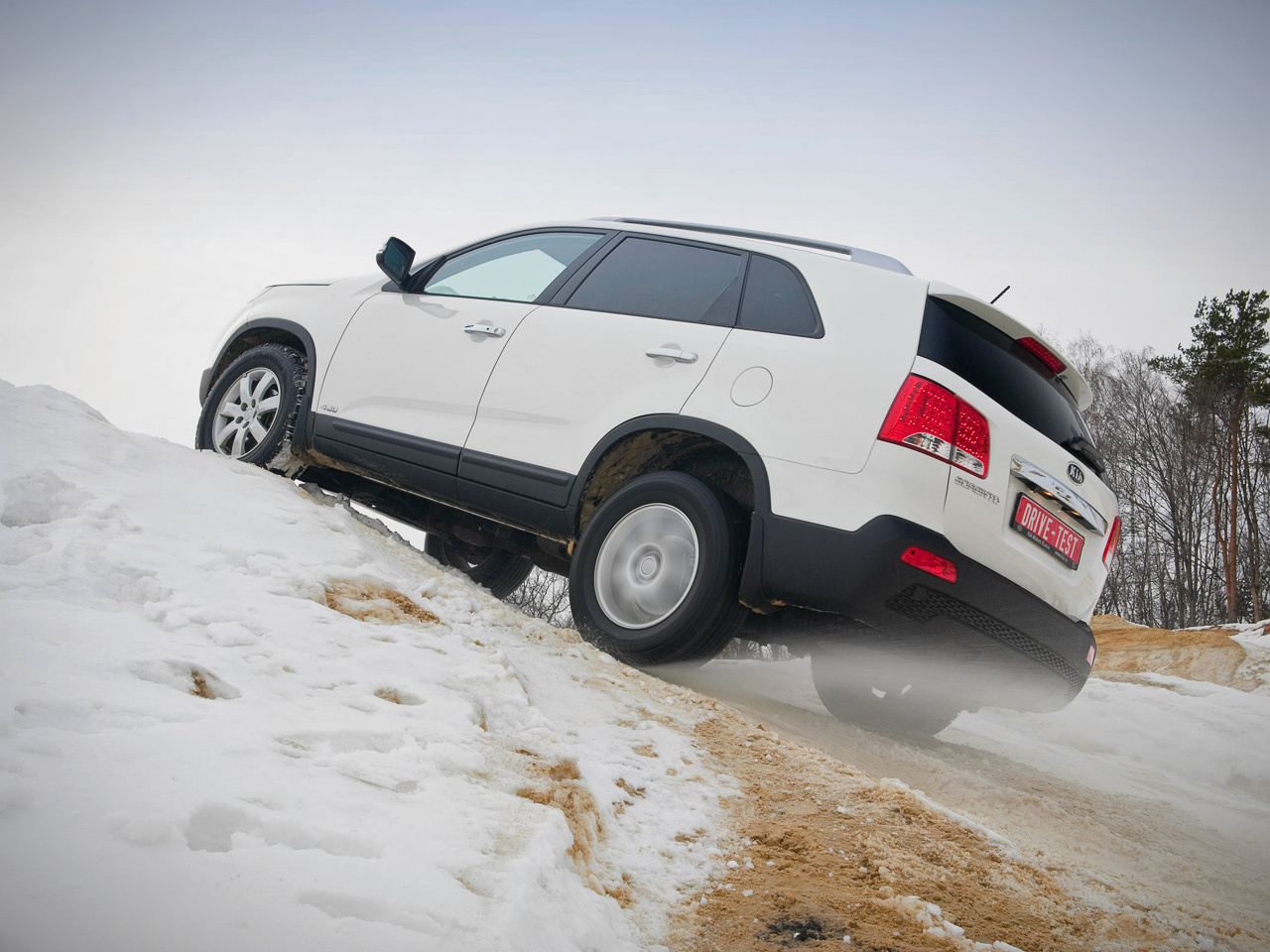 Да, у Sorento нет ни понижающей передачи, ни блокировок. С вывешенным колесом он способен двигаться только под горку. Потеряв ход, мы застряли почти на ровном месте, которое по виду больше походило на обычную московскую парковку. Да и муфта заднего привода перегревается, вследствие чего автомобиль становится переднеприводным. Но, во-первых, жар лечится пятиминутным «перекуром», а то и просто перезапуском мотора. А во-вторых, если не сбрасывать газ, то Sorento лезет, лезет наверх, чертяка. Не с первой, так со второй попытки. Рычит, выпуская пар перескакивающим на повышенную передачу «автоматом» (даже в ручном режиме), но лезет. Здоровый дух. Смелость, которая города берёт.