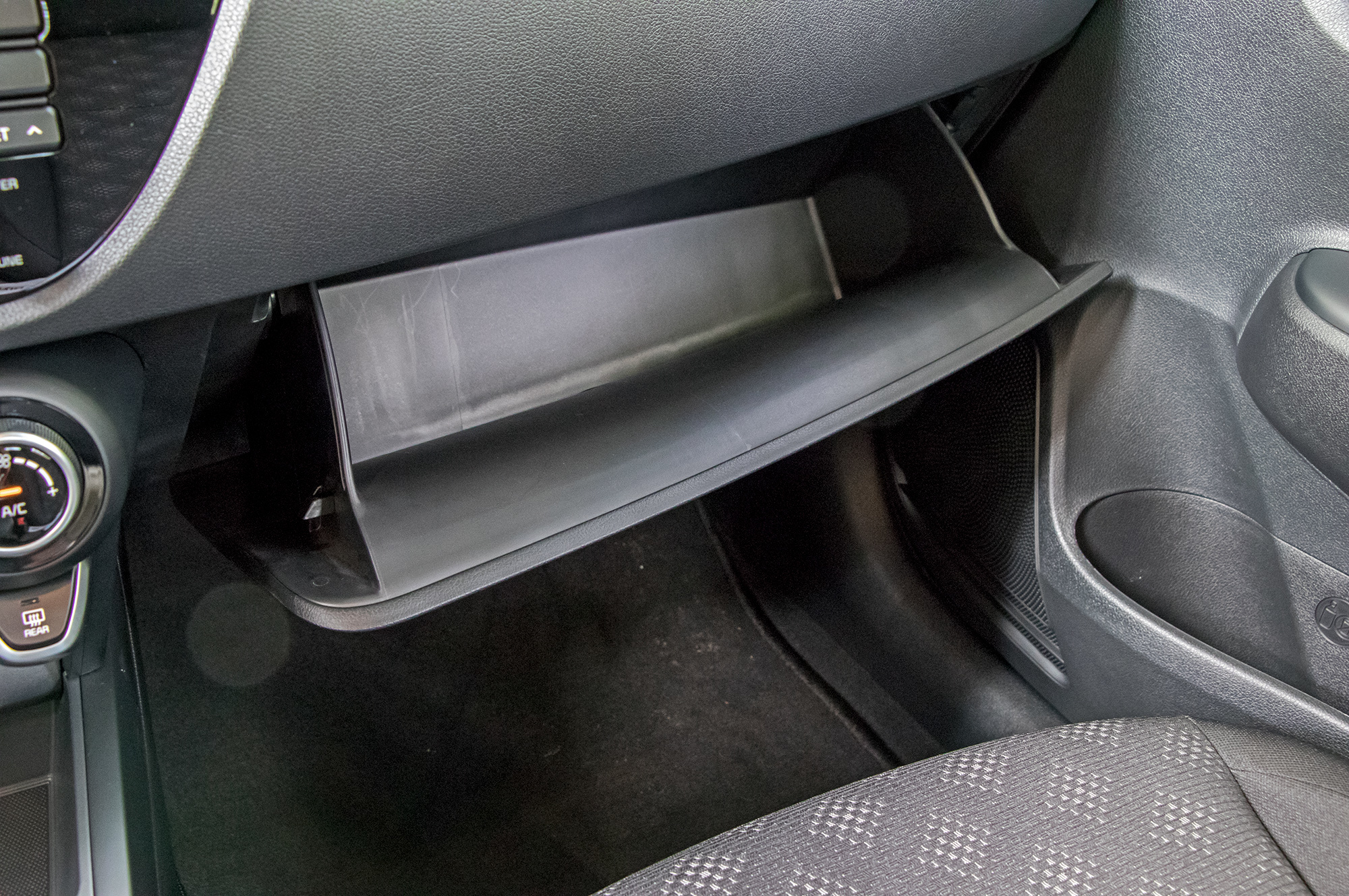 Прибавка 30 мм колёсной базы слегка освободила колени задних пассажиров, хотя при росте 187 см я всё так же подпираю потолок головой. Если выбирать, на каком такси ехать, предпочту не Rio с Солярисом, а Альмеру, Logan или Polo. Багажник почти не изменился, хотя проём чуть больше, чем в Hyundai, а в комплектации Premium предусмотрено бесконтактное открытие крышки. Если несколько секунд стоишь позади запертой машины, Rio три раза пищит и чуть погодя отпирает багажник. Чтобы поднять крышку, сумки всё равно придётся поставить ― ради чего тогда отказались от кнопки на ней?