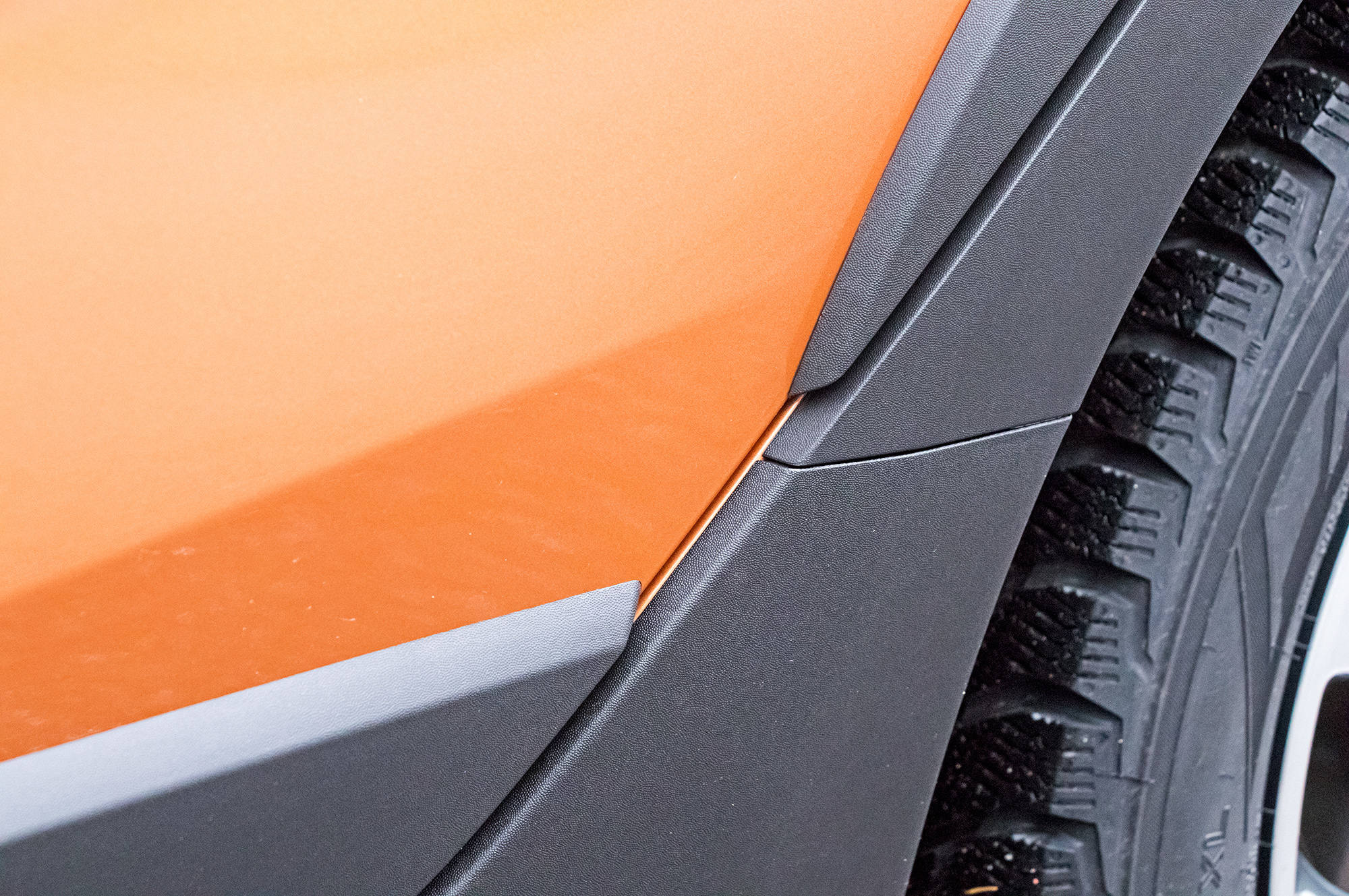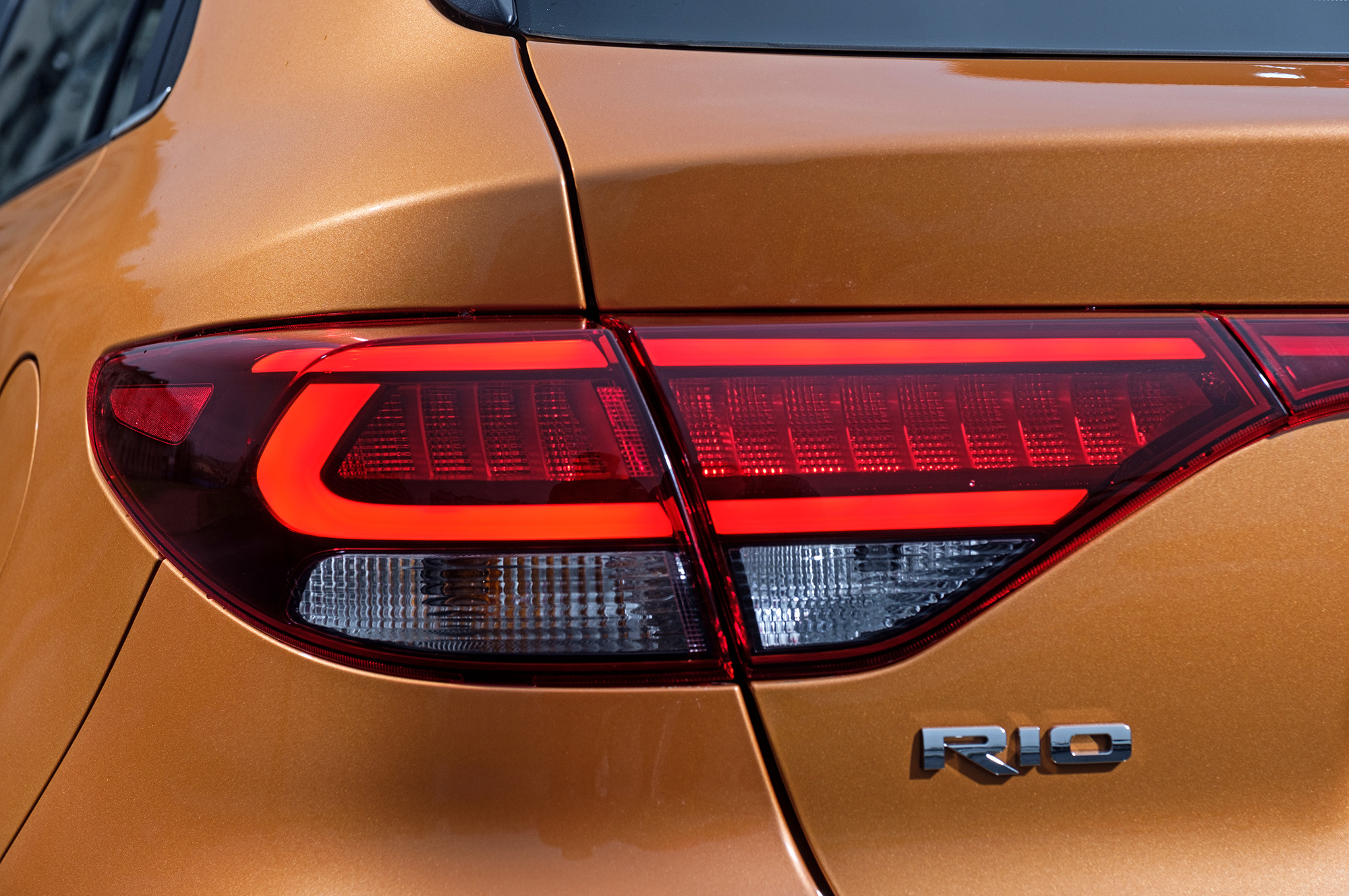 На кроссоверный образ работает прежде всего обвес из некрашеного пластика. Он собран из множества мелких деталей и на дверях приклеен к панелям, а не защёлкнут на пистонах, как на арках. Бамперы и глухая облицовка радиатора оригинальны. Увы, из-за серебристых вставок по нижним краям бамперов Rio на вы с бордюрами. Тёмные рейлинги на крыше полагаются всем версиям и прикручиваются в те же закладные гайки, куда на седане крепится багажник. На этом всё. Даже размер и модель шин ― те же, что у четырёхдверки, и в разбухших арках колёса кажутся маленькими.