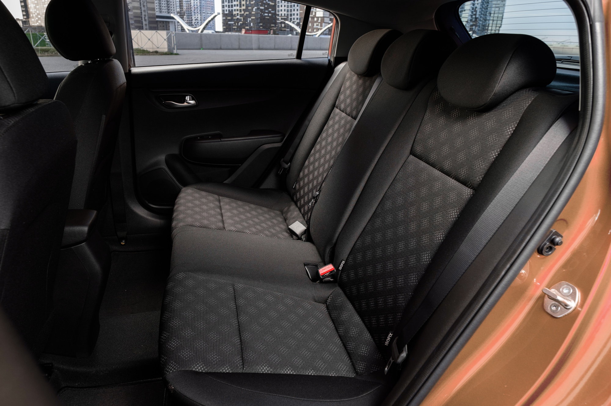 По сравнению с четырёхдверным Rio багажник укоротился на 16 сантиметров, однако и 390 литров ― объём весьма достойный. У Лады с Renault меньше. Ровного пола при сложенных задних спинках не получить, но пятидверный кузов по определению функциональнее. Крыша над задними пассажирами приподнялась на 14 мм, и я уже не подпираю потолок макушкой, садясь «сам за собой». Хотя по-прежнему вынужден сутулиться, чтобы выглянуть в боковое окно. В передней части салон унифицирован, что означает хорошую эргономику и адекватную цене отделку. Правда, не помню в седане столь сильного химического запаха.