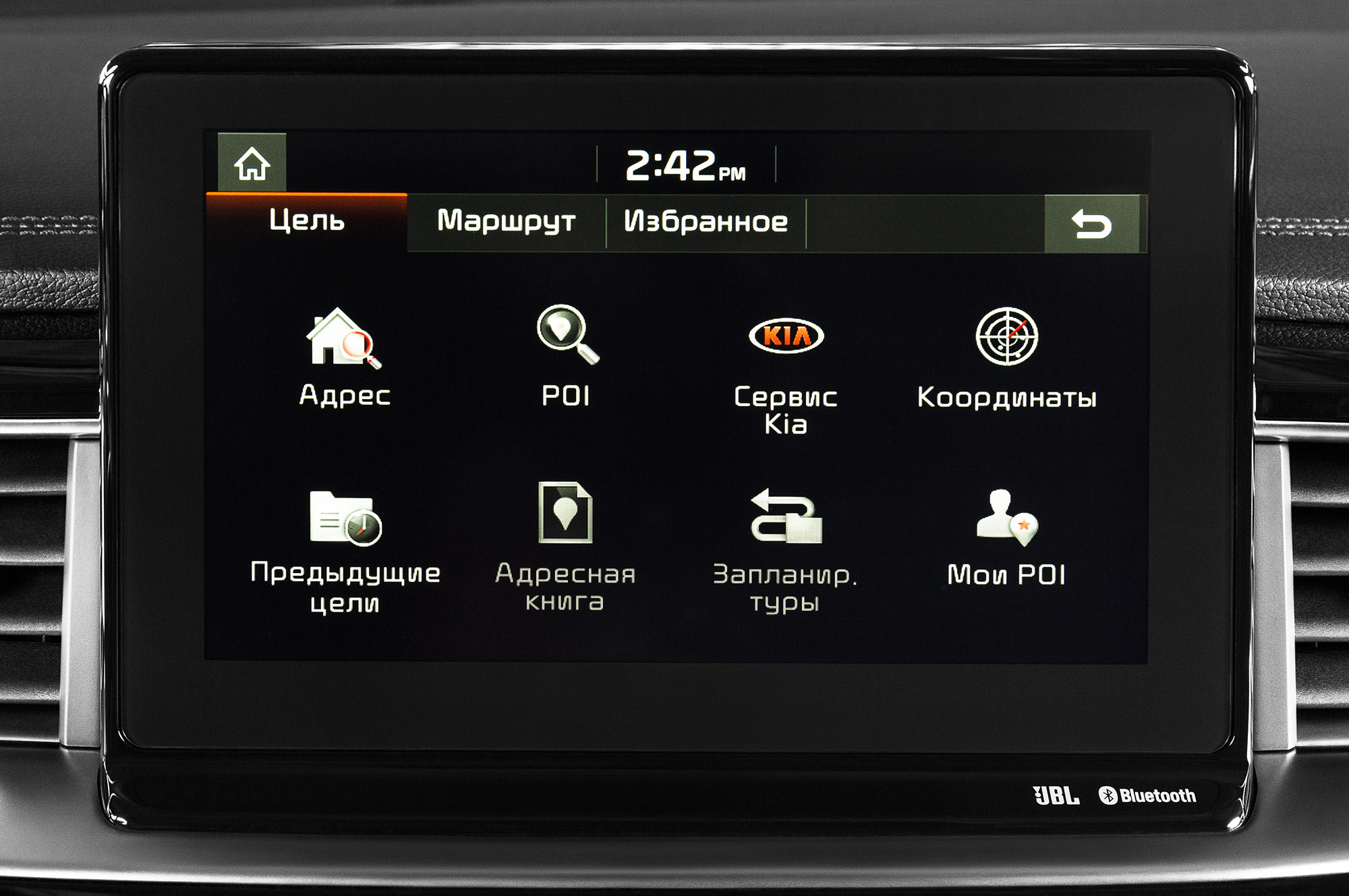 Прогресс в качестве отделки минимален, а пластик на задних дверях вообще теперь жёсткий. Но хром и глянец топовой версии делают своё дело — визуально всё супер. Озадачивает только короб экрана, торчащий из панели. Такой будет даже на базовых машинах с монохромным пятидюймовым дисплеем взамен привычного по другим моделям Kia медиакомплекса AVN 5.0. Бардачок лишился охлаждения, дверные карманы не широки. Обзорность беспроблемна, даже несмотря на низкие зеркала и исчезновение стеклянных «треугольничков» в основании передних стоек.