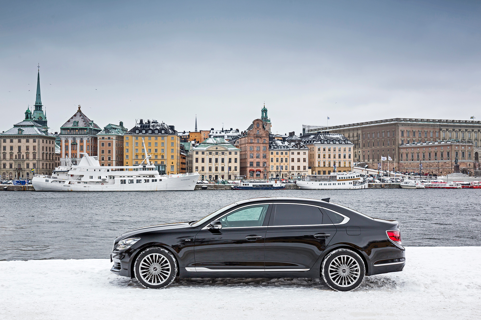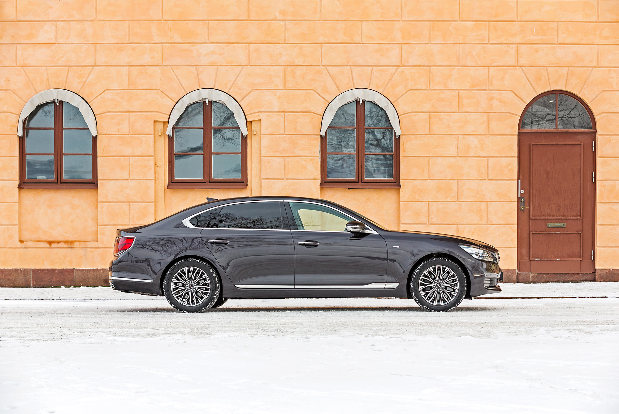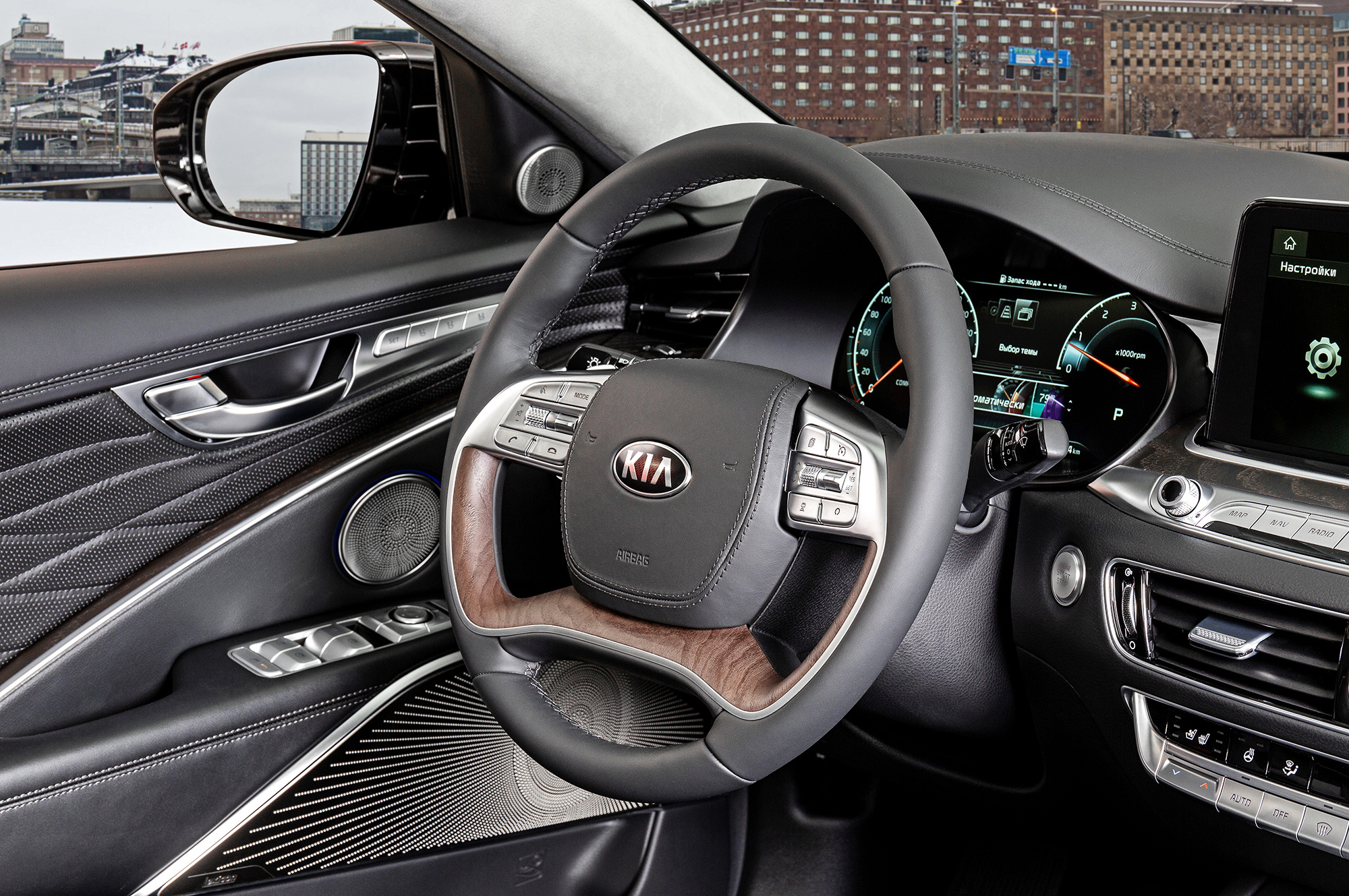 Чего не будет, так это пневмоподвески. Производитель уверяет, что современные адаптивные амортизаторы справляются с задачей не хуже. Но если раньше пневма была доступна от 3 654 900 рублей по прайсу (и именно таким был самый популярный Quoris 3.8), то электронноуправляемые стойки появляются у K900 только самой дорогой из трёх версий минимум за 3,9 млн. Именно в таком исполнении мой тестовый автомобиль. Однако полноценно оценить плавность хода в Швеции не представляется возможным.