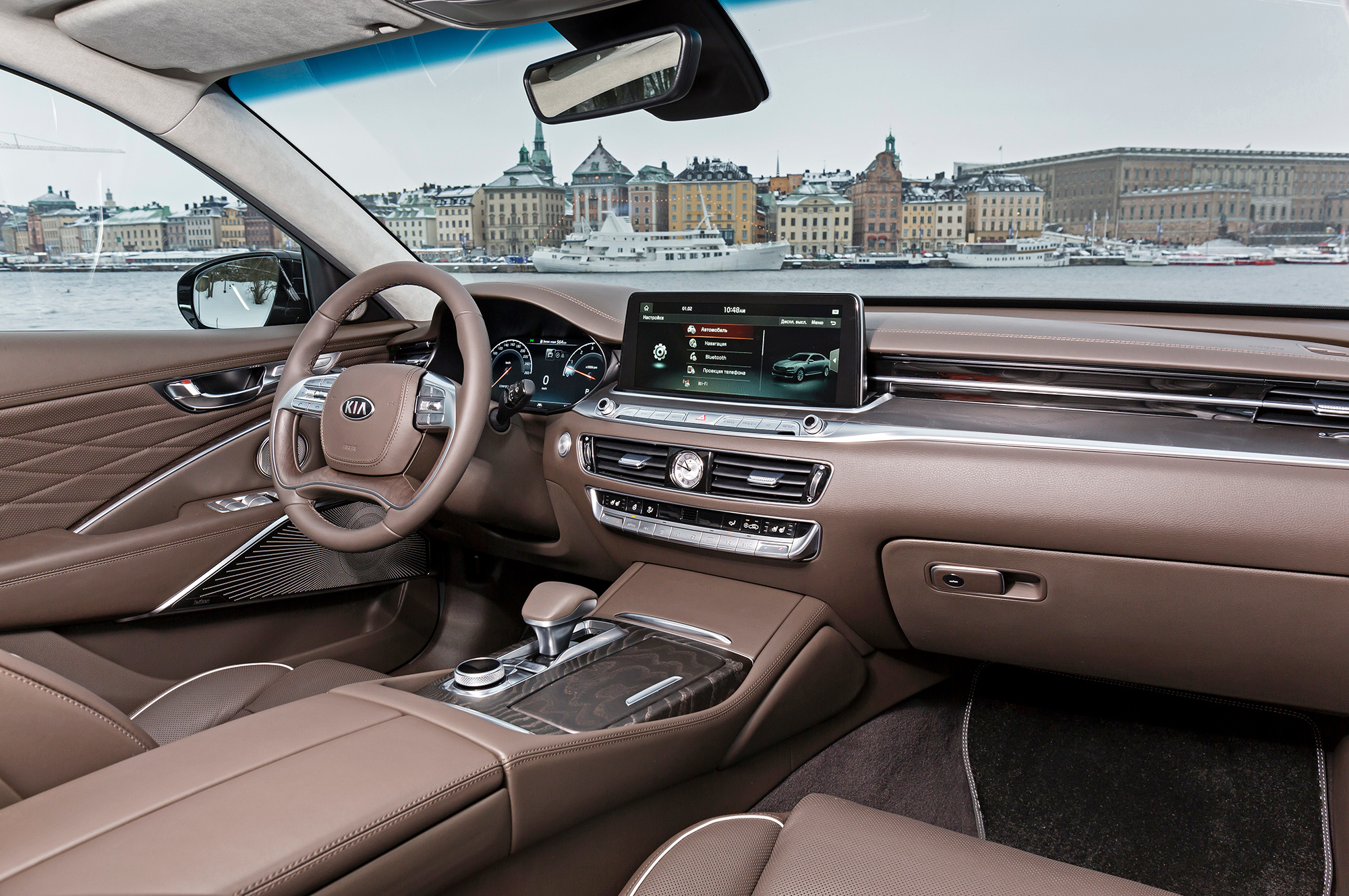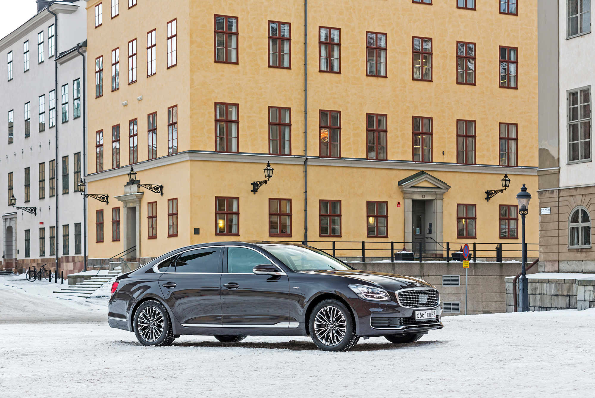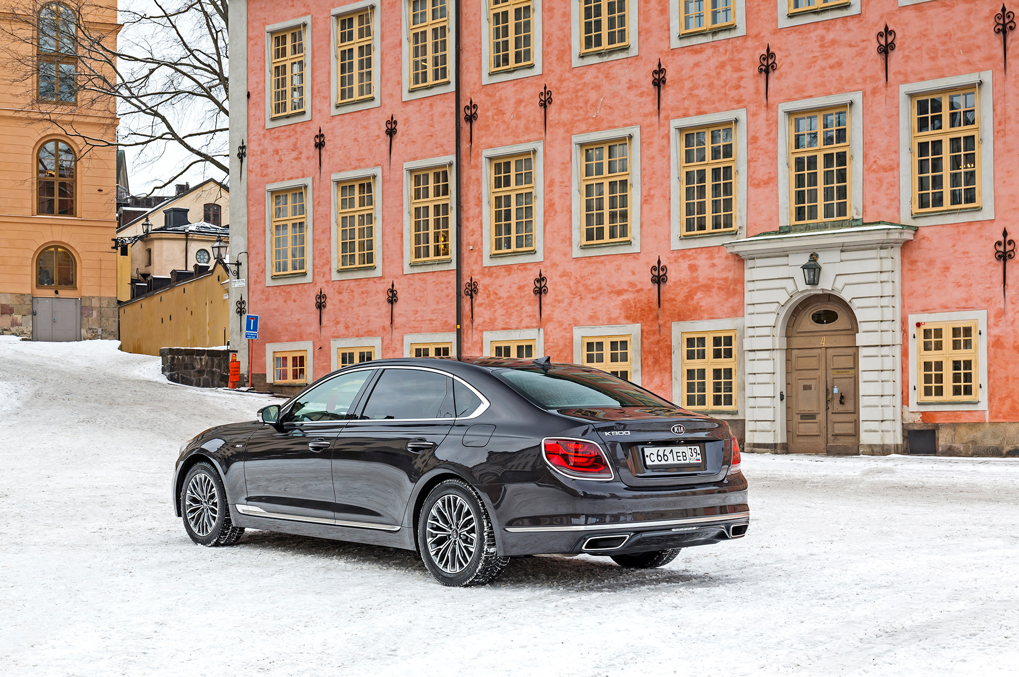 Несмотря на 2200 кг с двумя седоками, динамически атмосферный K900 вполне состоятелен. Субъективно не столь приёмист и скор в откликах, как BMW 530i, который KIA хочет видеть в конкурентах. Но укомплектованные в основном «пятьсот двадцатыми» и «двухсотыми ешками» Uber Black c Яндекс.Драйвом явно прибавят прыти с появлением K900. Меня уверяют, он может набрать 240 км... В Швеции с её драконовскими штрафами не хочется даже обгонять лишний раз. Тем более что после ускорения в пол спокойный восьмиступенчатый «автомат» возвращается на повышенную с ощутимым рывком.