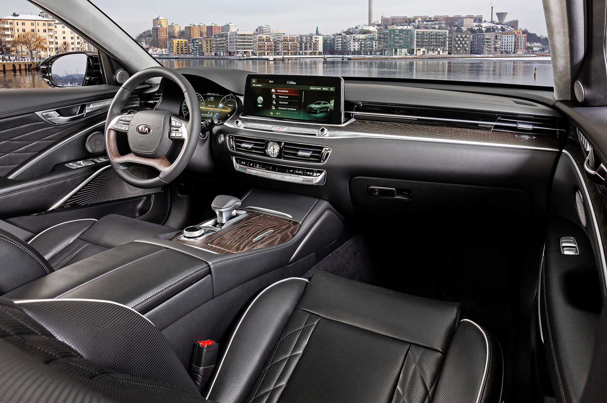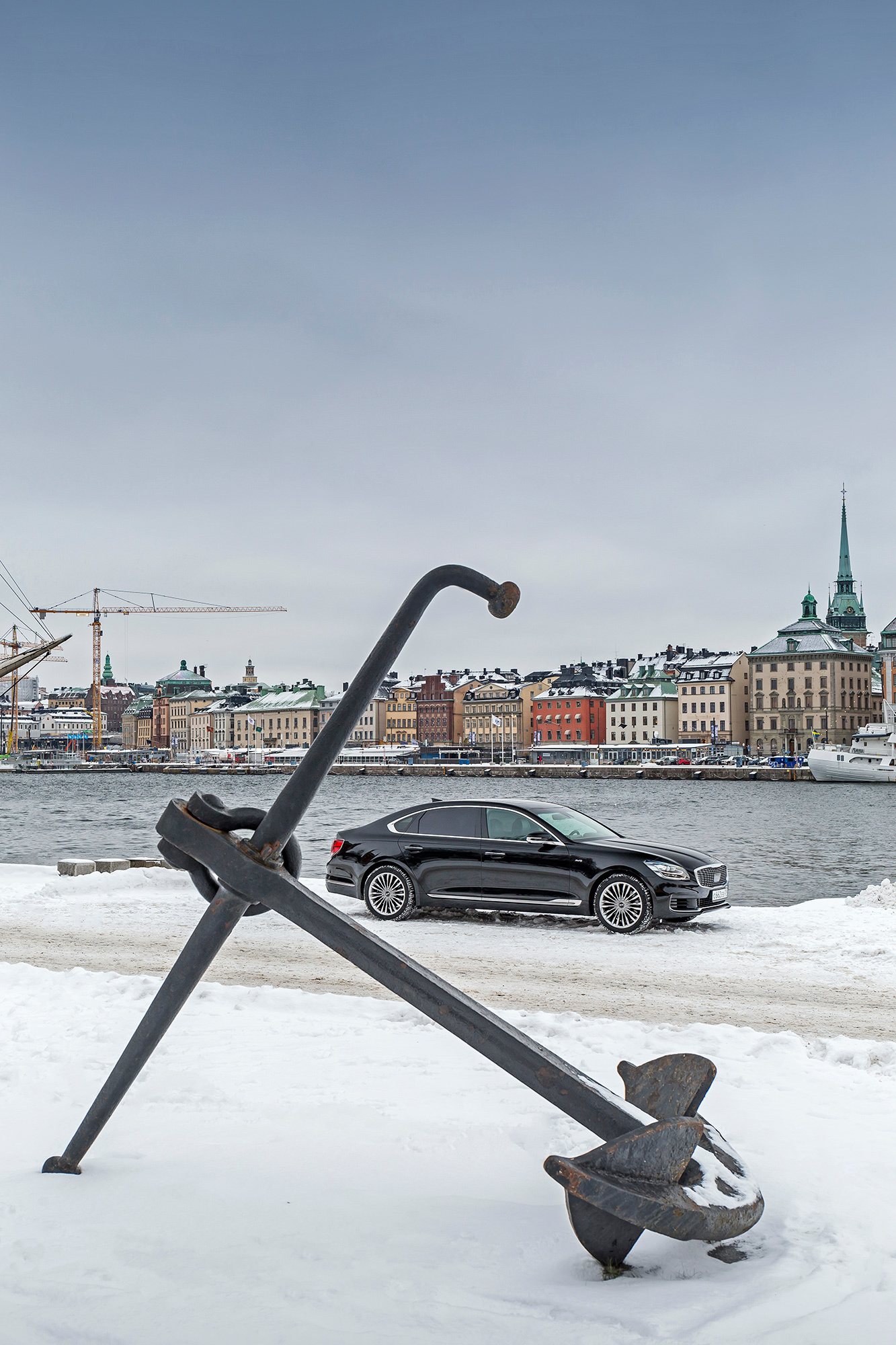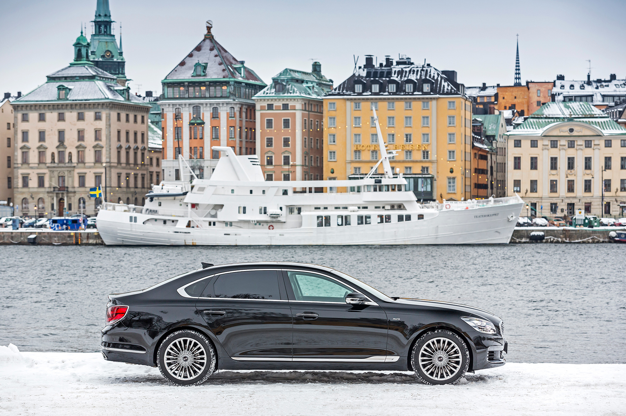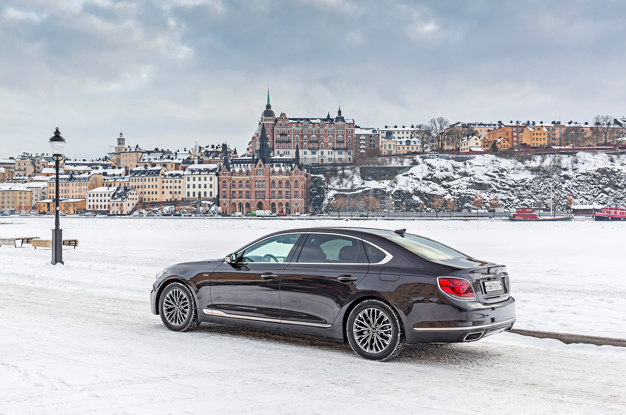 Несмотря на 2200 кг с двумя седоками, динамически атмосферный K900 вполне состоятелен. Субъективно не столь приёмист и скор в откликах, как BMW 530i, который KIA хочет видеть в конкурентах. Но укомплектованные в основном «пятьсот двадцатыми» и «двухсотыми ешками» Uber Black c Яндекс.Драйвом явно прибавят прыти с появлением K900. Меня уверяют, он может набрать 240 км... В Швеции с её драконовскими штрафами не хочется даже обгонять лишний раз. Тем более что после ускорения в пол спокойный восьмиступенчатый «автомат» возвращается на повышенную с ощутимым рывком.