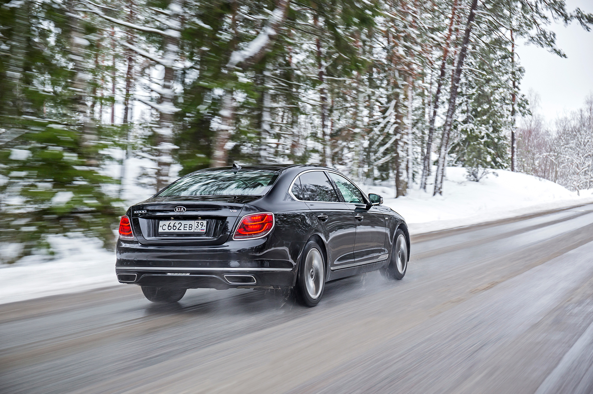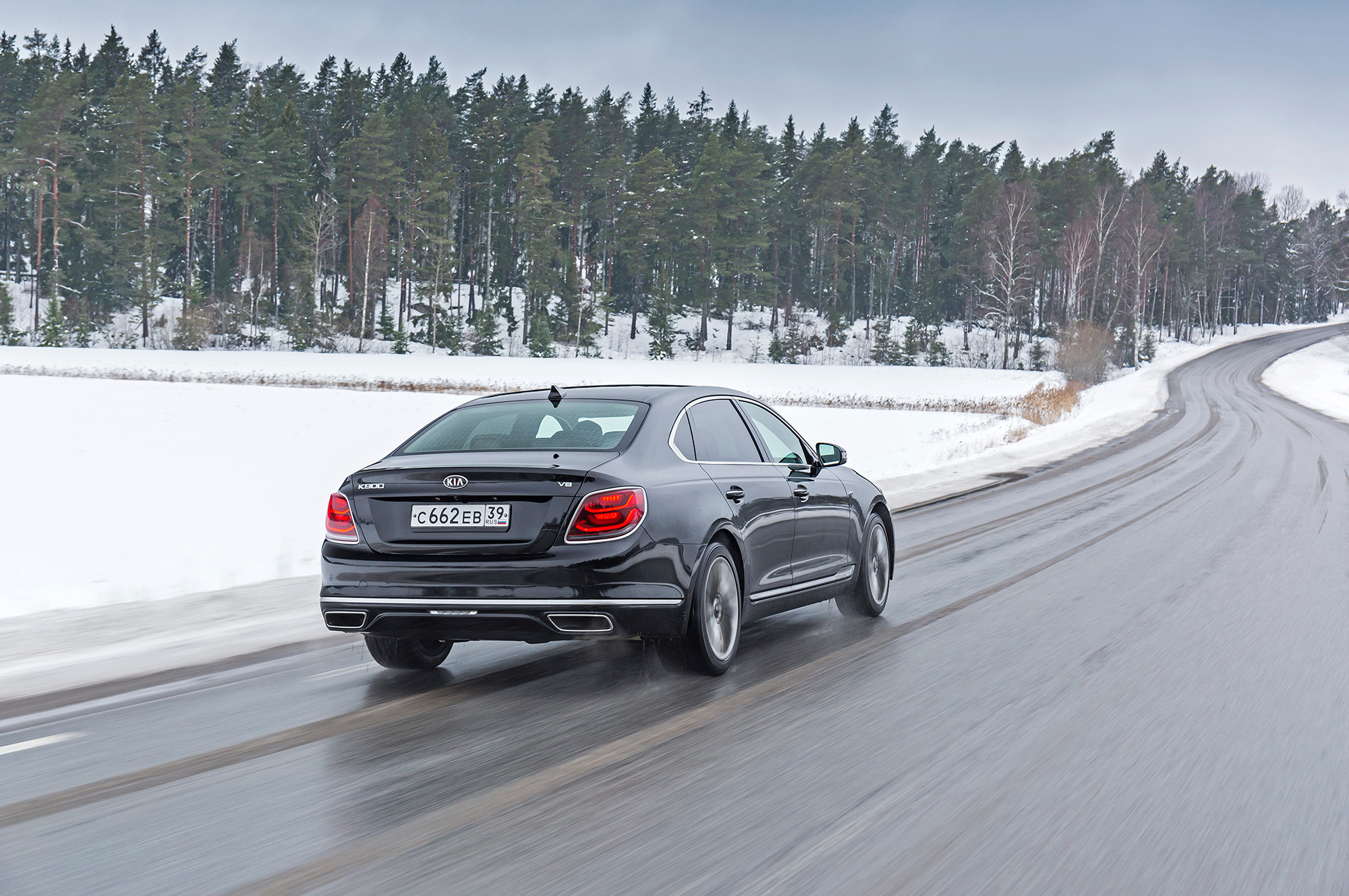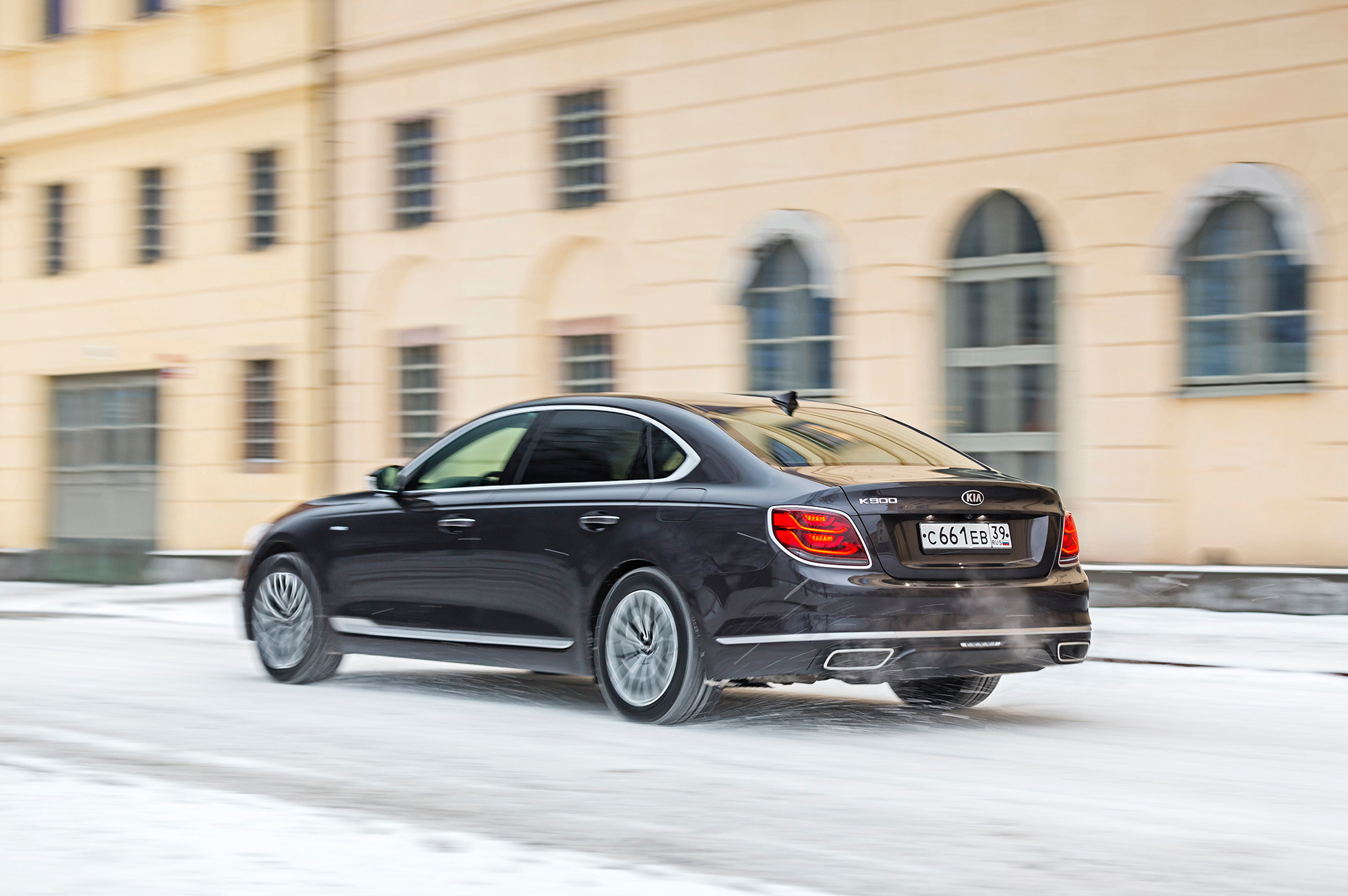 На шоссе местами стоит вода, заплатками разбросана наледь. На второстепенных дорогах повсюду — снежная каша. В таких условиях K900 не слишком хорошо держит скоростную прямую, когда под колёса подворачиваются неровности, а в салоне хорошо прослушивается гул шин и плеск воды. Сзади чуть комфортнее, поскольку в руках нет вибрирующего руля. Его невысокая информативность усугубляется вмешательством системы удержания в полосе при включённом круиз-контроле. Из-за снежных пятен машина частенько теряет разметку и баранка то произвольно пустеет, то вновь начинает своевольничать, пытаясь выдержать неведомую траекторию.