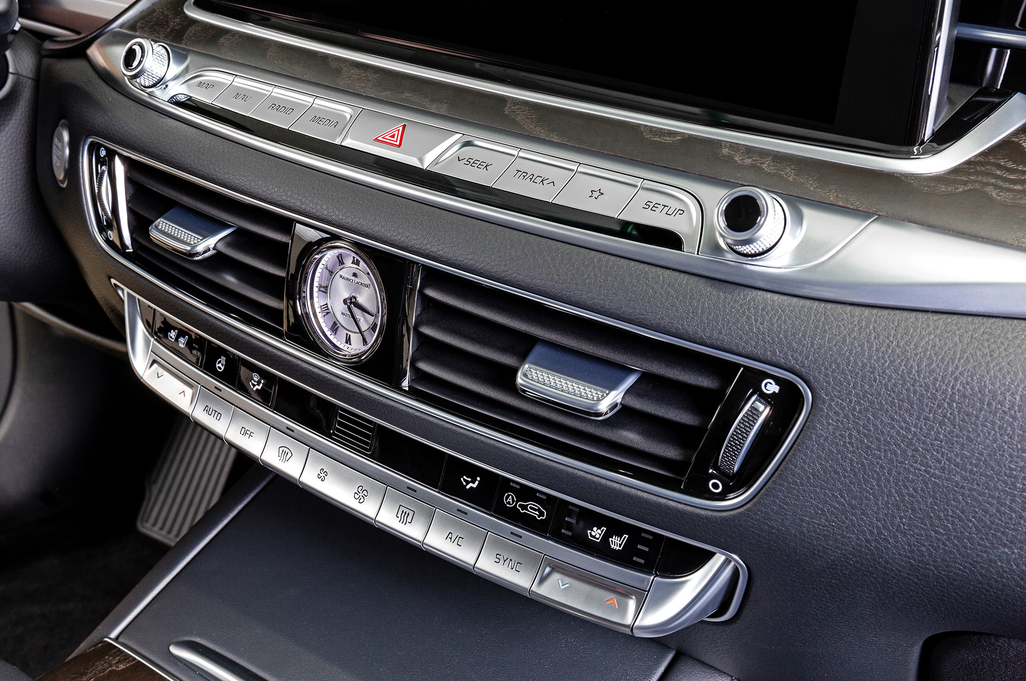 Во-вторых, за последние пять лет диаметрально изменились трансмиссионные предпочтения в бизнес-классе. Если в 2014-м только 35% продаж приходилось на полноприводную технику, то теперь её свыше 60%. Quoris, как вы помните, бывает только заднеприводным. У K900 все четыре колеса ведущие, а место «шестёрки» 3.8 мощностью 334 л.с. отдано 249-сильной объёмом 3,3 л. Двигатель с льготной налоговой ставкой — это G6DM от американского седана Kia Cadenza, адаптированный под продольную установку специально для России. Вот какой мы важный рынок.