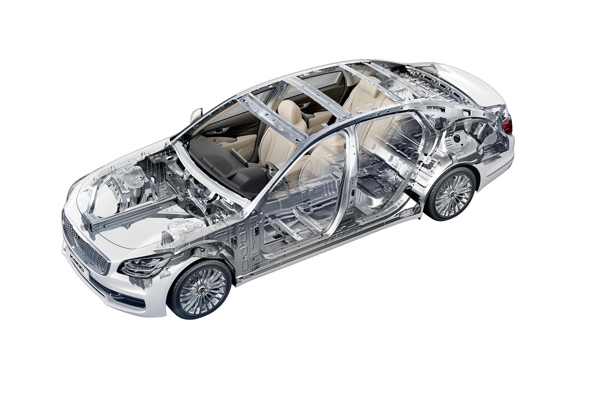 Компания KIA вошла в представительский сегмент позже, чем Hyundai. Показанный в 2012 году Quoris серии KH был построен на заднеприводной платформе BH-L (VI), общей с моделью Hyundai Equus. Спереди — двухрычажки, в задней многорычажной подвеске амортизаторы и пневмопружины разнесены. Пневмоподвеска позволяла приподнимать кузов на 30 мм. У нас на Quoris ставился двигатель V6 3.8 сначала с распределённым впрыском (290 л.с.), затем с непосредственным (334 силы). В 2015 году в России с большой задержкой добавилась пятилитровая «восьмёрка» мощностью 424 «лошади».