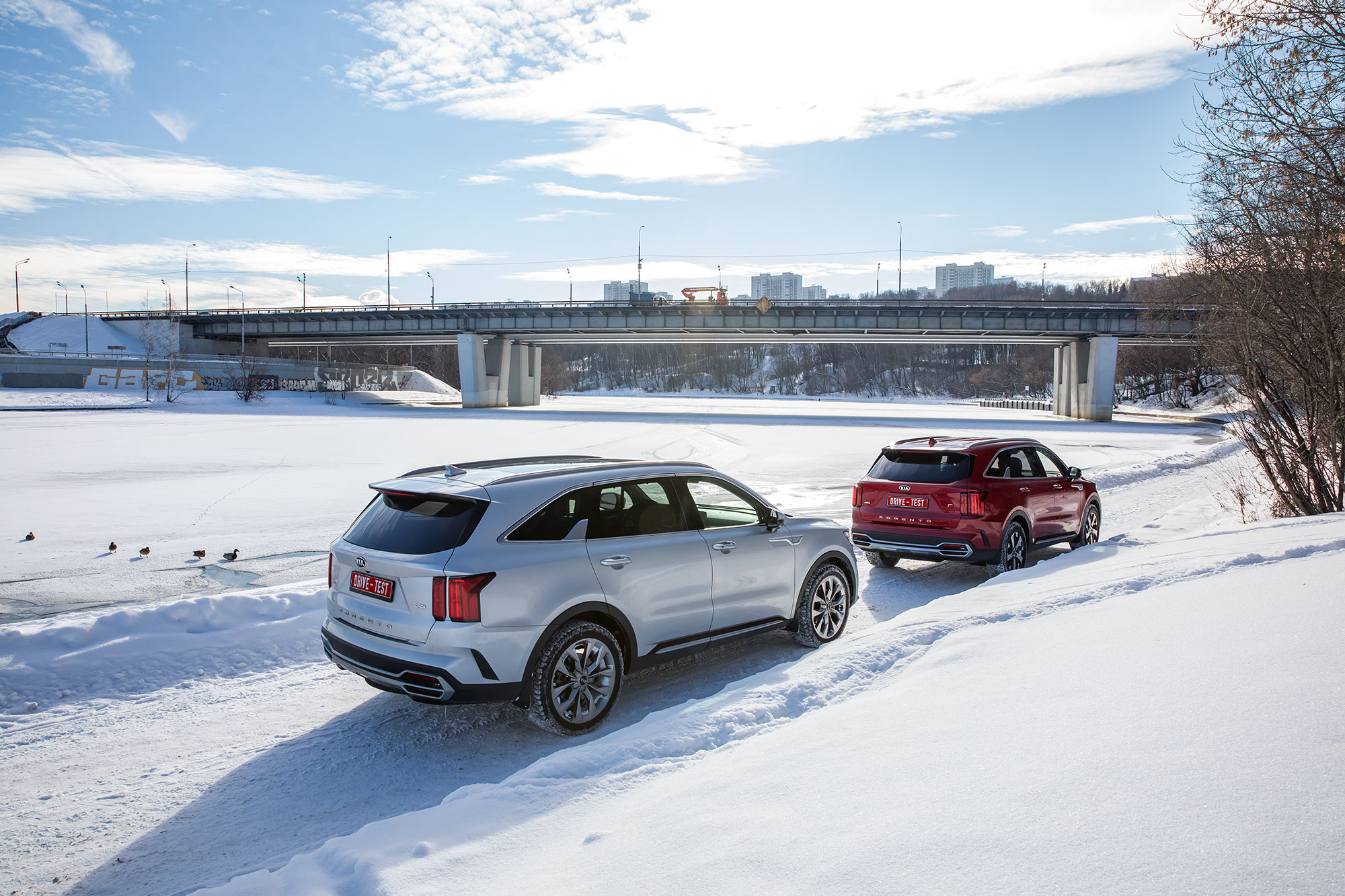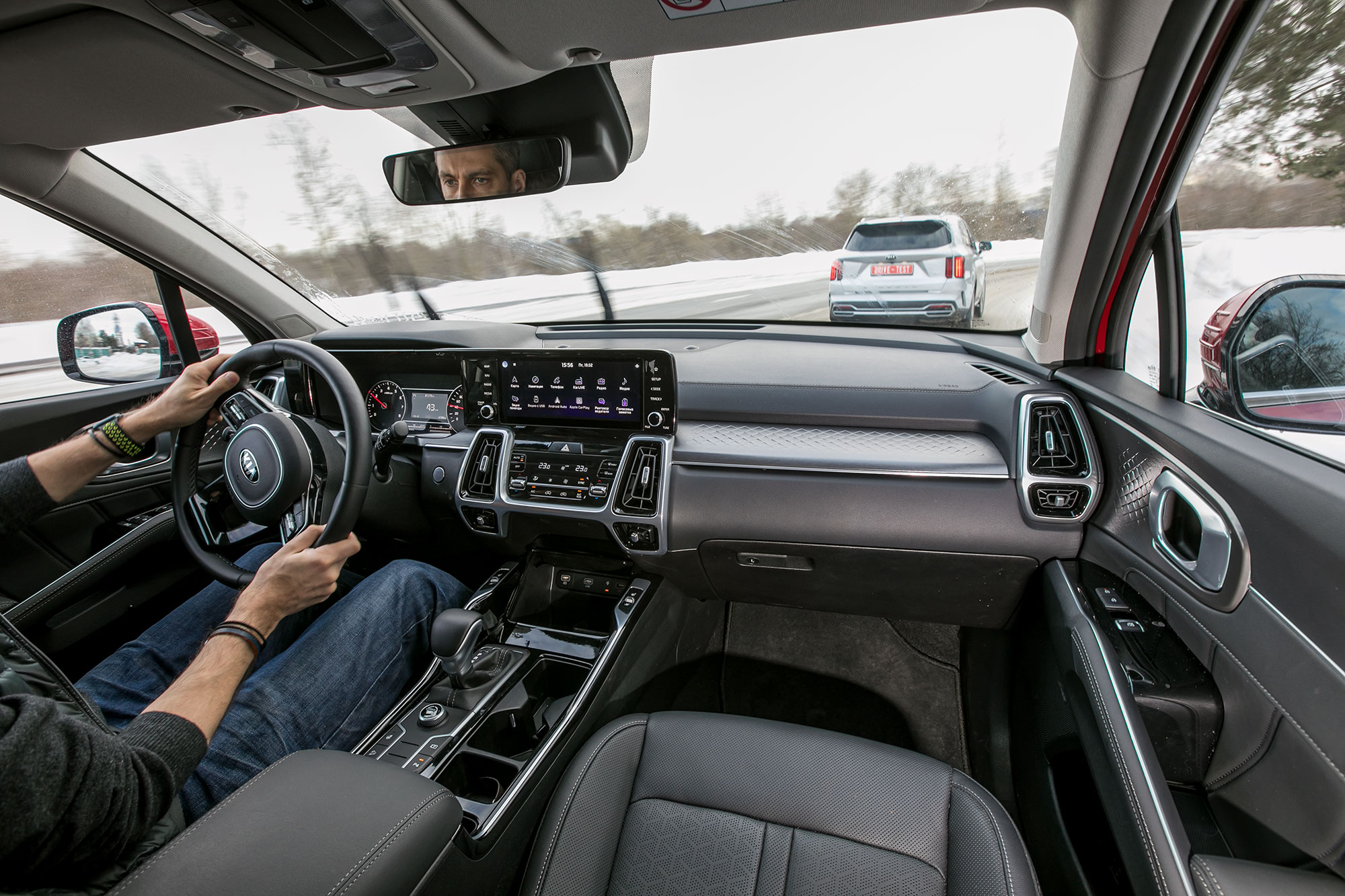 По иронии именно из-за этого Sport оказывается самым неинтересным на ледяной трассе управляемости. Зажатая задница придаёт кроссоверу сильно выраженную недостаточную поворачиваемость, и под газом она только акцентируется. А ещё дизельный Sorento заметно вибронагружен на холостом ходу, тогда как в бензиновой машине — тишь да гладь. Но клиенты готовы с этим мириться, ведь помимо козырного оснащения на стороне дизеля ещё и лучшая динамика при меньшем расходе топлива. По ходу теста, согласно чекам с АЗС, Sorento 2.2 CRDI потребовал в среднем 9,5 л/100 км, а 2.5 MPI — 13,2 л.