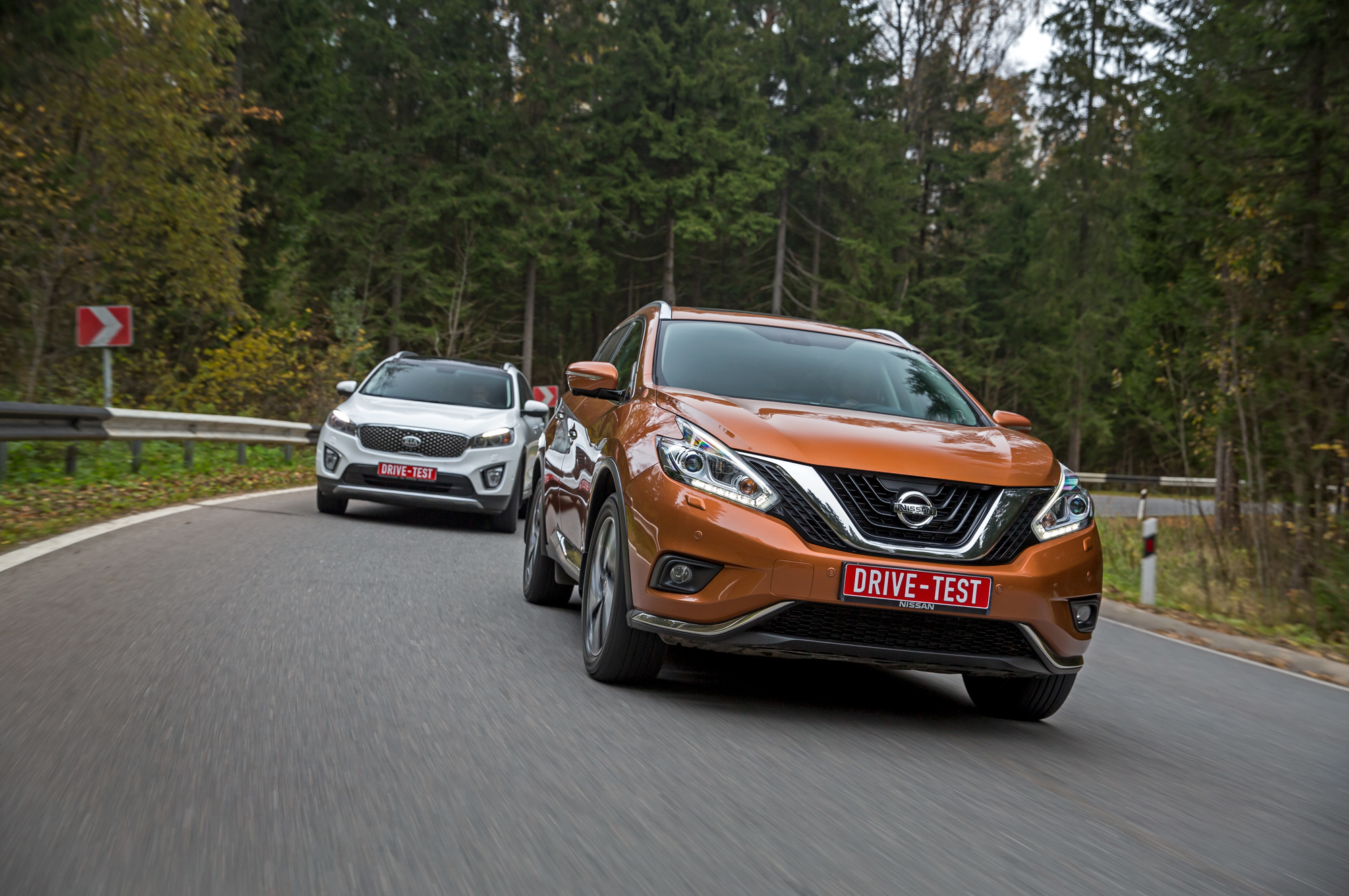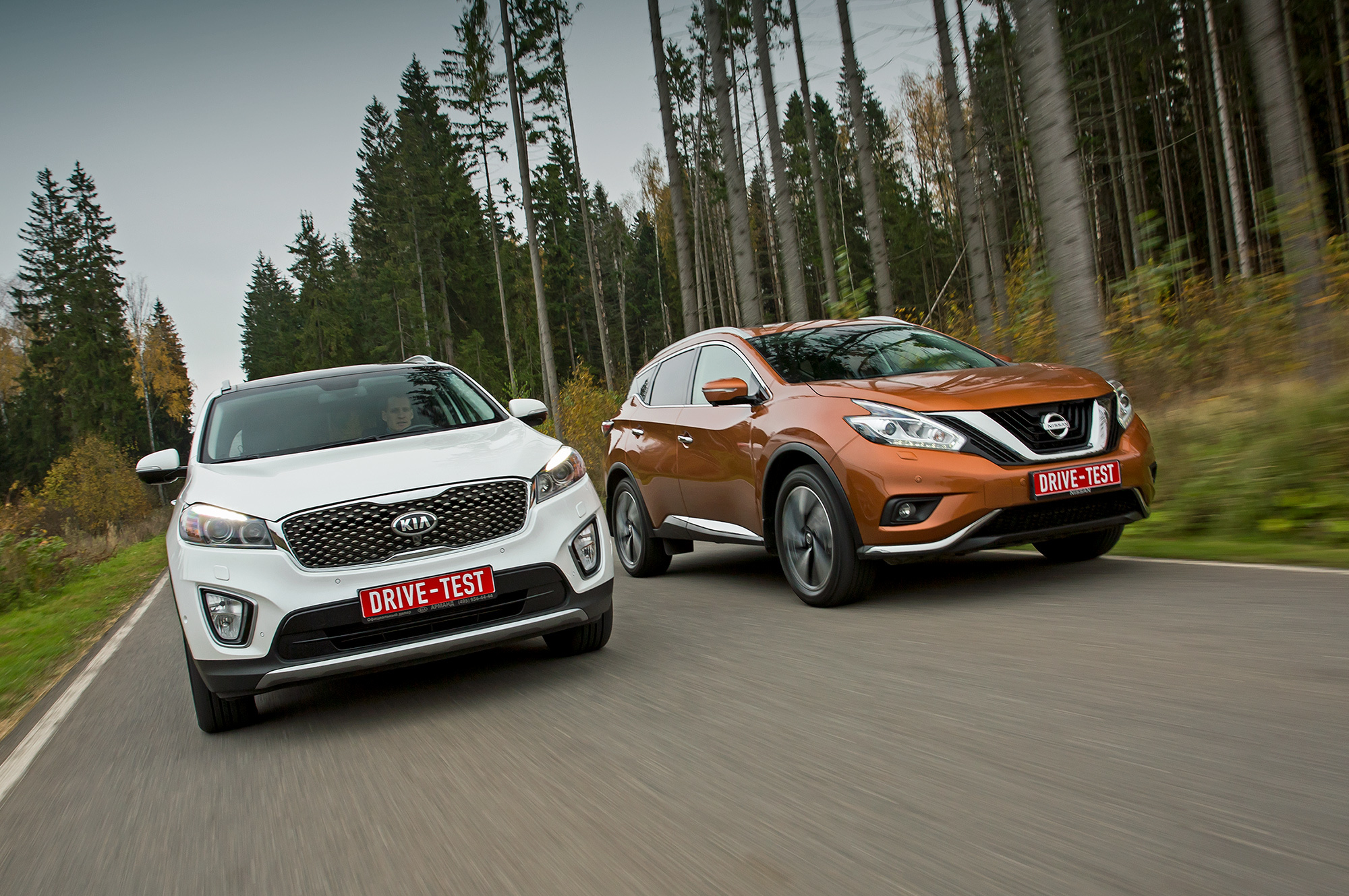 Против кого играет новый Nissan Murano? Время, когда его конкурентами на российском рынке были кроссоверы Mazda СX-7 и Subaru Tribeca, прошло. Сегодня из сопоставимых по моторам и цене пятиместных машин — только «премиум», например, BMW X3 или Lexus RX 200t. Из равных по рангу — все с тремя рядами сидений. Причём первым на ум приходит Pathfinder: одна с Murano платформа, оба теперь кроссоверы. Но поскольку Pathfinder и Pilot мы испытывали совсем недавно, в пару к Murano взяли Kia Sorento Prime. В плане классификации этот — хоть куда. Наша версия так вообще Prime Premium. С такой справится только Murano Top. Или не справится?