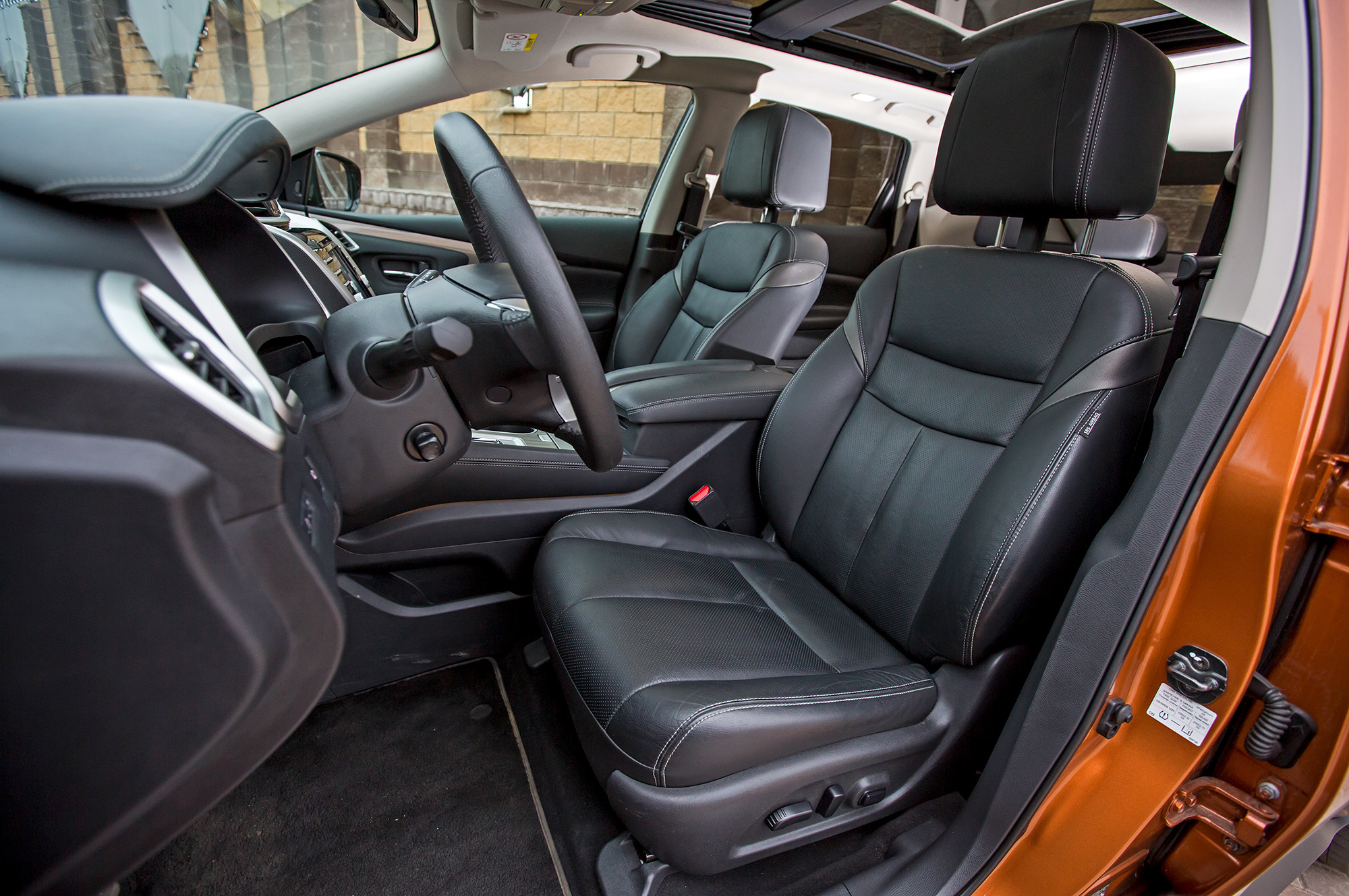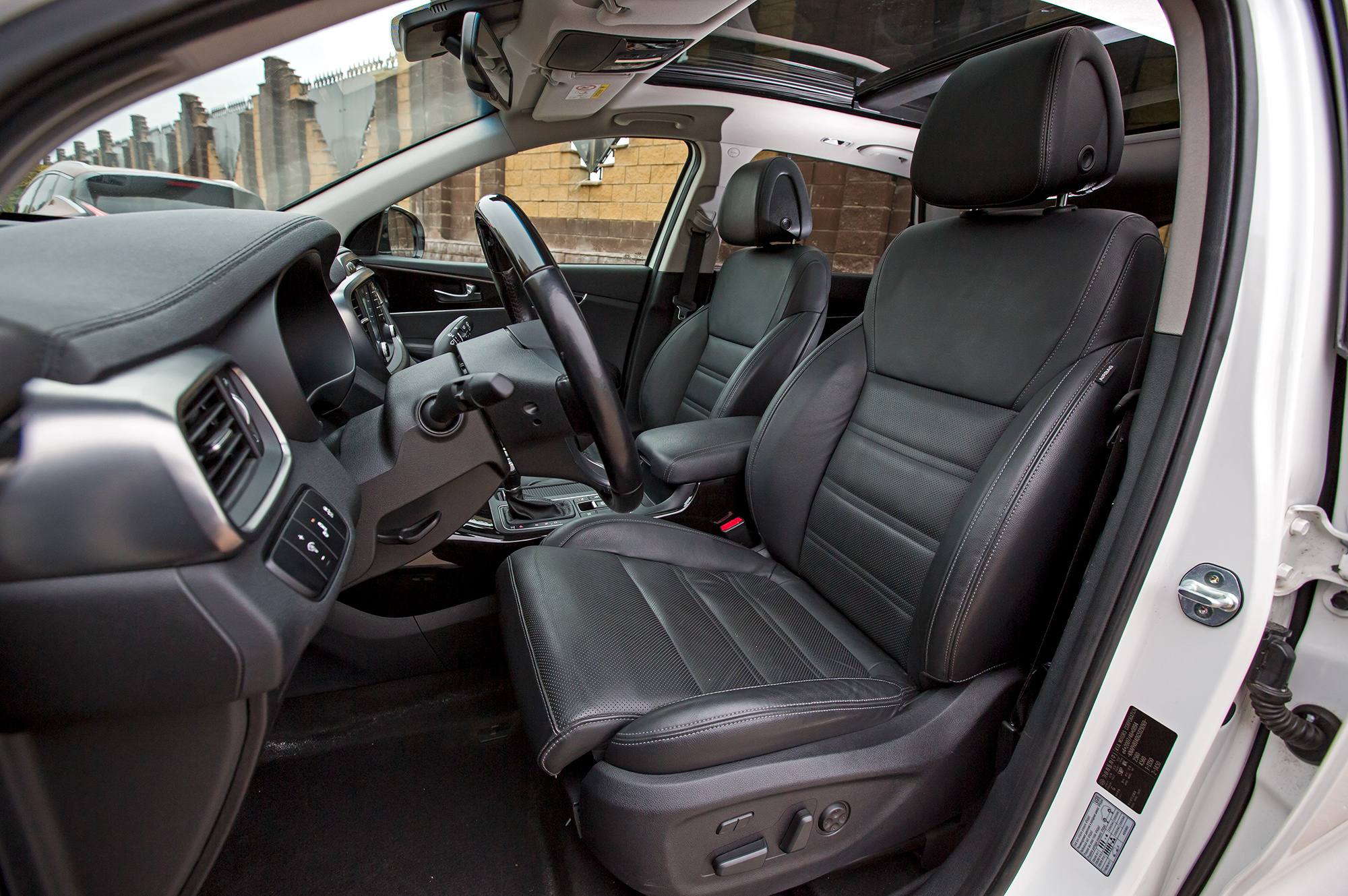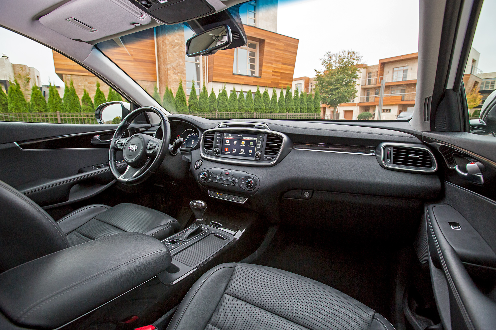 Доступ к месту водителя Sorento не хуже, чем в Murano. Рулевая колонка тут без электропривода, но перемещается в более широком диапазоне. Поясничный подпор кресла двигается по высоте, но само сиденье более плоское — в дальней дороге ниссановское предпочтительнее. Руль Kia, если не считать непрогреваемых глянцевых вставок, приятнее, чем у Murano, а кнопки на нём удобнее — не надо снимать руку с обода, чтобы изменить громкость радио. Авторежим и подсветка клавиш в отличие от Ниссана — у всех стеклоподъёмников. Лучше у Sorento и обзорность: стойки лобового стекла тоньше, сектор очистки, как и зеркала, шире, а подголовники — утапливаемые.