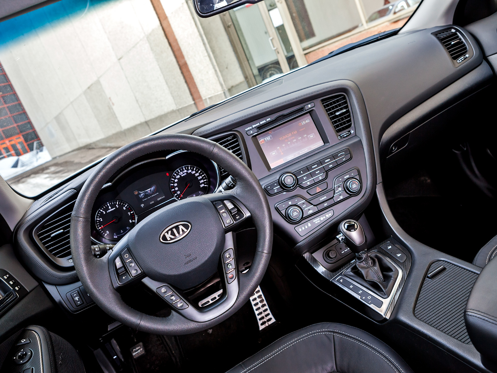 Блестит, однако, так, что хочется закрыть глаза. Точёная, будто отлитая за один заход, Оптима выглядит сногсшибательно. Куда ни глянь, везде найдутся детали, радующие глаз: сложносочинённые фары, натянутая, словно струна, подоконная линия. А задняя стойка с лихим изломом неопускного оконца и вовсе тянет на дизайнерский шедевр. При этом Optima, пожалуй, самый фотогеничный автомобиль на нашей памяти. Обстреливая её с разных ракурсов, мы ни разу не промахнулись. Оттого-то и хочется исключить из процесса оценки этой машины зрение. Скрывать не буду: внешность Kia затуманивает мозги, мешая делать объективные выводы.